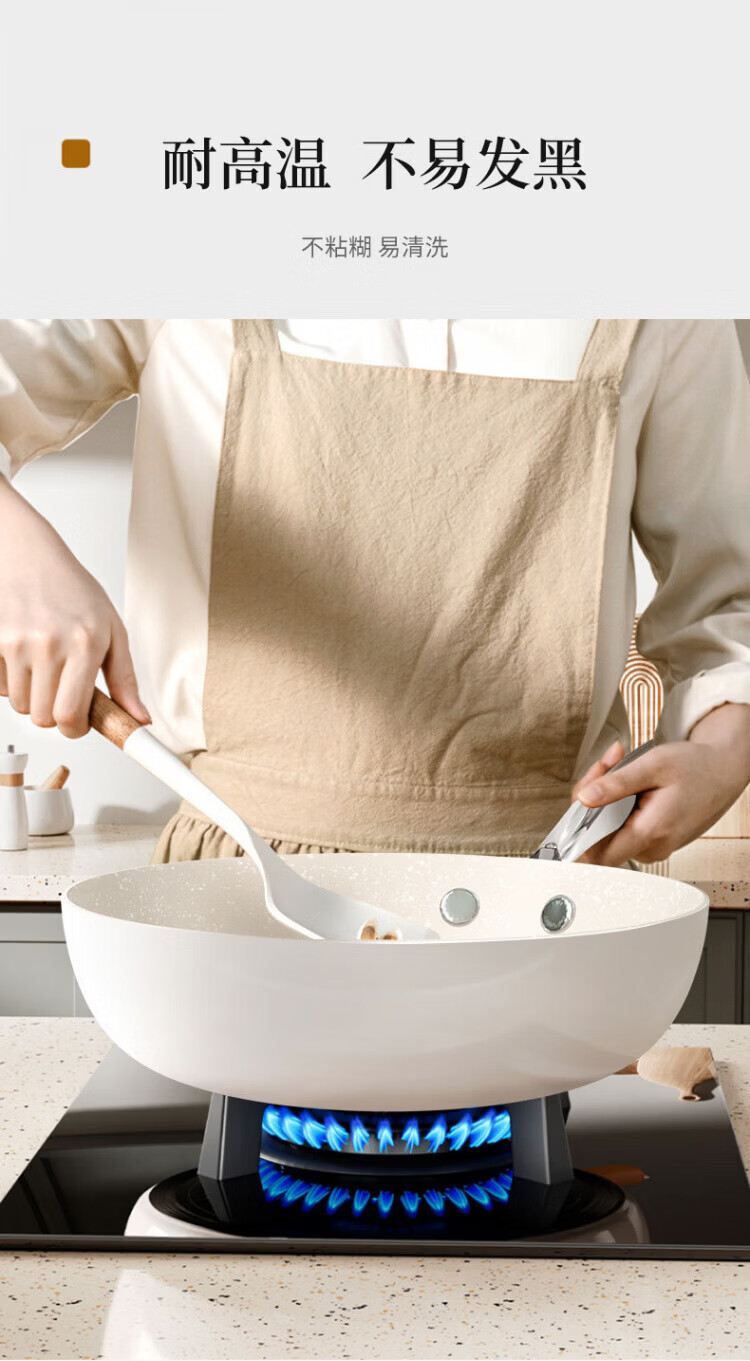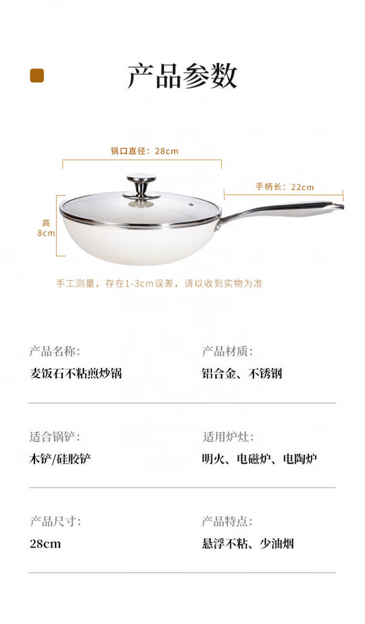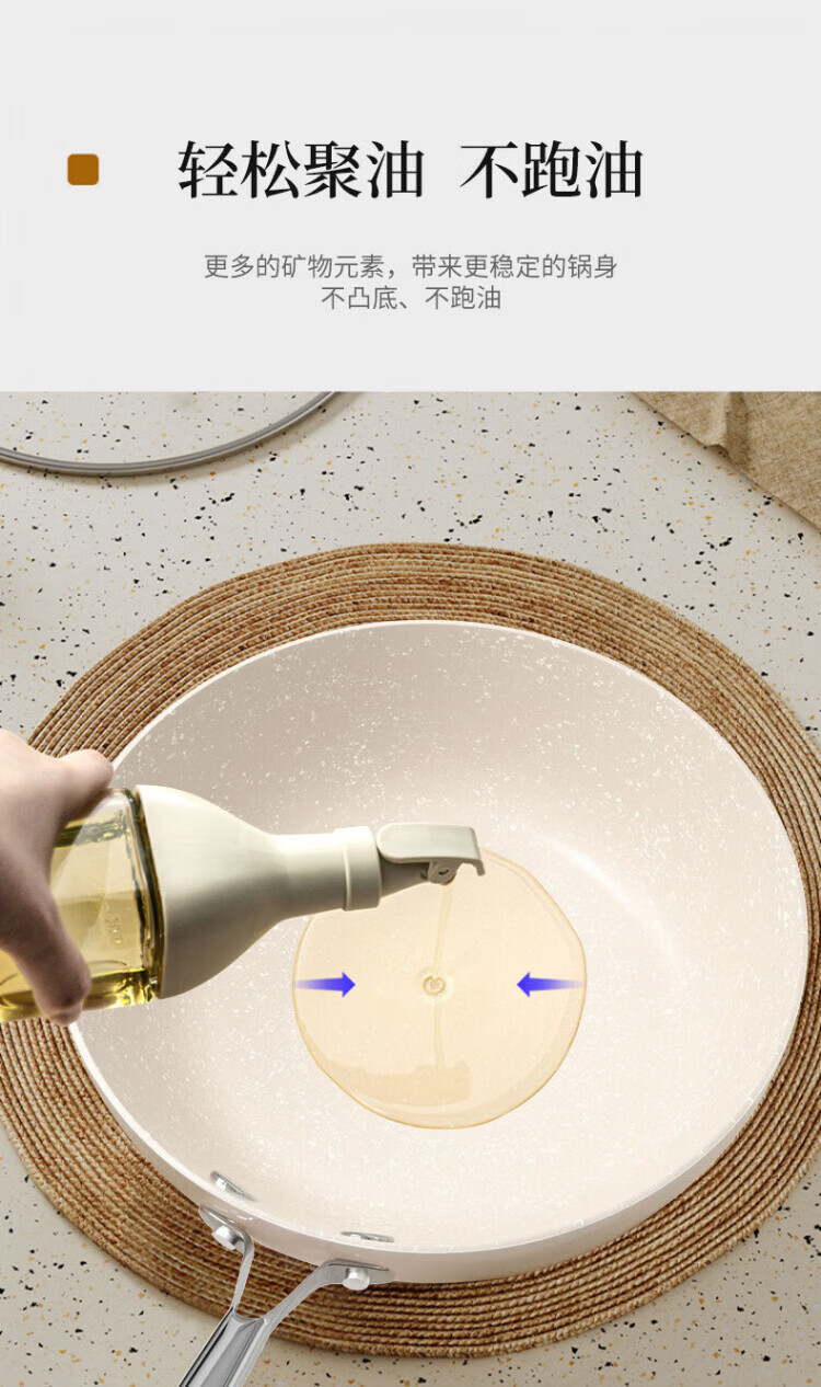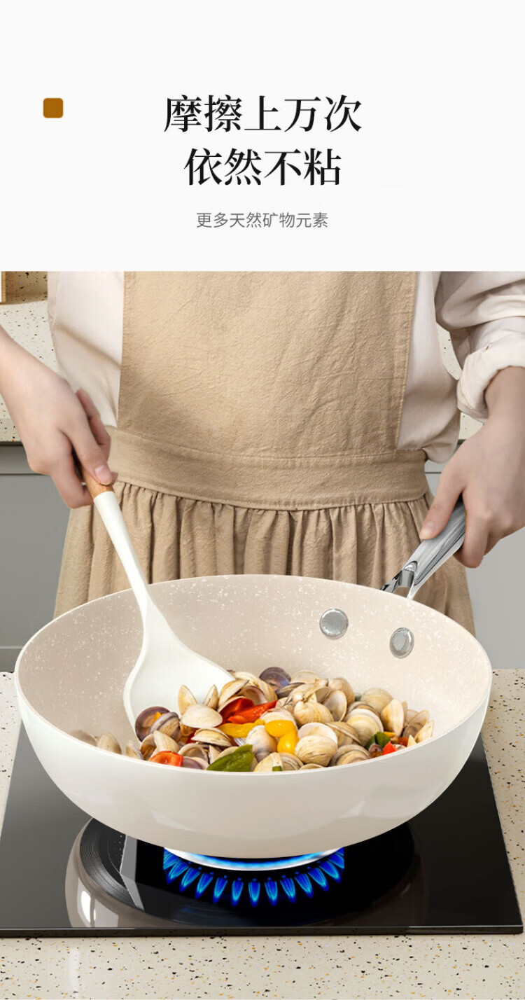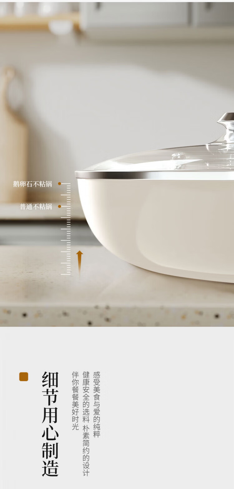 OCMOGO日本品牌炒锅家用不粘锅贝瓷炒菜锅麦饭石平底深煎锅电磁燃气灶通 淡绿色炒锅【带盖】 28cm