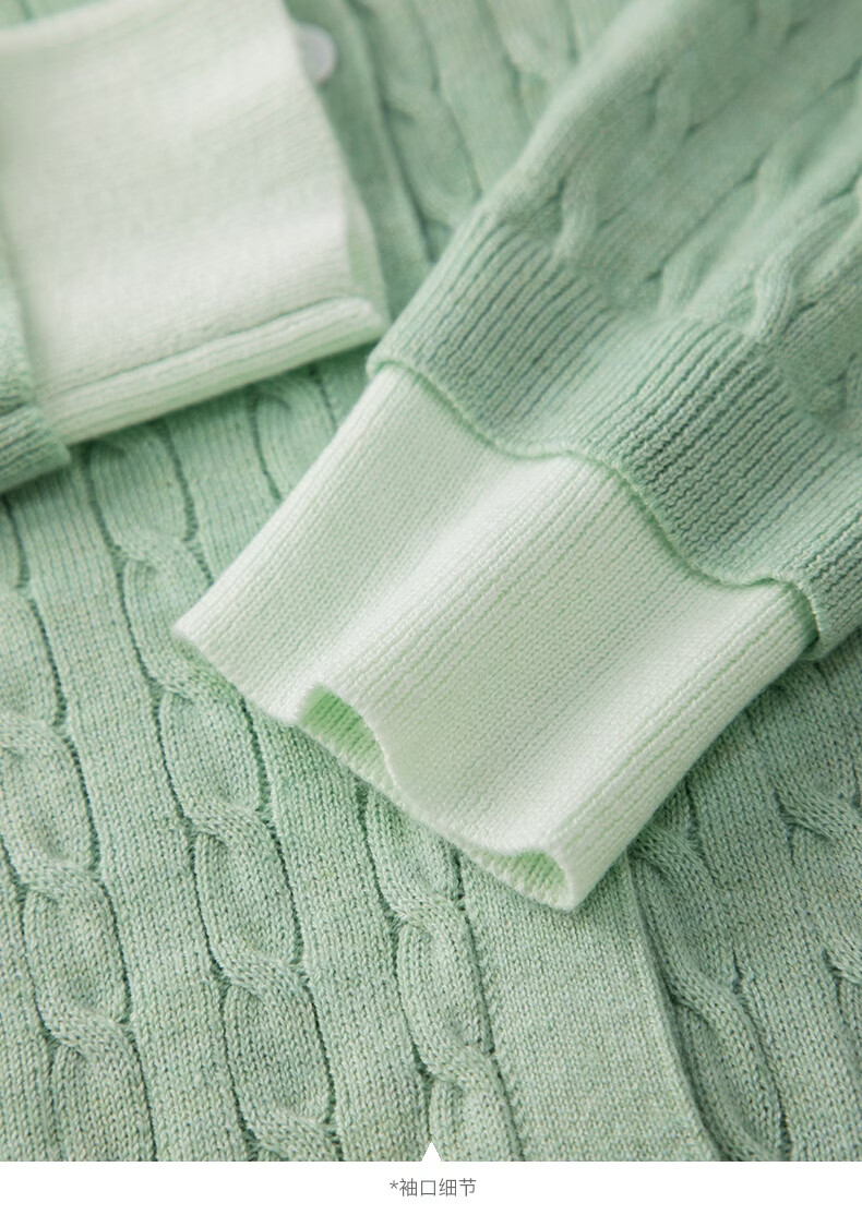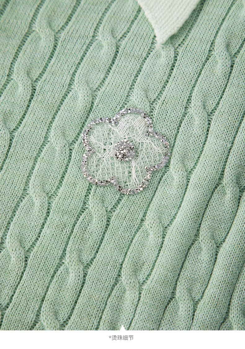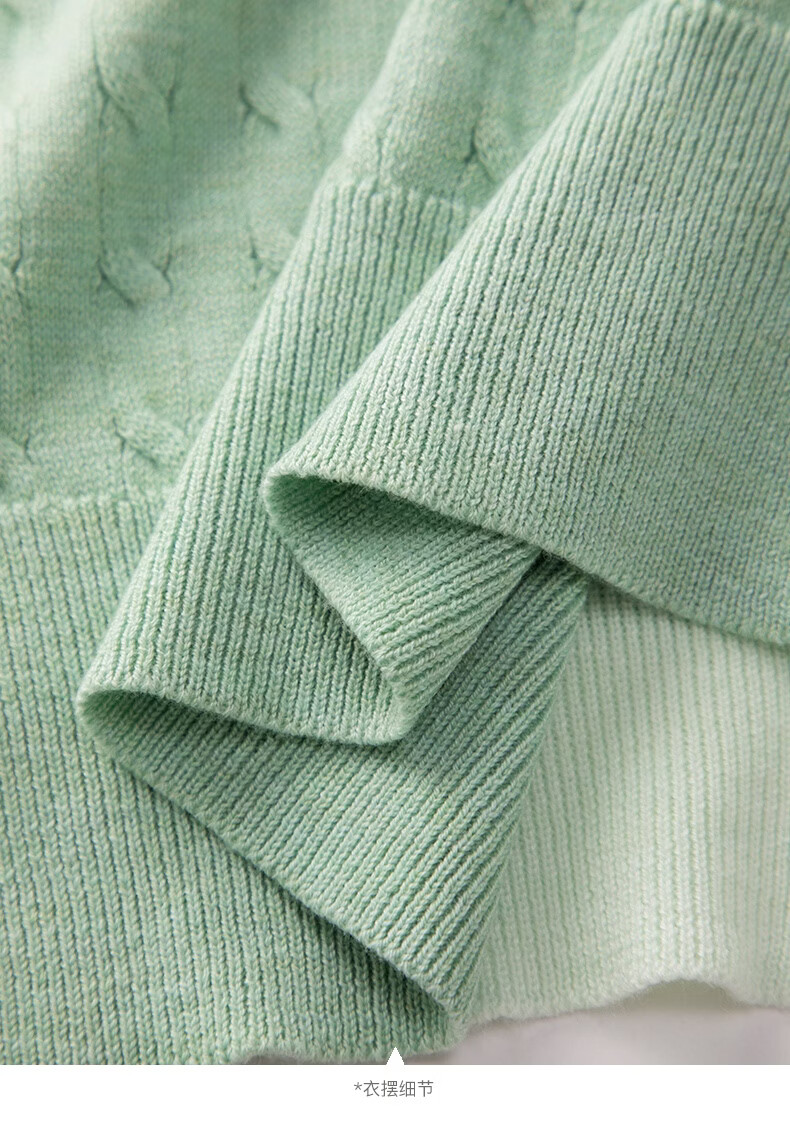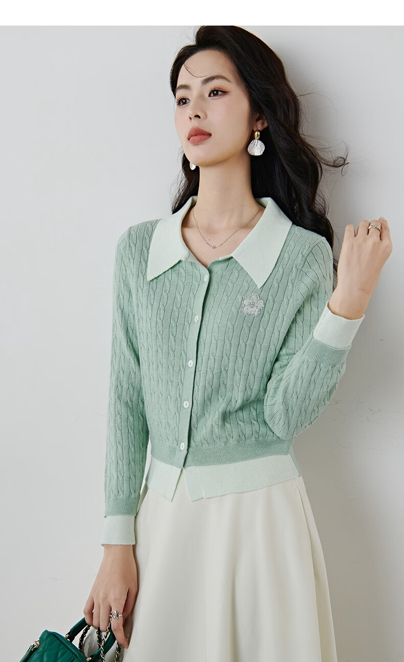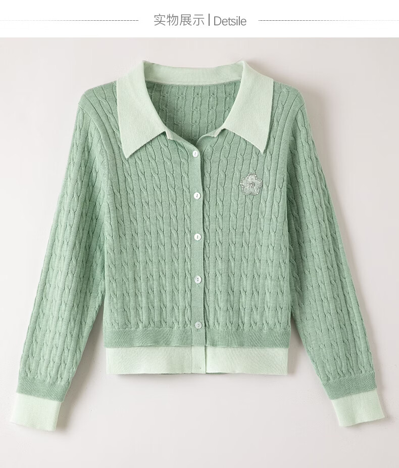 晚白2026年春款薄荷绿显白翻领假两件上衣亲肤舒适撞色绞花针织衫女 浅绿色 M