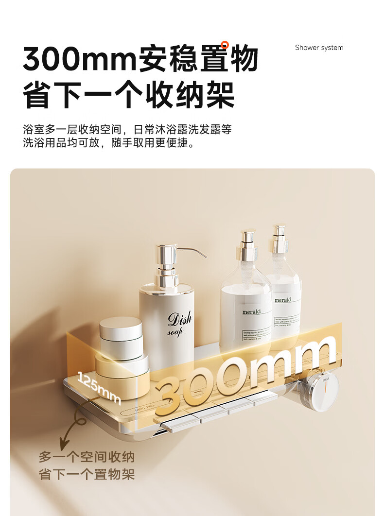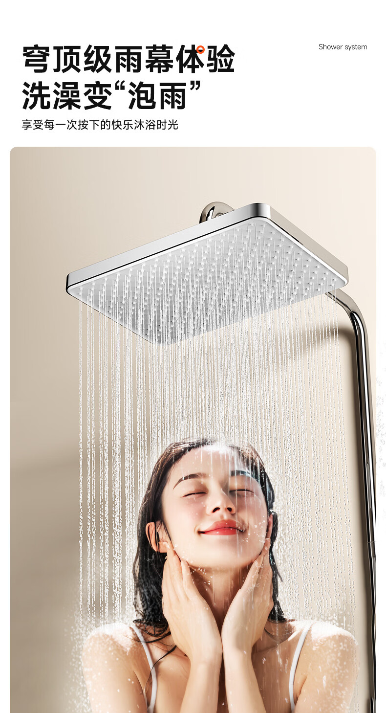 恒洁(HEGII)花洒淋浴套装 智能除垢方管贴墙琴键大置物台淋浴花洒套装 【双重自动除垢】956-333C-SH