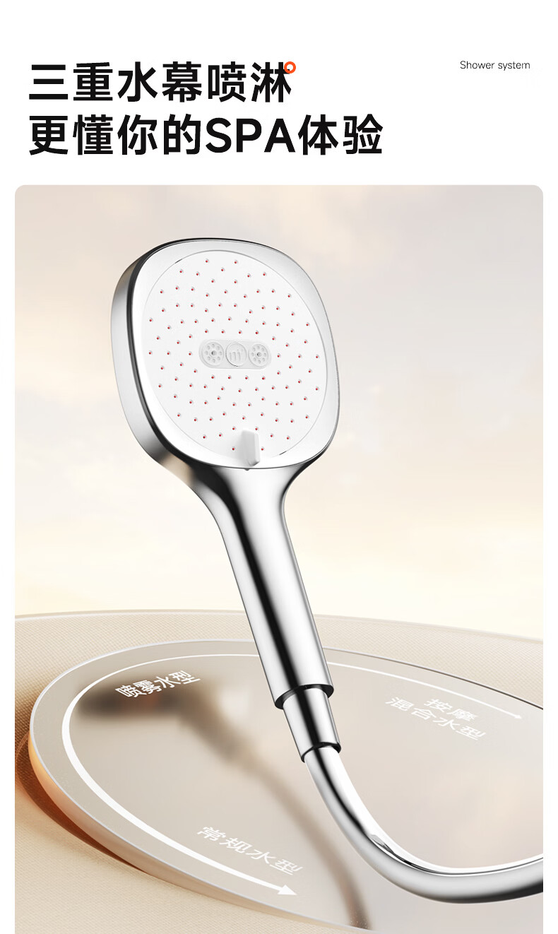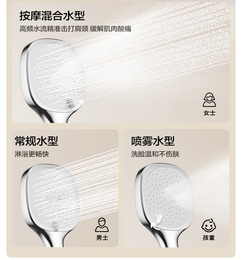 法恩莎(FAENZA)【门店同款】钢琴键置物台方管四功能一键止水增压淋浴花洒套装 【一键止水-银色E650】F4M9142CP-1