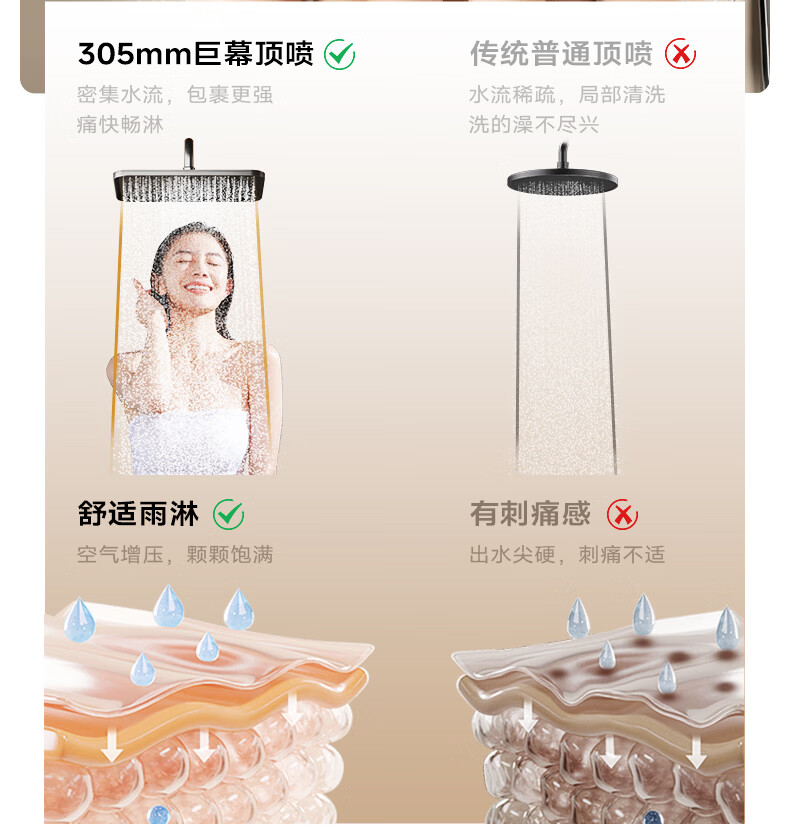 恒洁(HEGII)花洒淋浴套装 全铜琴键方管贴墙家用增压喷头淋浴花洒套装 【即关即停】全铜水路A52