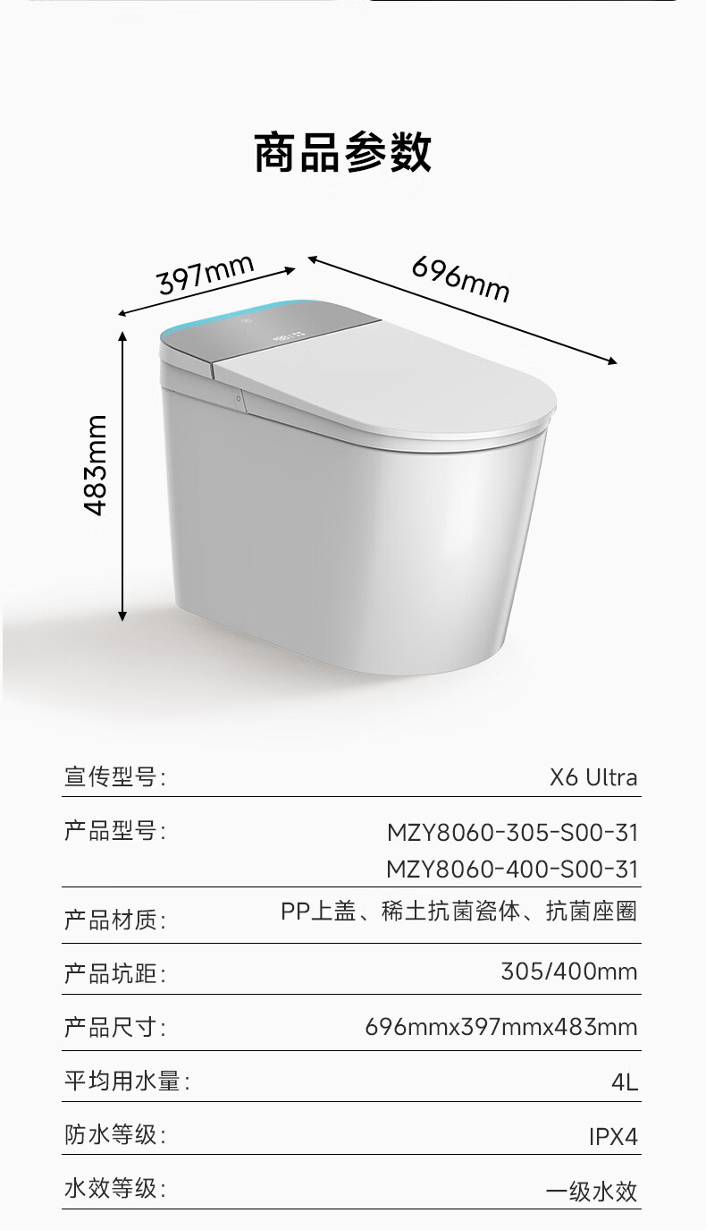 九牧(JOMOO)小牧卫浴 智能马桶 轻音坐便器 X系列 【全店顶配】香香桶+AI调温+静音冲 | X6Ultra-8060 305/300mm 【290-390mm选择】