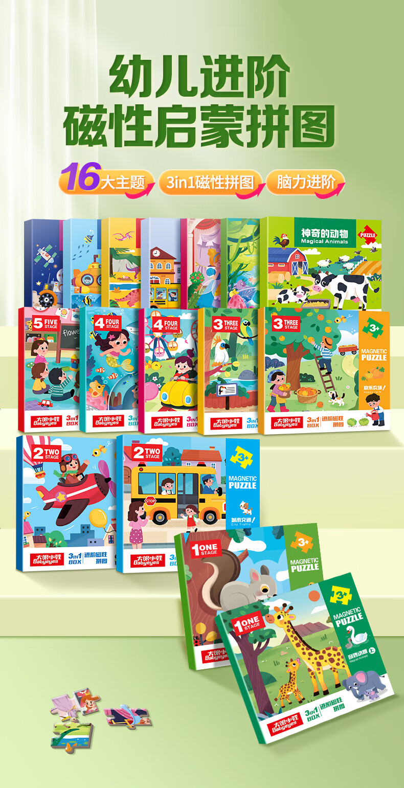 大眼小娃儿童磁力拼图1-3-6岁宝宝磁吸益智玩具2岁男孩女孩生日礼物太空
