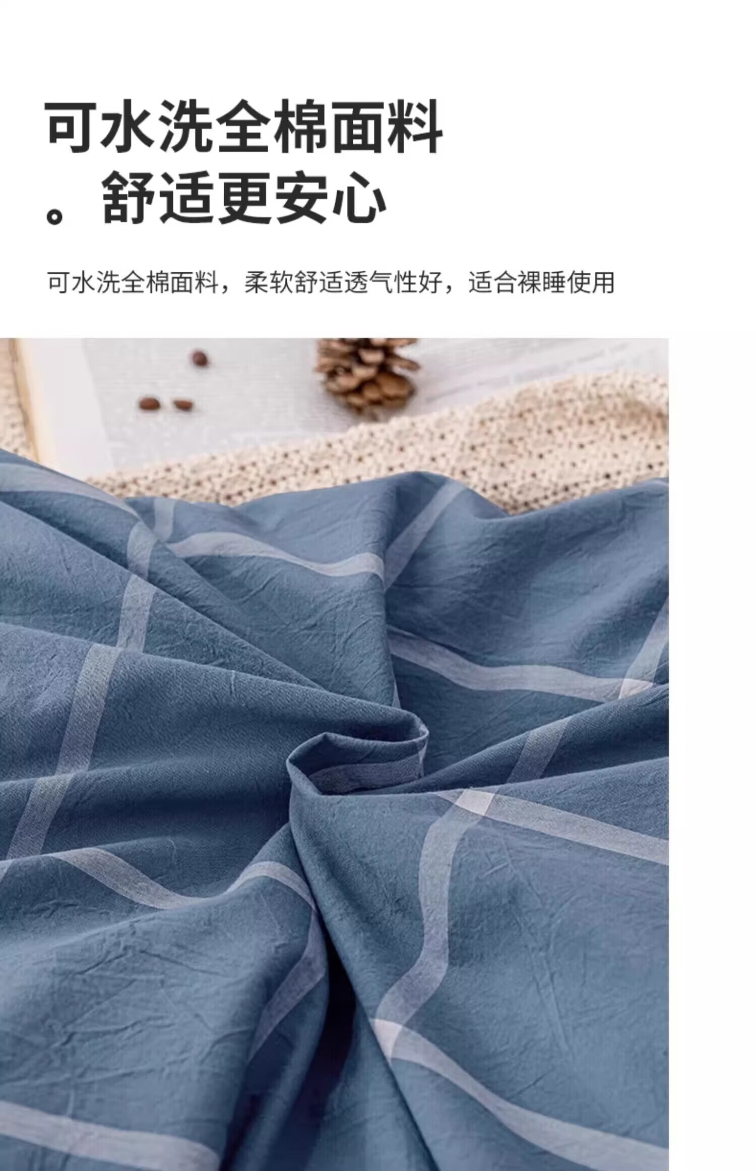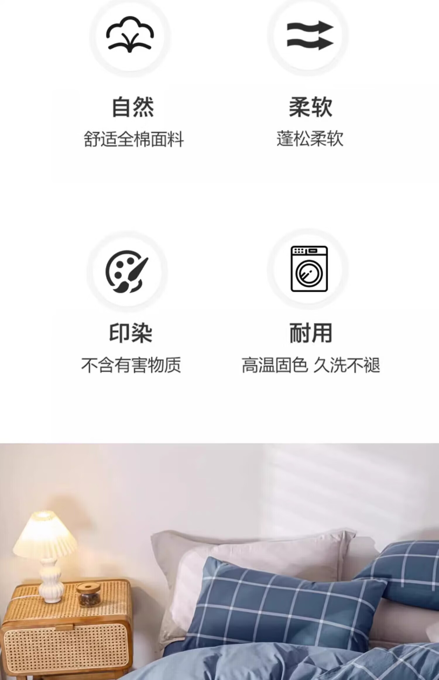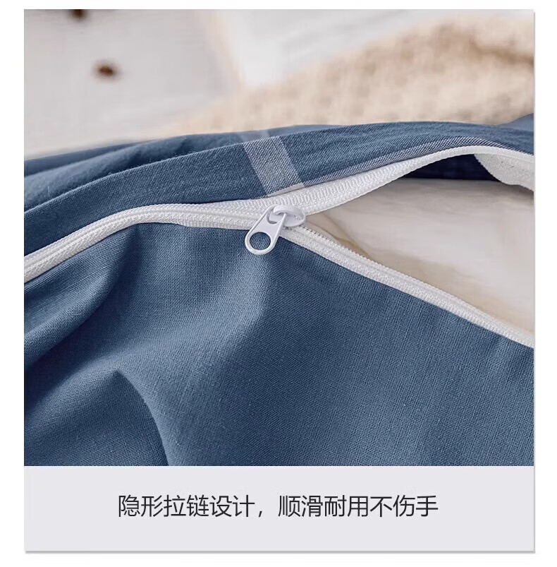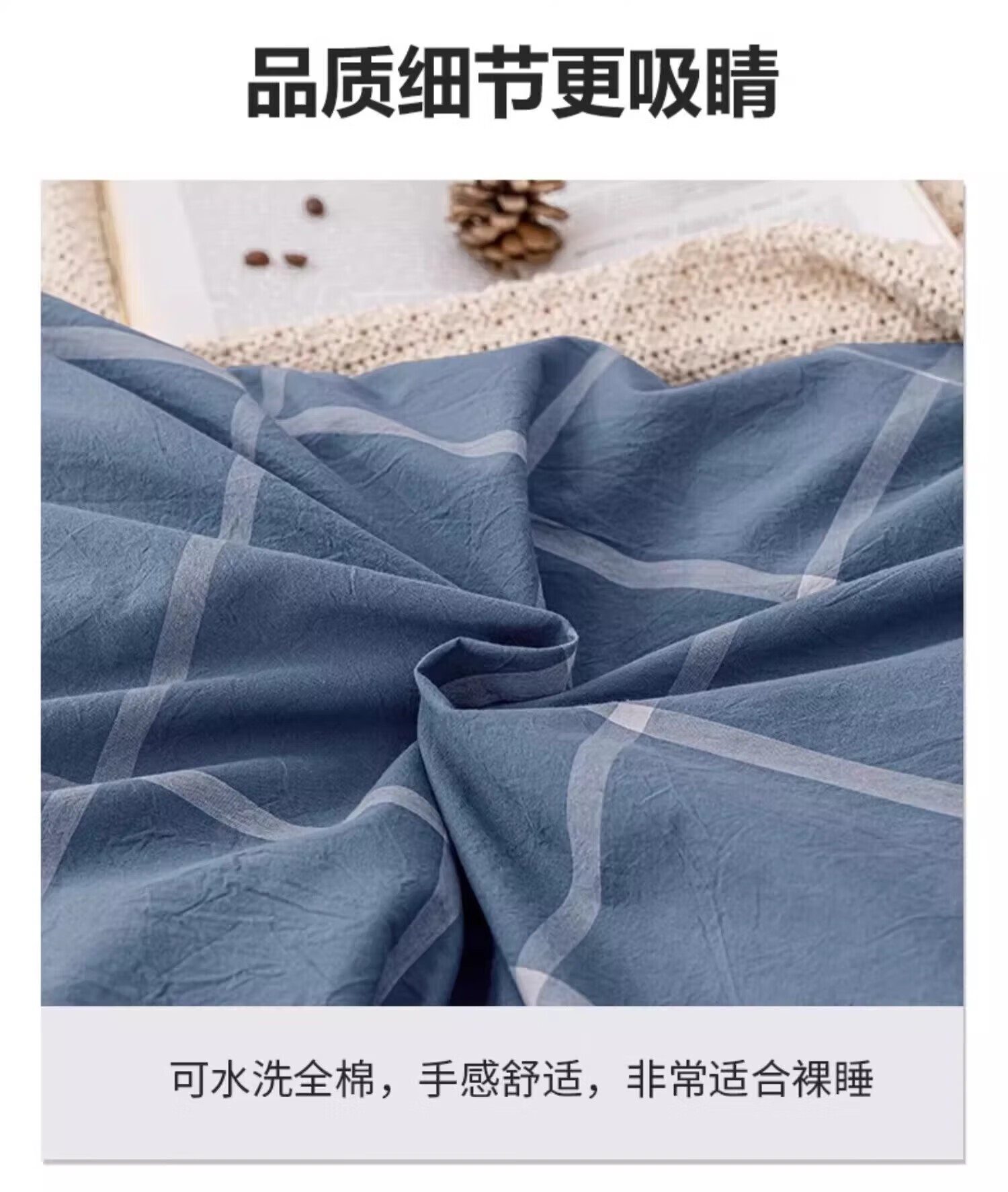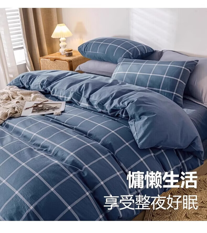 无印良品简约全棉床品四件套纯棉100%裸睡高级床单被罩套床笠款床上三件套 蓝大格【100%全棉 亲肤裸睡】 1.5m 床笠款 四件套-被套200*230cm