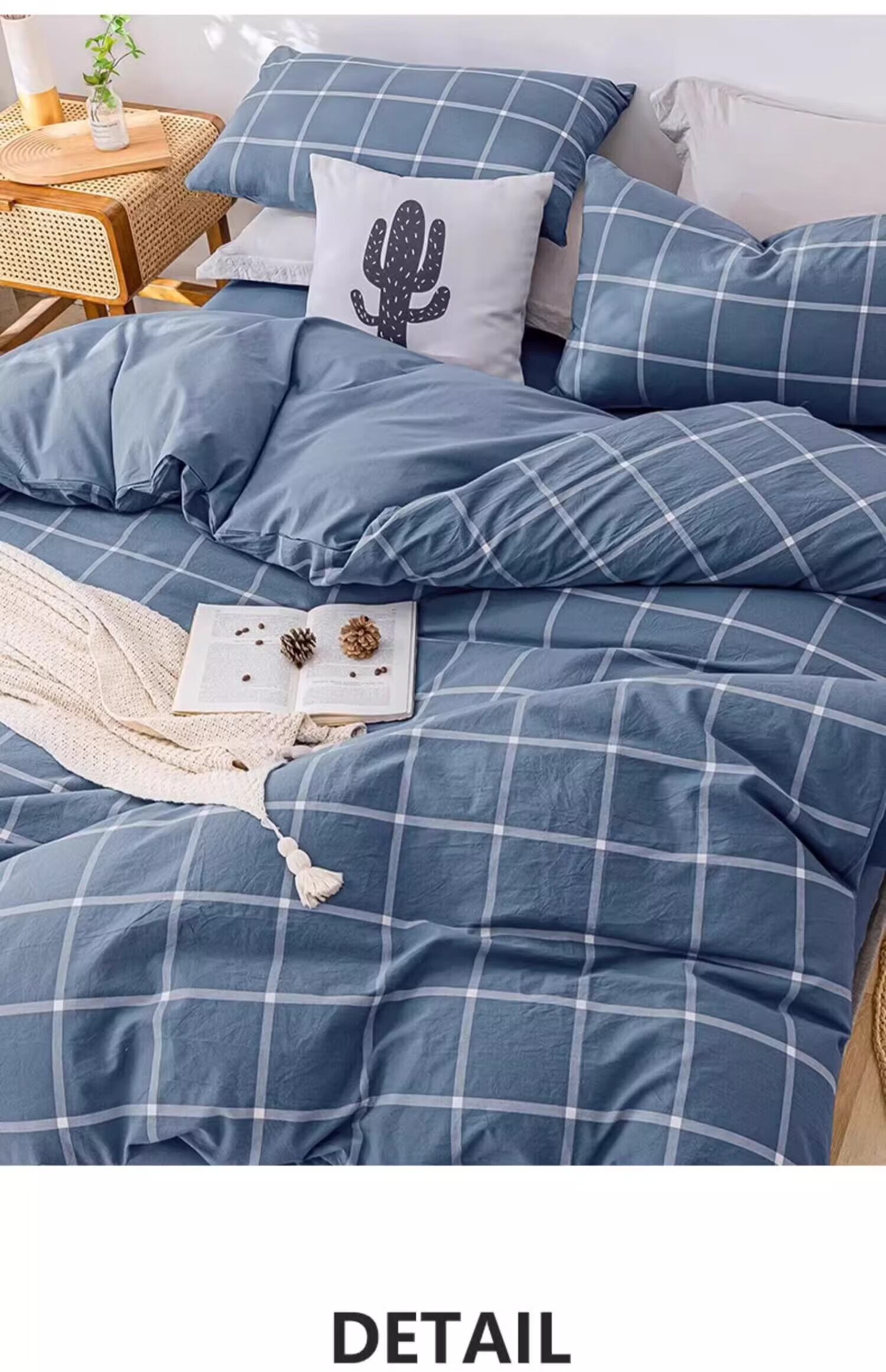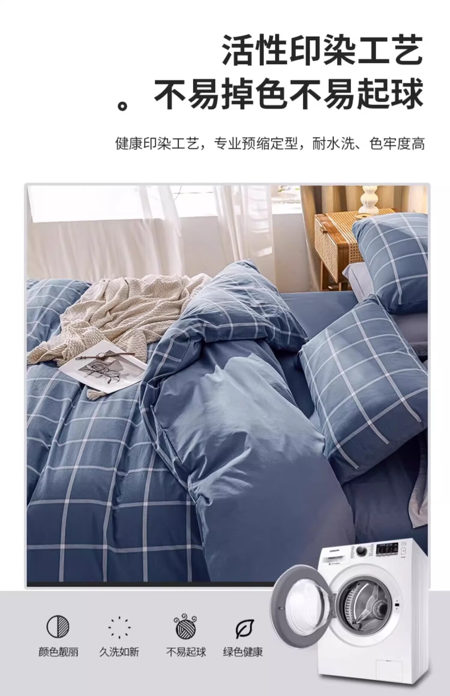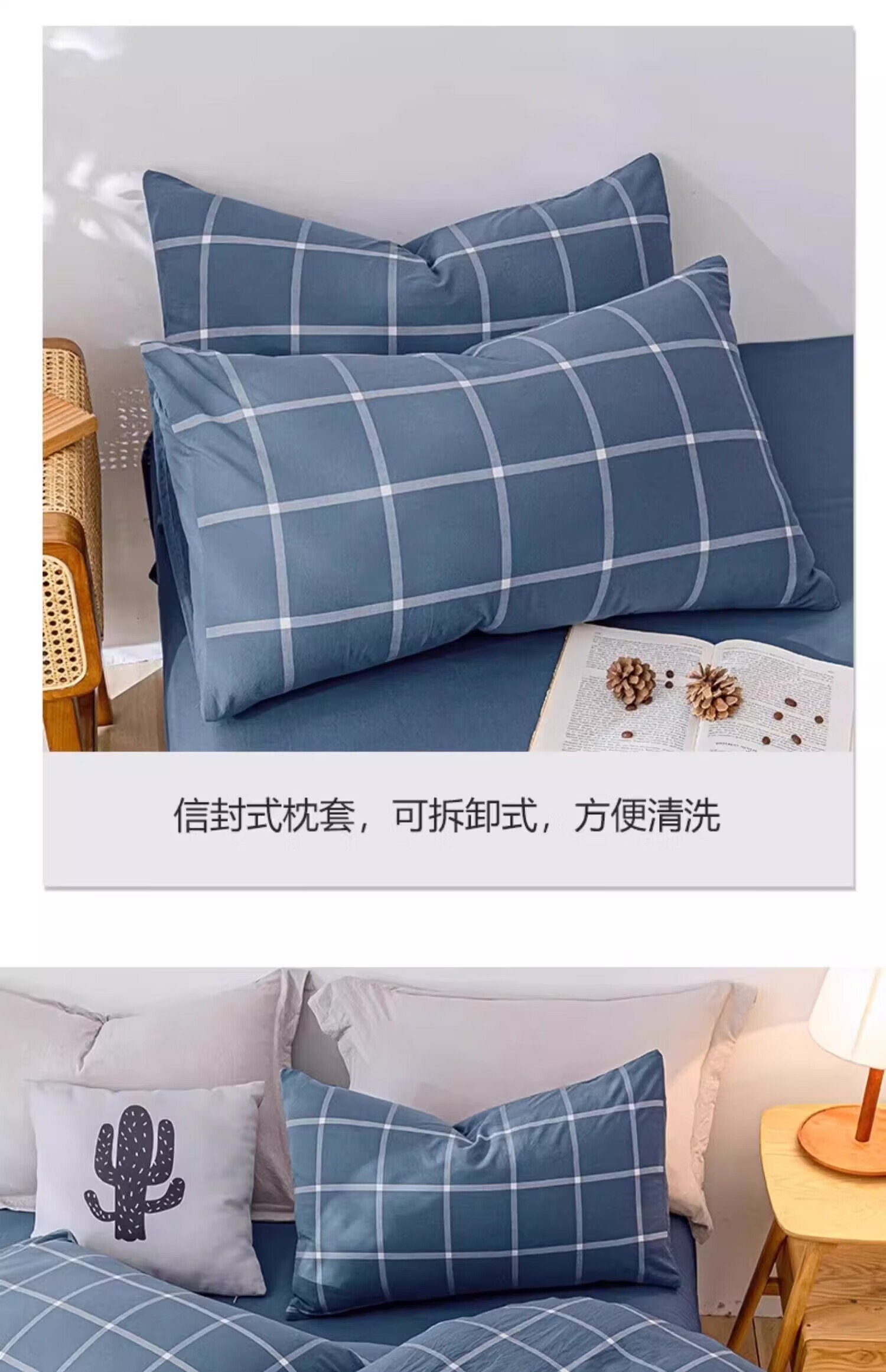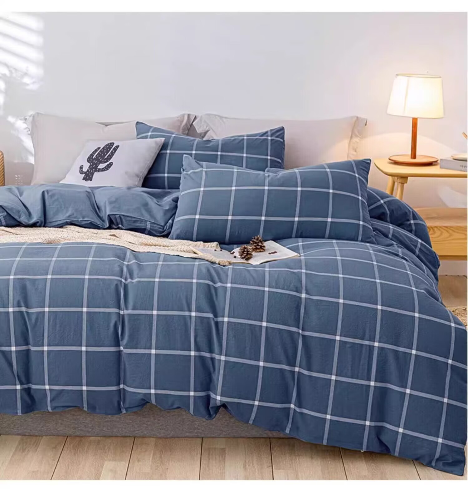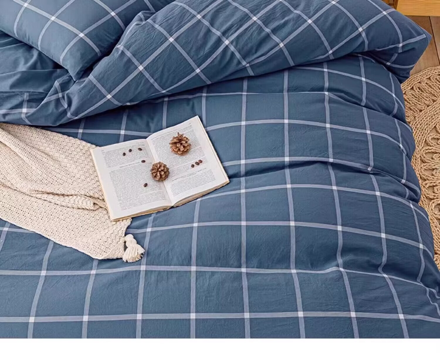 无印良品简约全棉床品四件套纯棉100%裸睡高级床单被罩套床笠款床上三件套 蓝大格【100%全棉 亲肤裸睡】 1.5m 床笠款 四件套-被套200*230cm