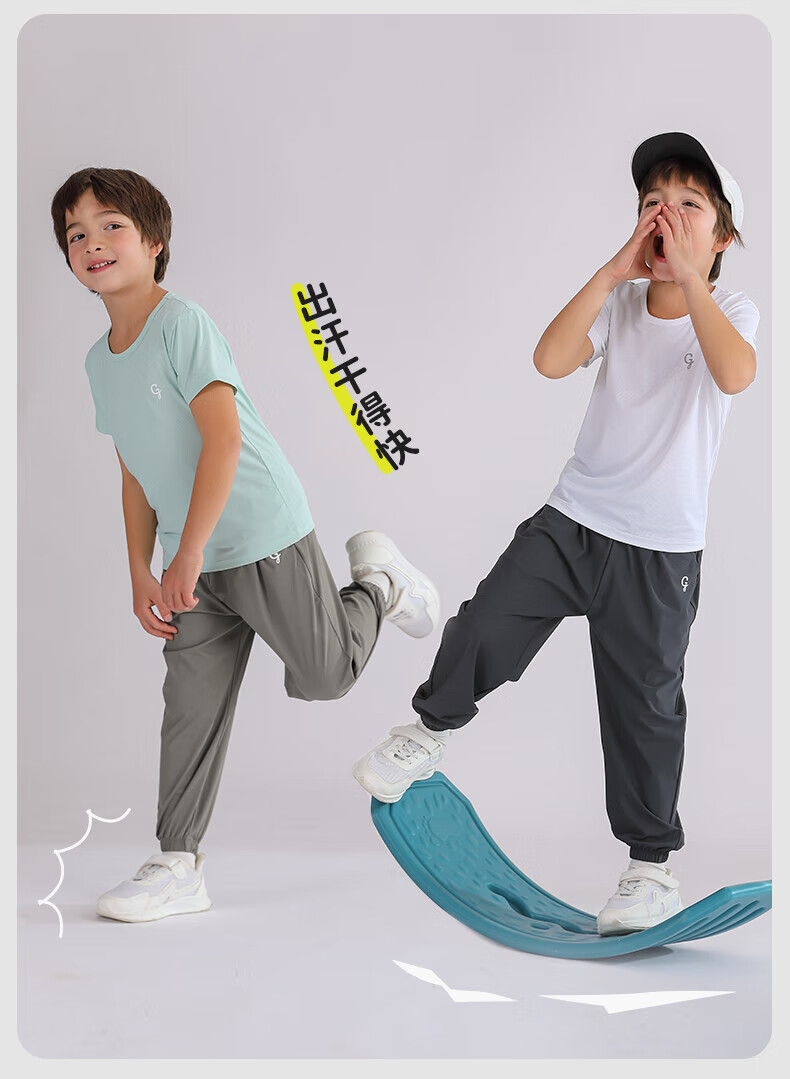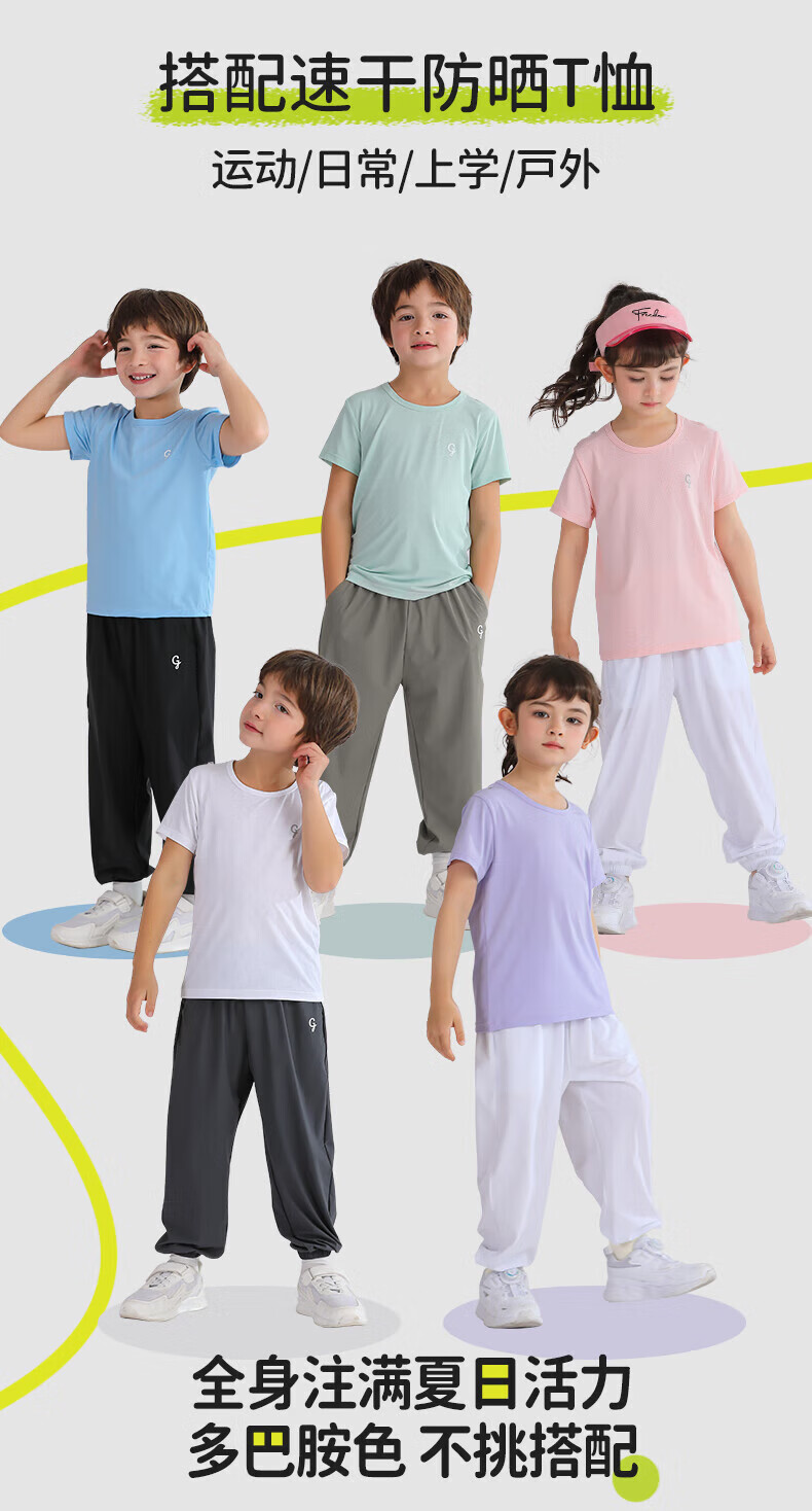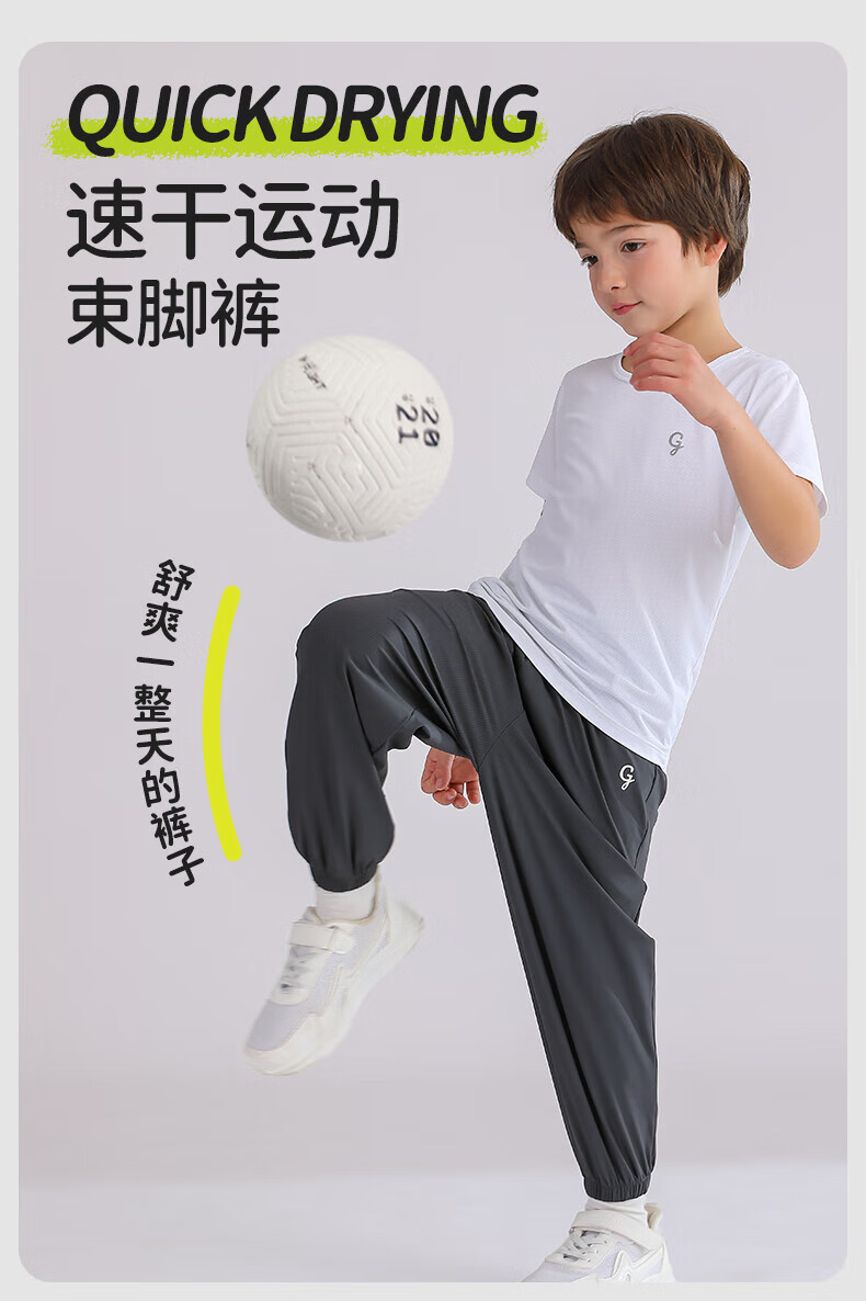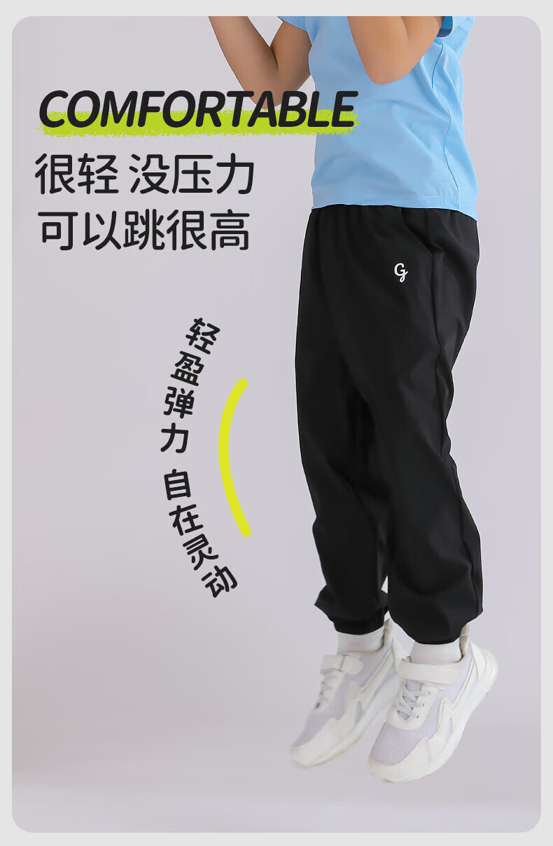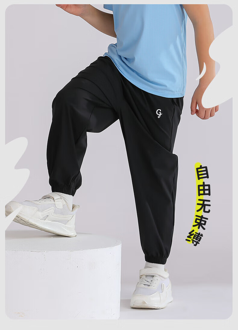 小狗比格儿童运动裤速干凉感防晒薄款夏男女宝宝户外束脚长裤2025 黑色 140 cm