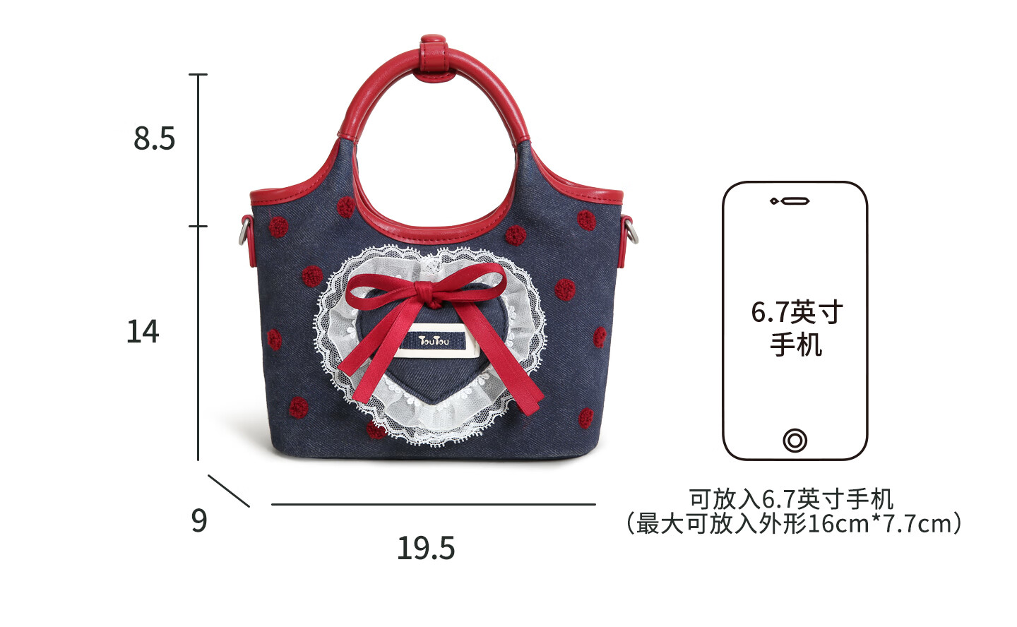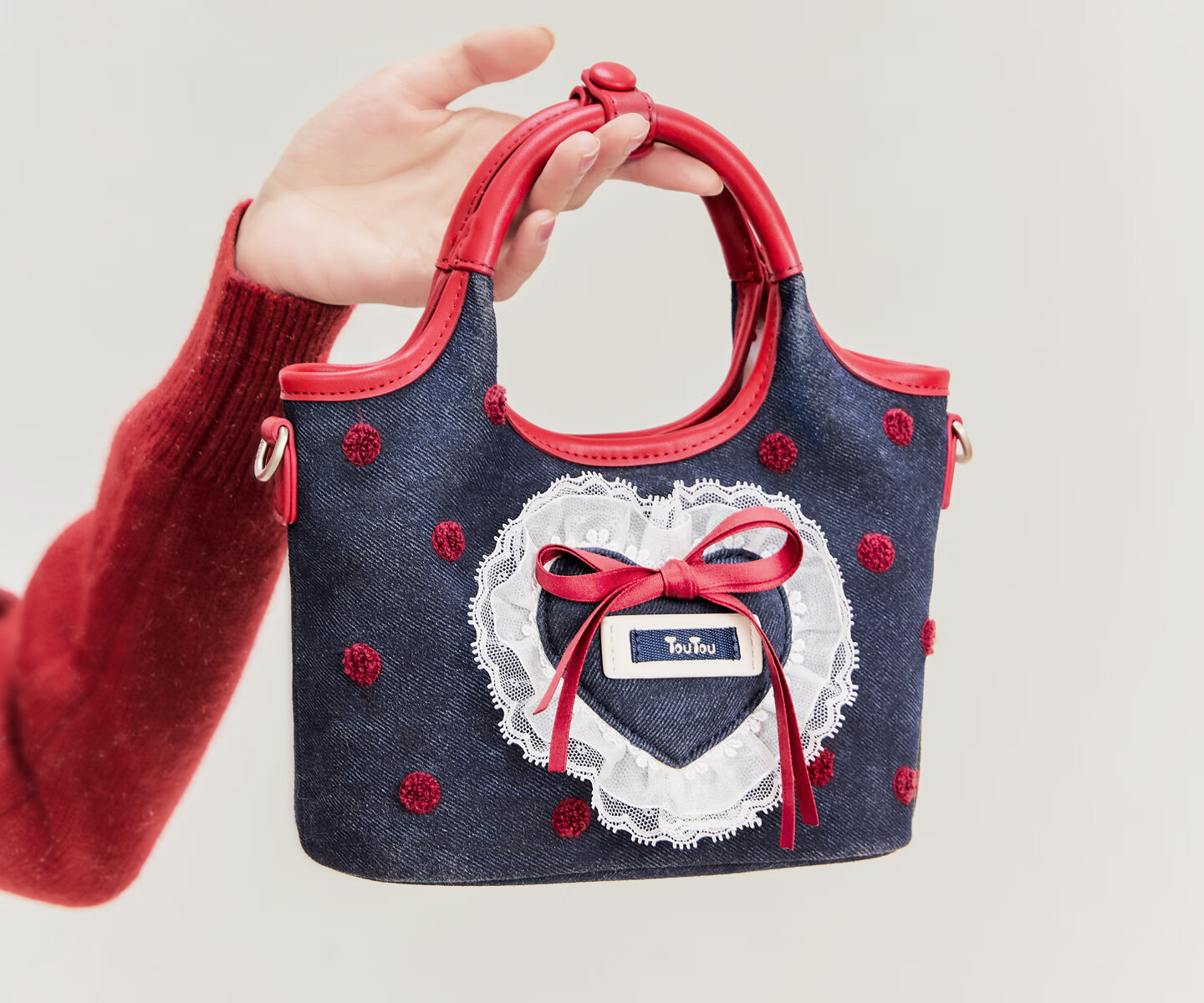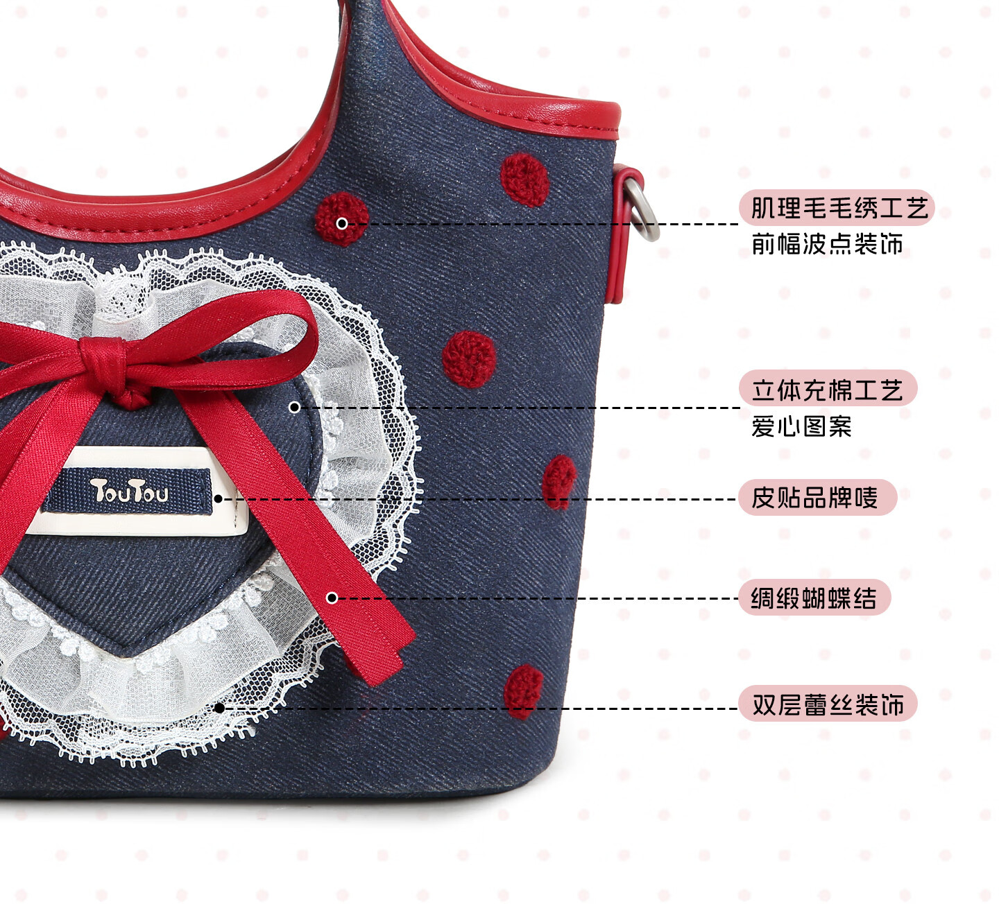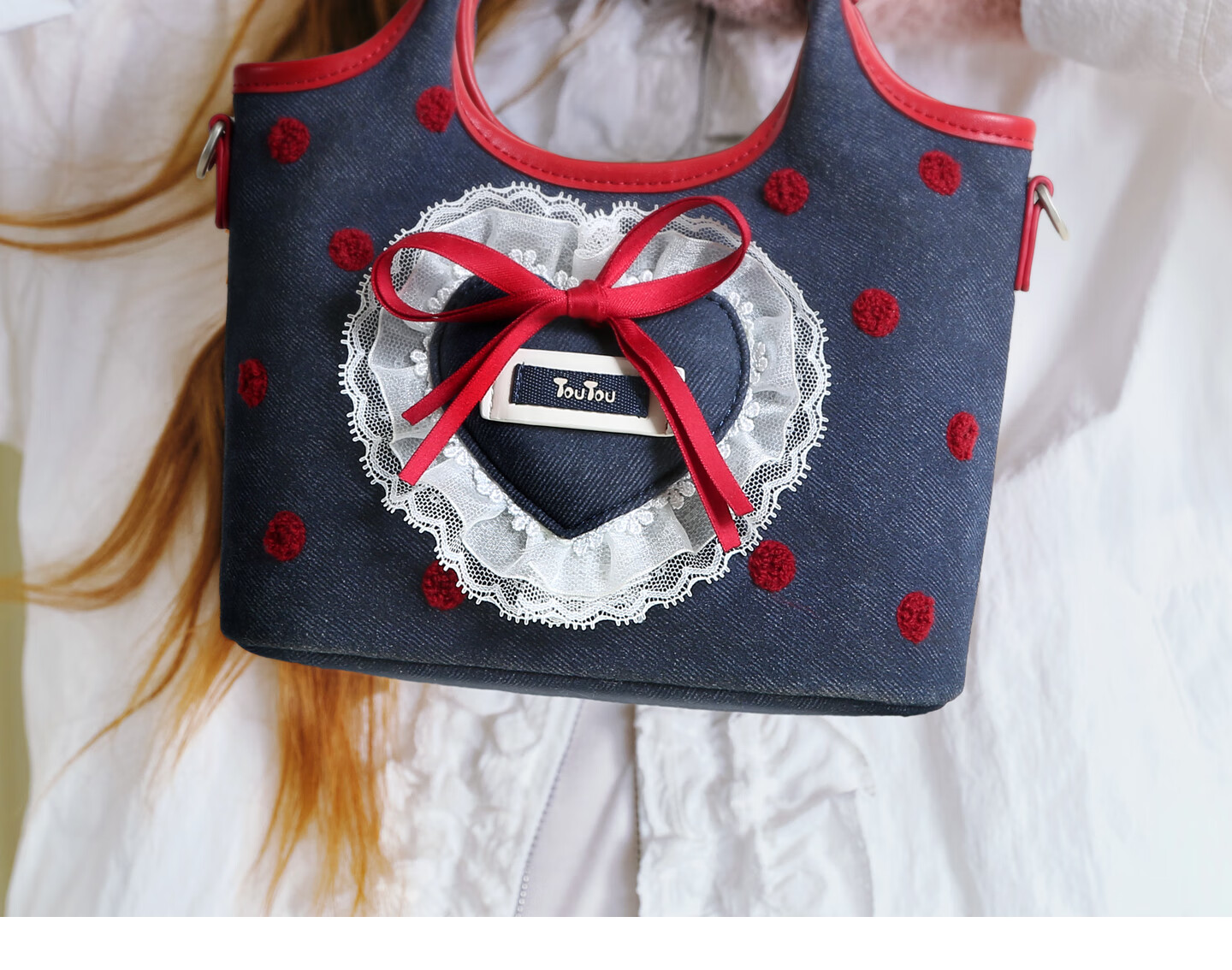 toutou仿牛仔爱心菜篮子托特包斜挎包新款实用生日礼物送女友送礼 深牛仔蓝