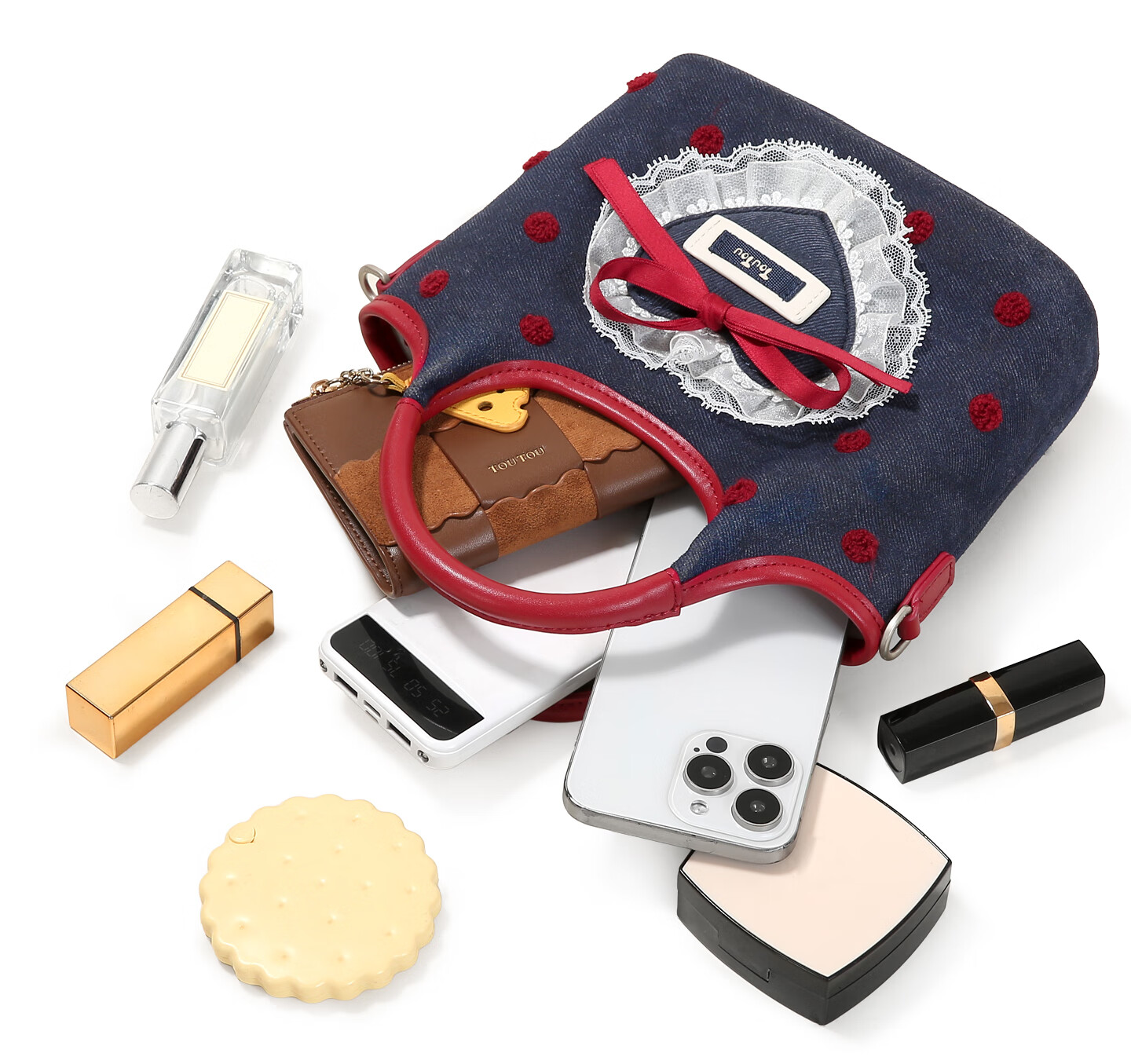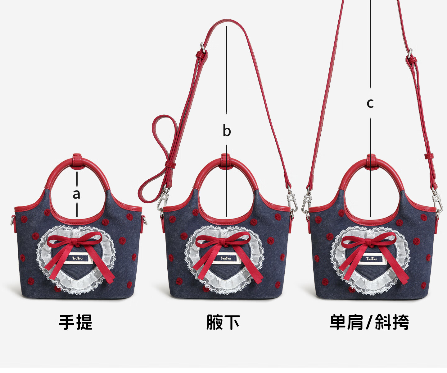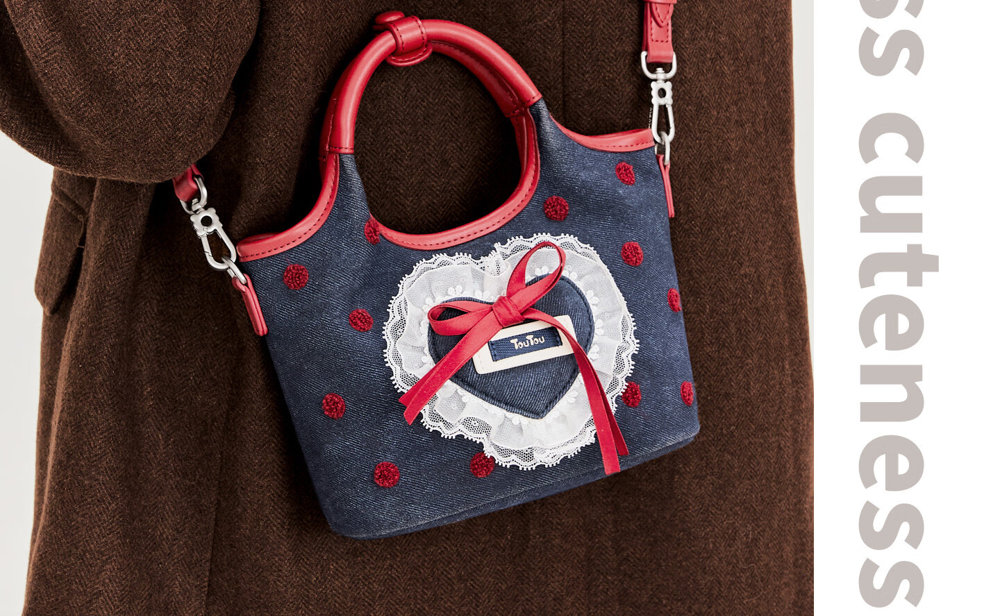 toutou仿牛仔爱心菜篮子托特包斜挎包新款实用生日礼物送女友送礼 深牛仔蓝