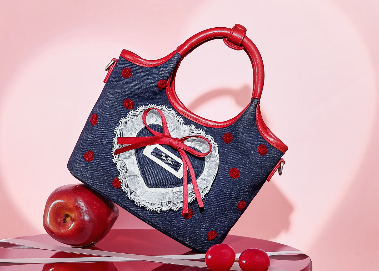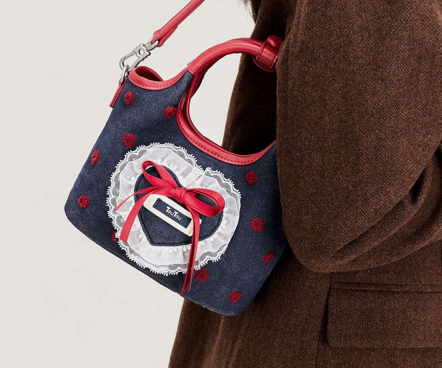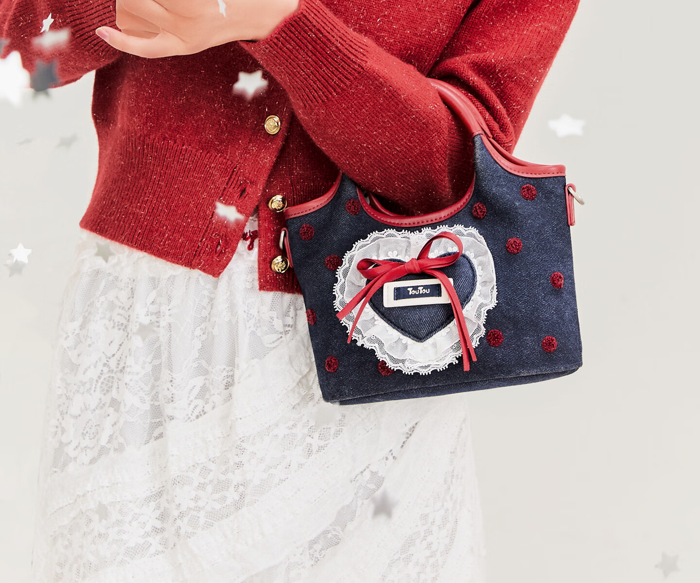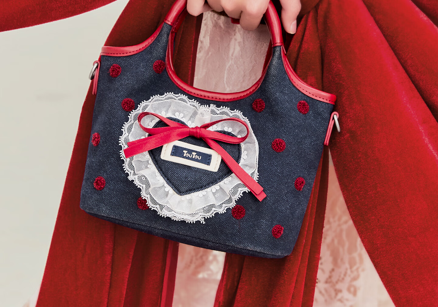 toutou仿牛仔爱心菜篮子托特包斜挎包新款实用生日礼物送女友送礼 深牛仔蓝