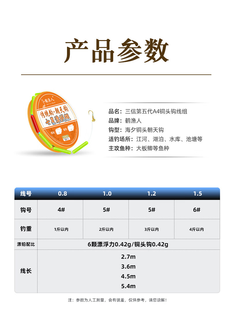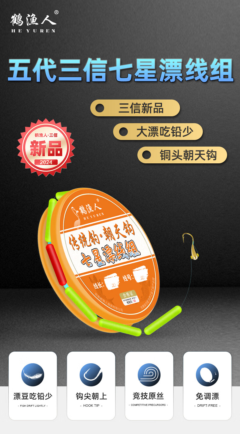 鹤渔人传统钓七星漂朝天钩线组免调漂钓鱼主线套装醒目大漂绑好钓鲫鱼线 1.5#线6号钩-【4卷盒装】 5.4M