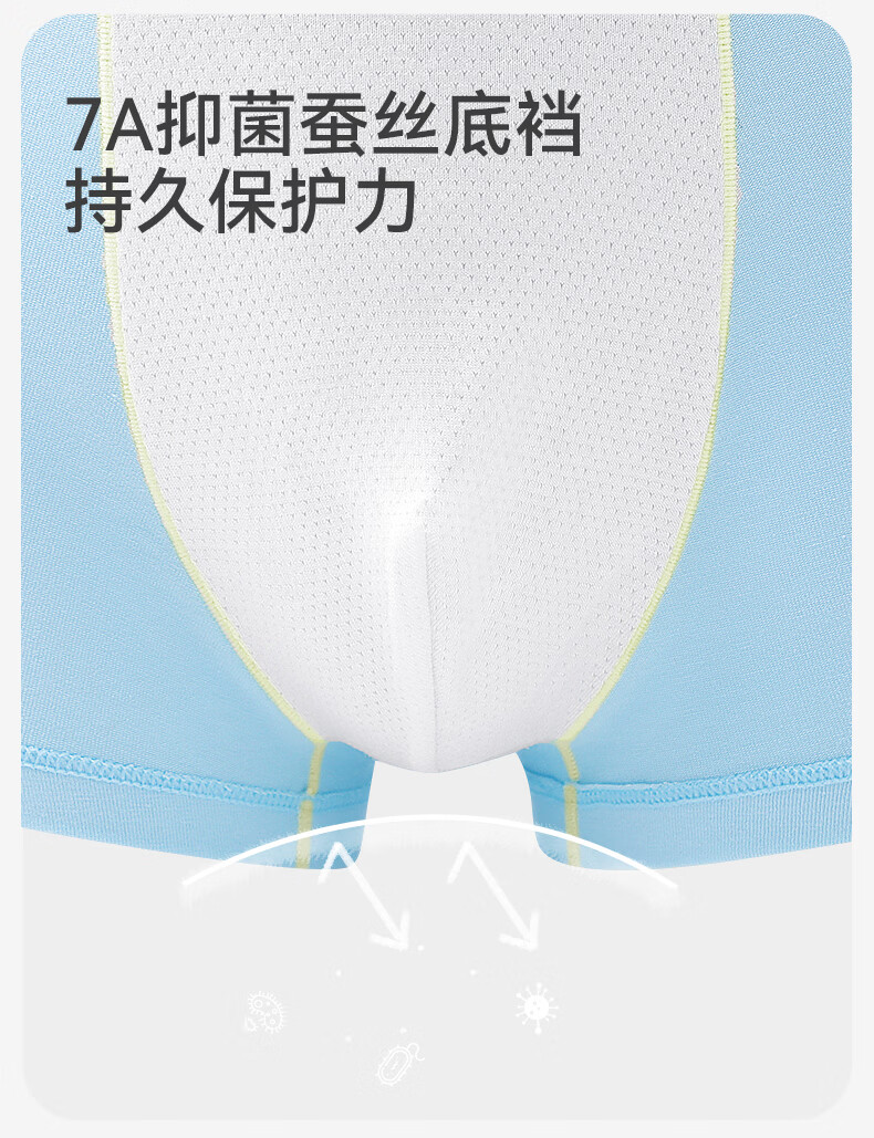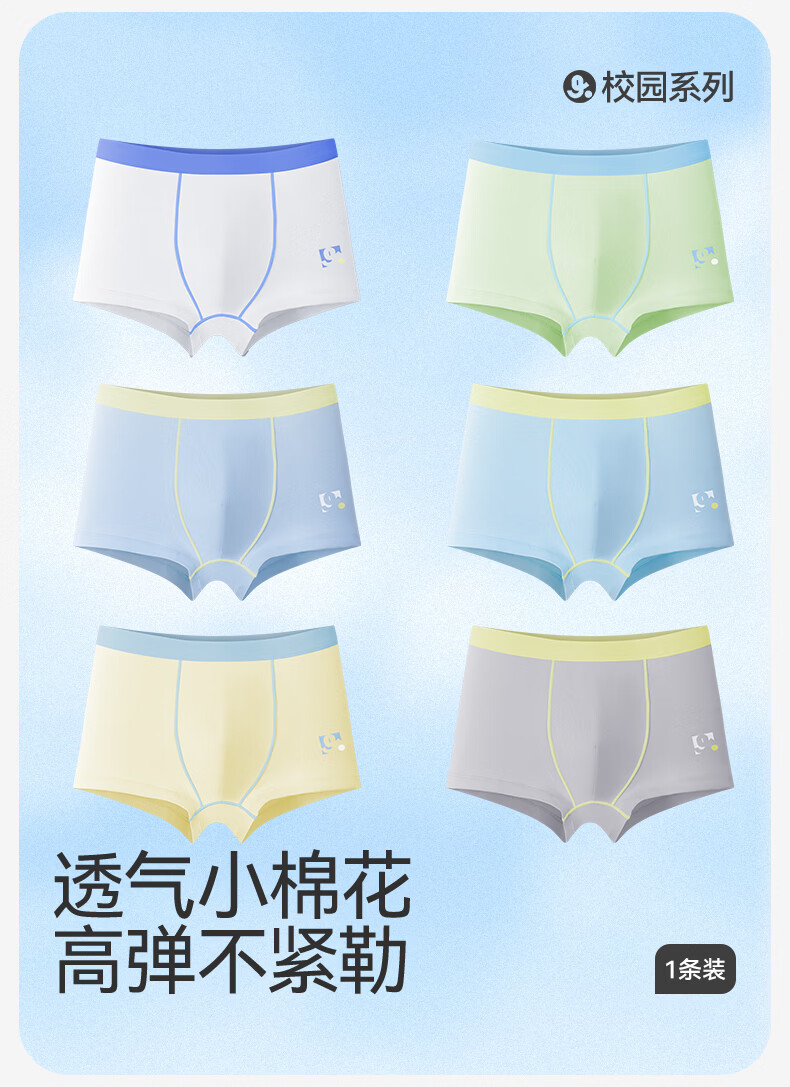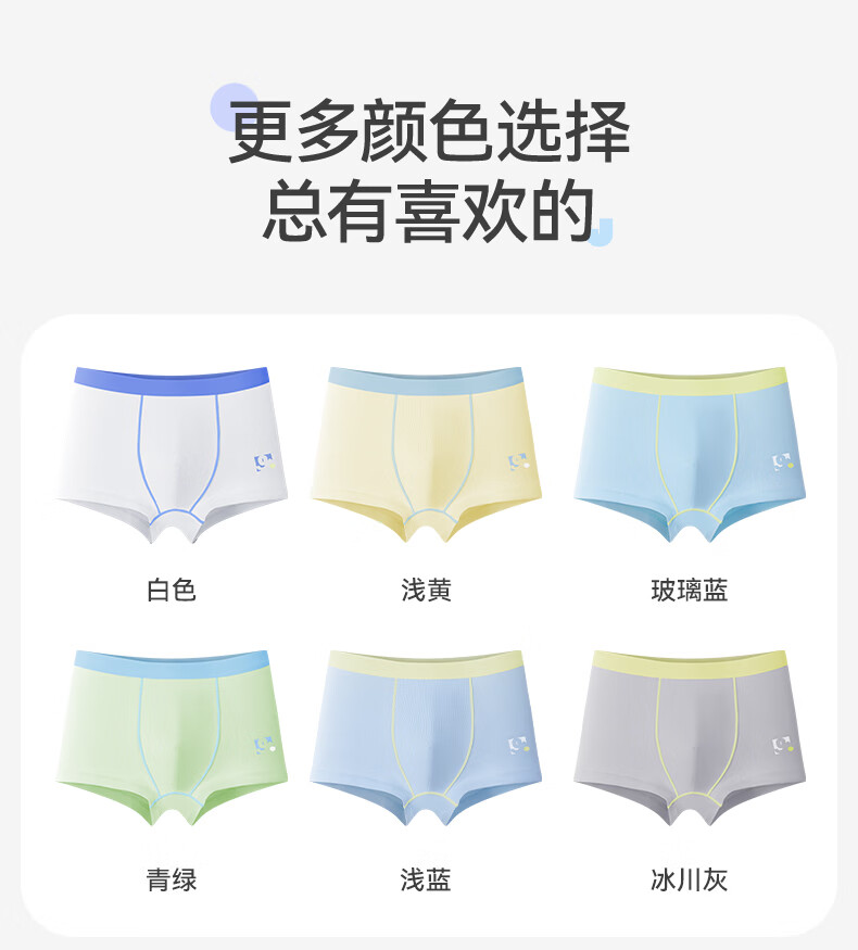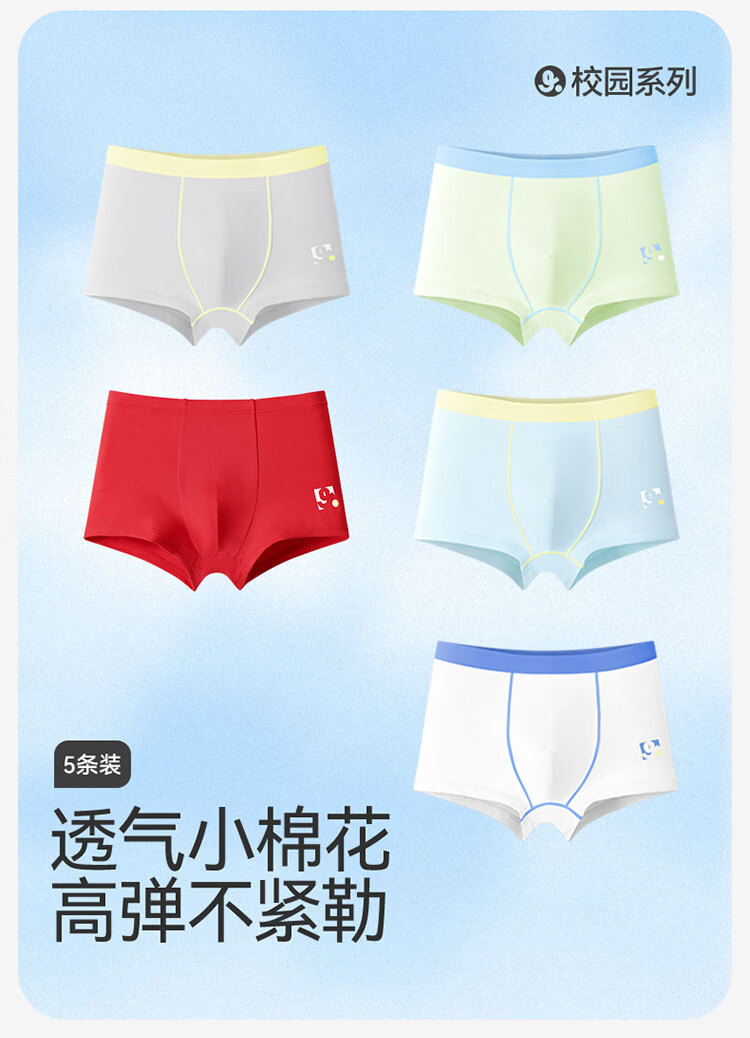 久岁伴男5条平角内裤7A抑菌吸湿透气棉中大儿童青少年本命年红四角裤衩 含蚕丝内裆(白色+浅黄+浅蓝+青绿+冰川灰) 5条 3XL (160) 建议身高150-162,体重90-105斤