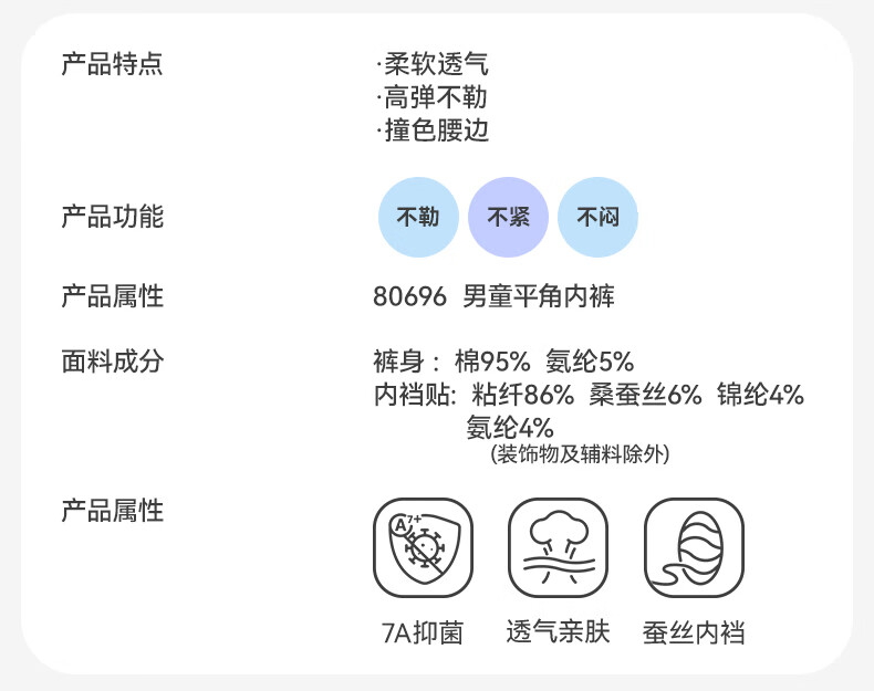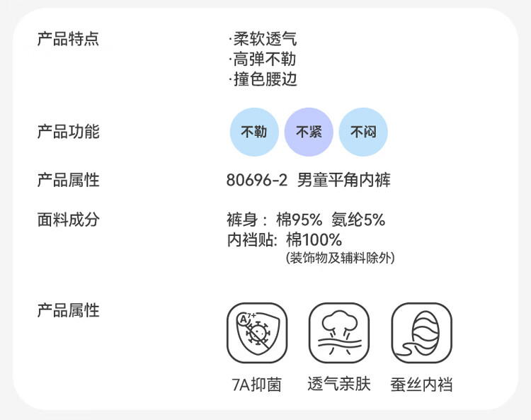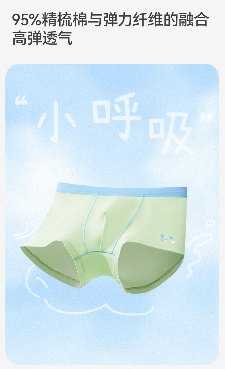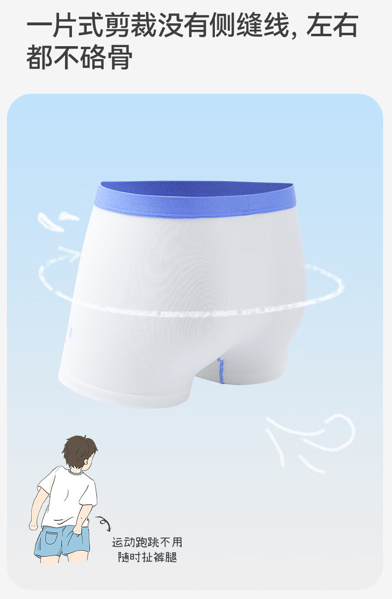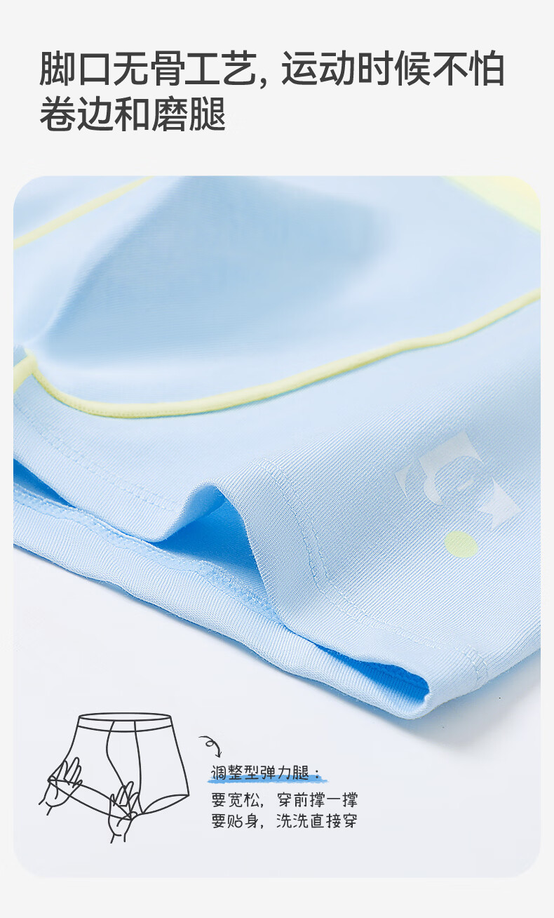 久岁伴男5条平角内裤7A抑菌吸湿透气棉中大儿童青少年本命年红四角裤衩 含蚕丝内裆(白色+浅黄+浅蓝+青绿+冰川灰) 5条 3XL (160) 建议身高150-162,体重90-105斤