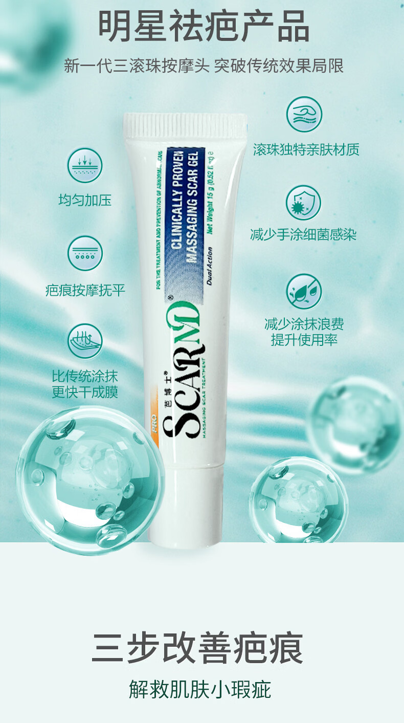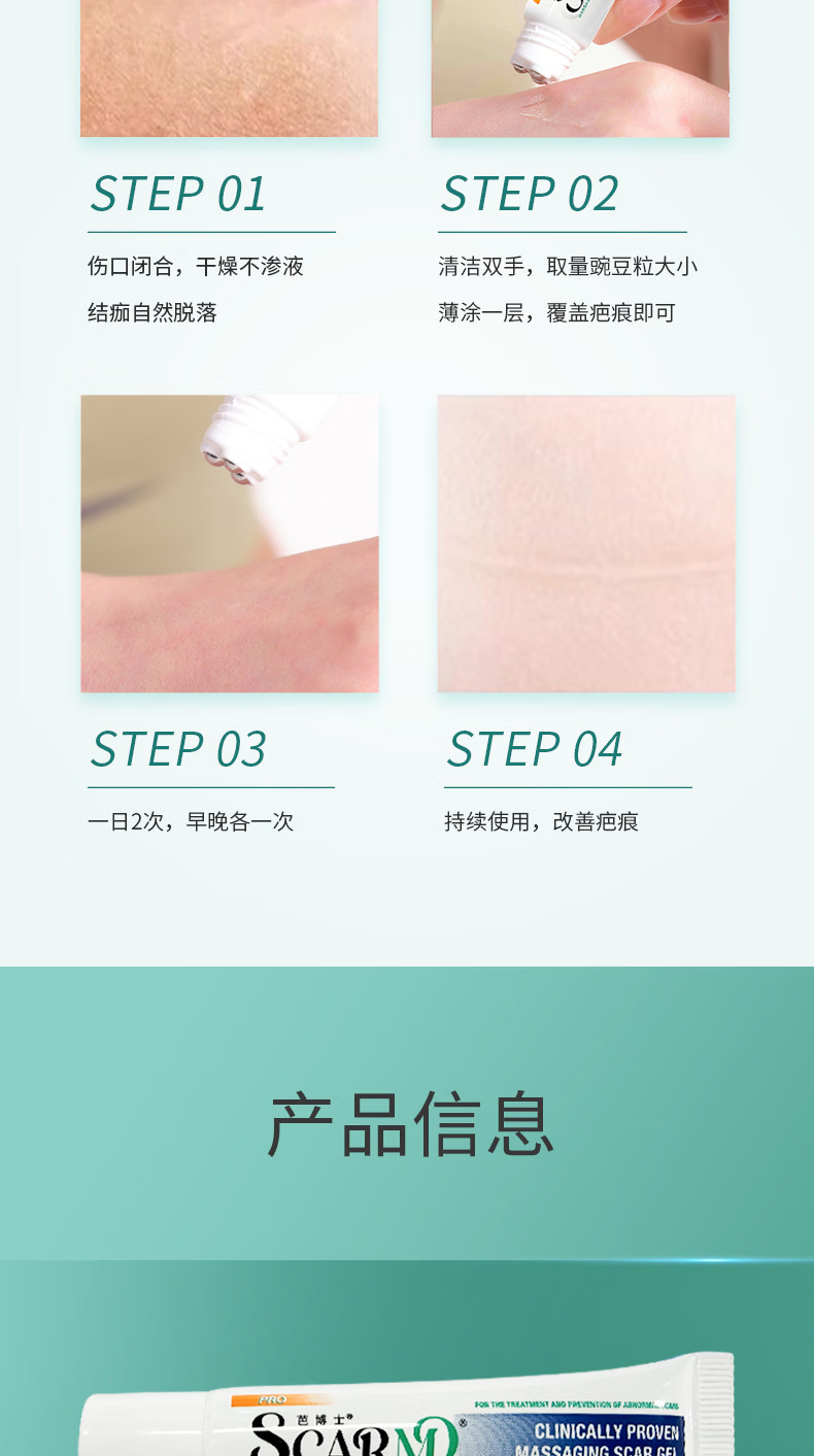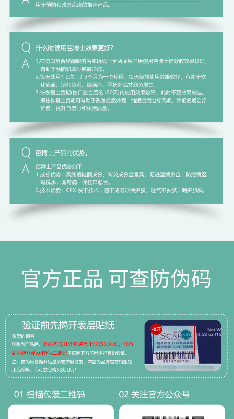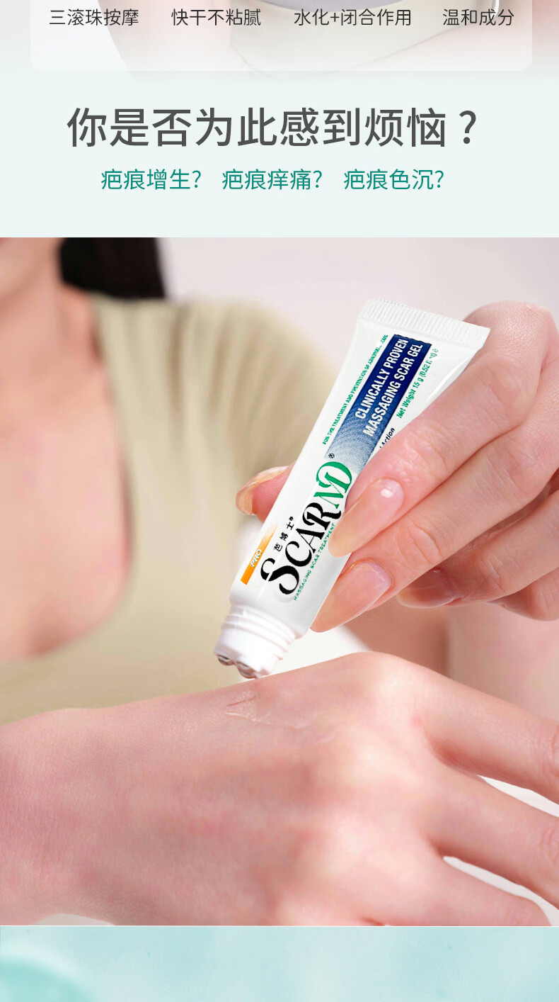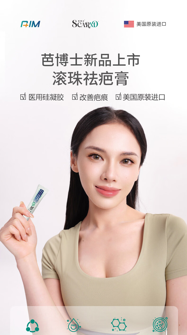 芭博士硅凝胶祛疤膏滚珠按摩疤痕修复去疤美国原装进口医用儿童疤痕药膏 升级版-滚珠疤痕膏 15g