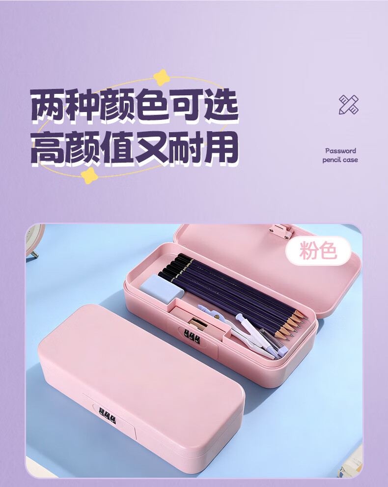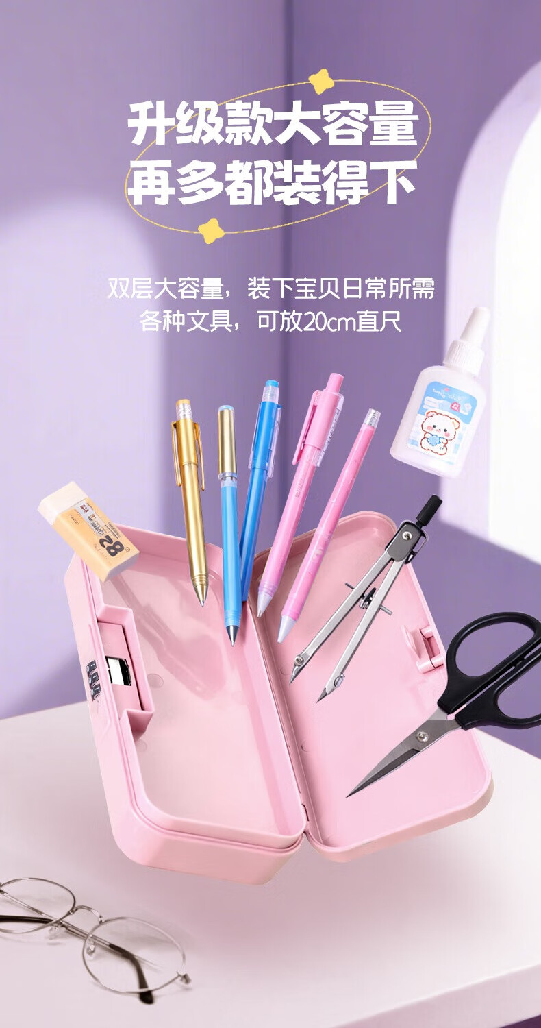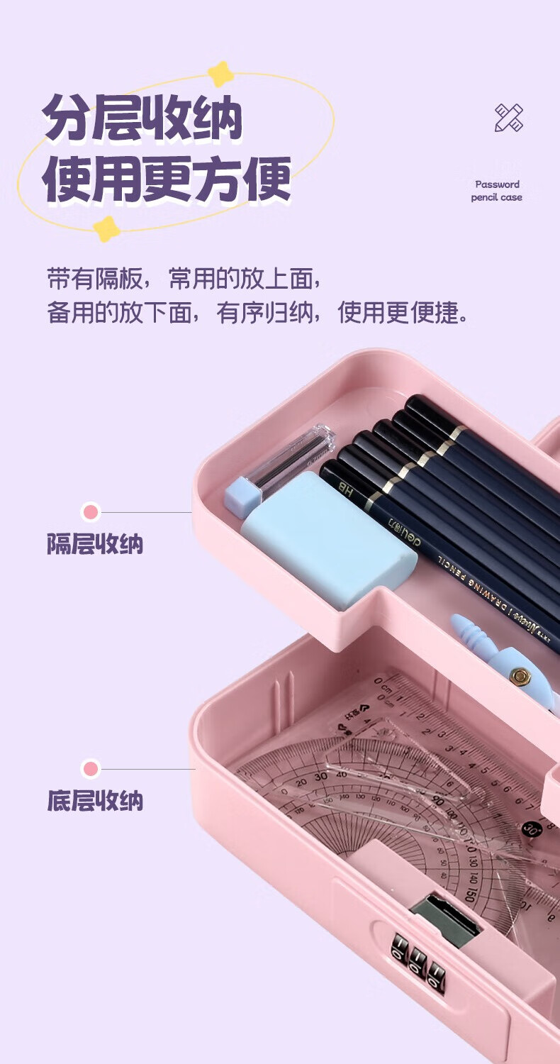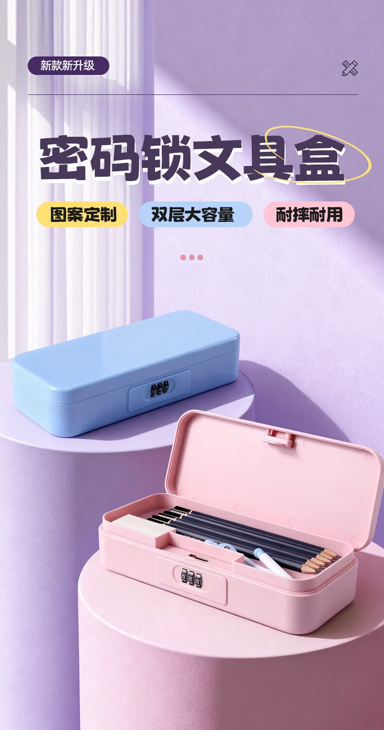 文木思【密码锁文具盒】小学生用笔盒多功能文具盒双层大容量女孩男孩款笔盒25新款铅笔盒可定制儿童笔袋 蓝色双层密码锁【随机贴纸】