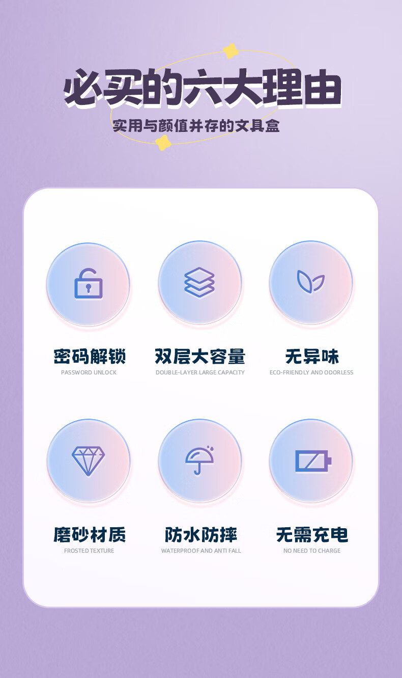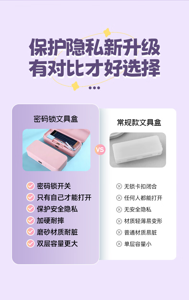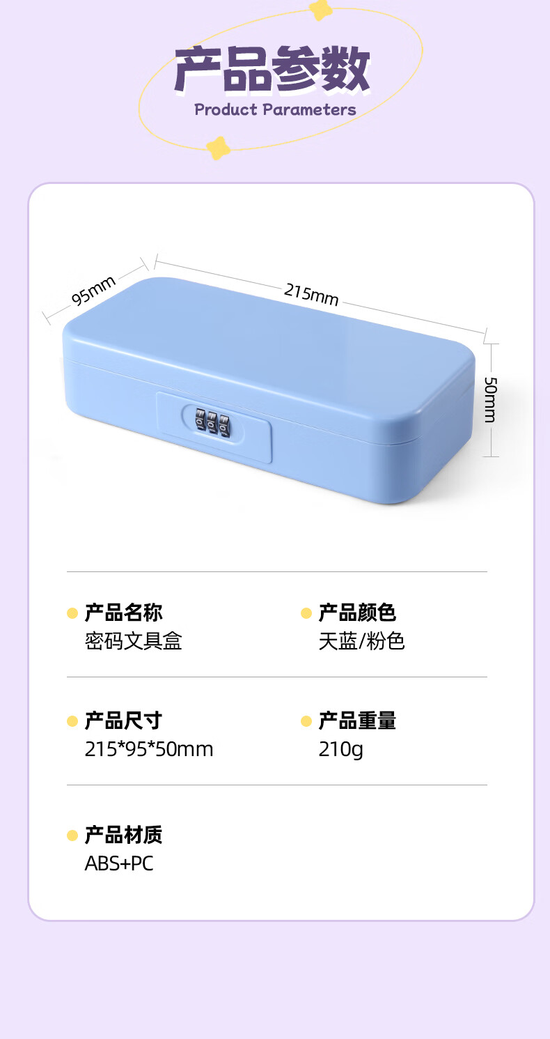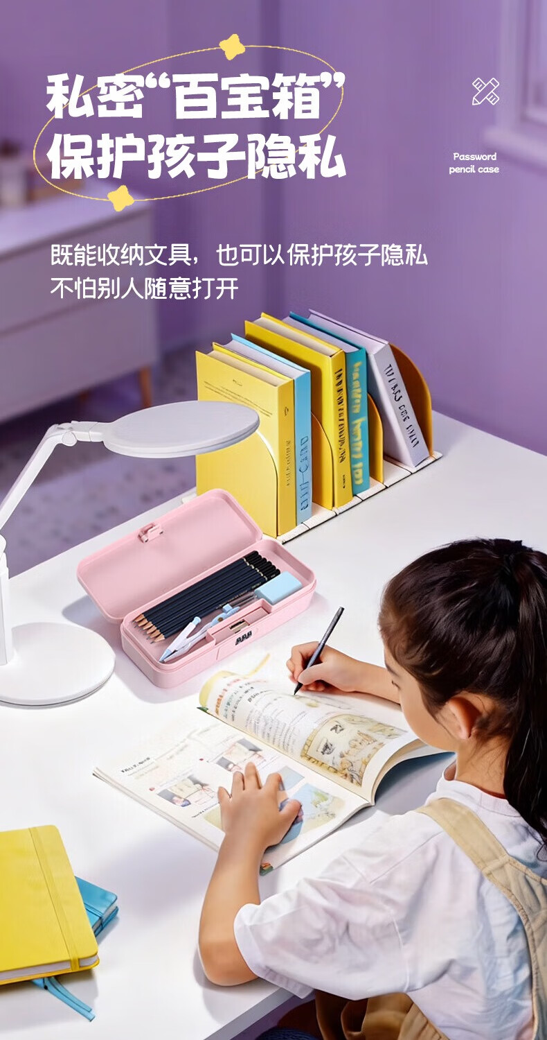 文木思【密码锁文具盒】小学生用笔盒多功能文具盒双层大容量女孩男孩款笔盒25新款铅笔盒可定制儿童笔袋 蓝色双层密码锁【随机贴纸】