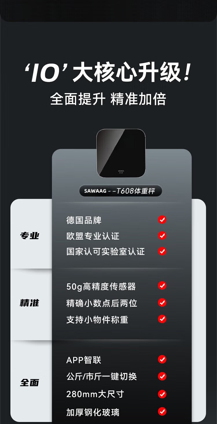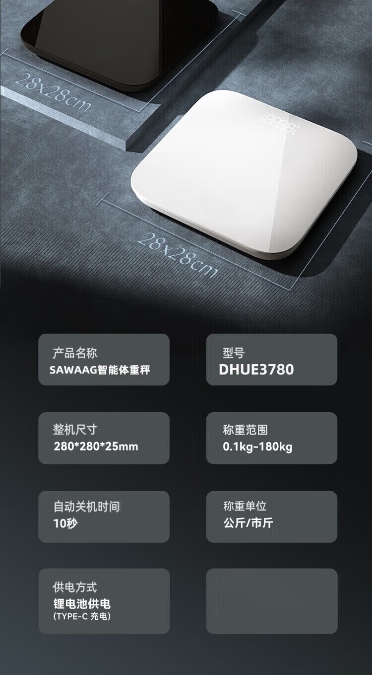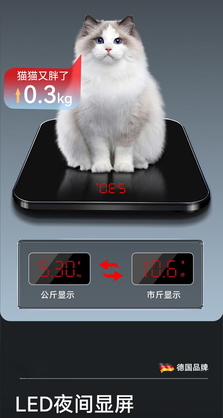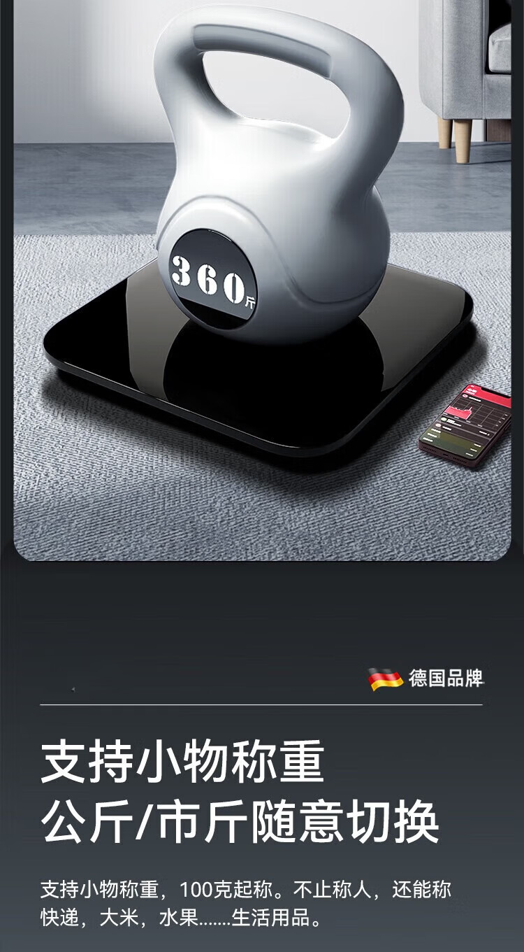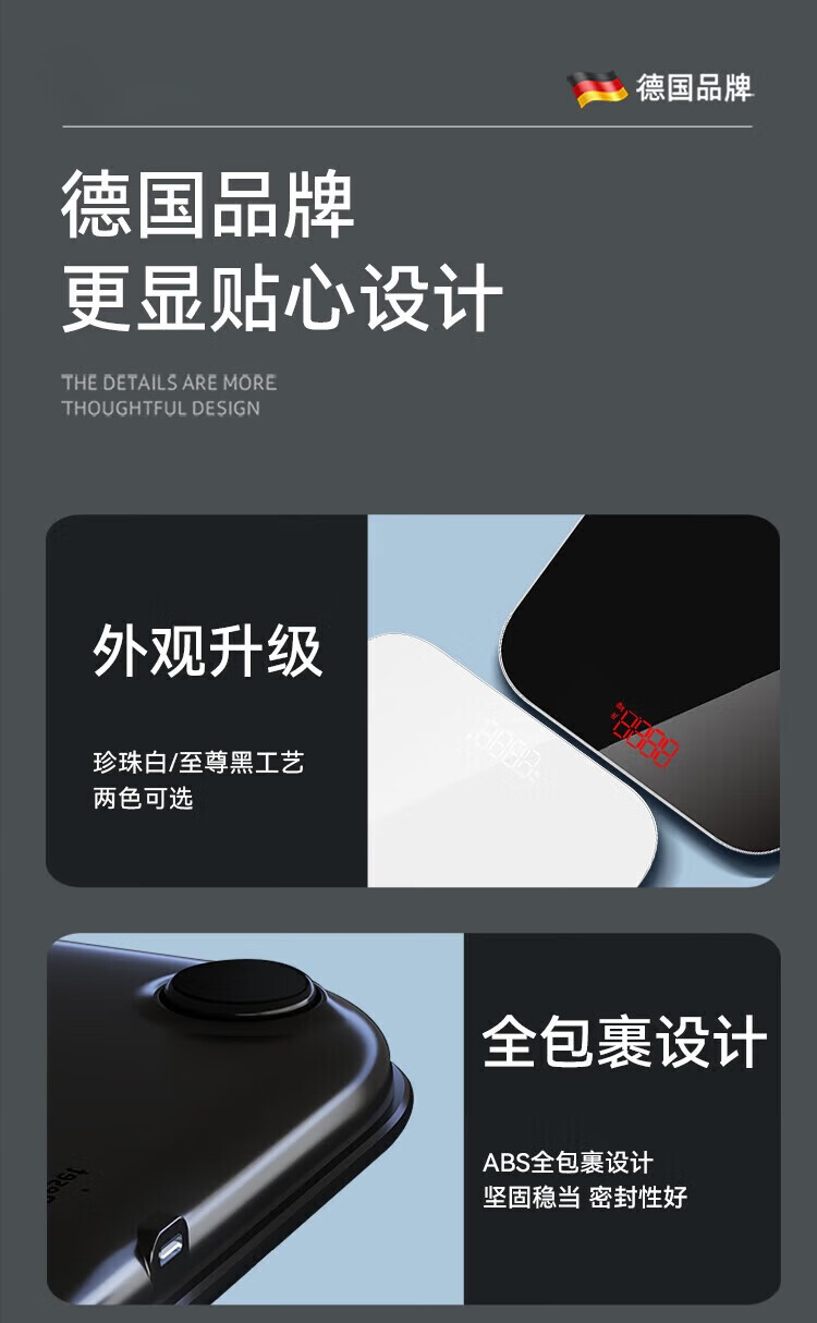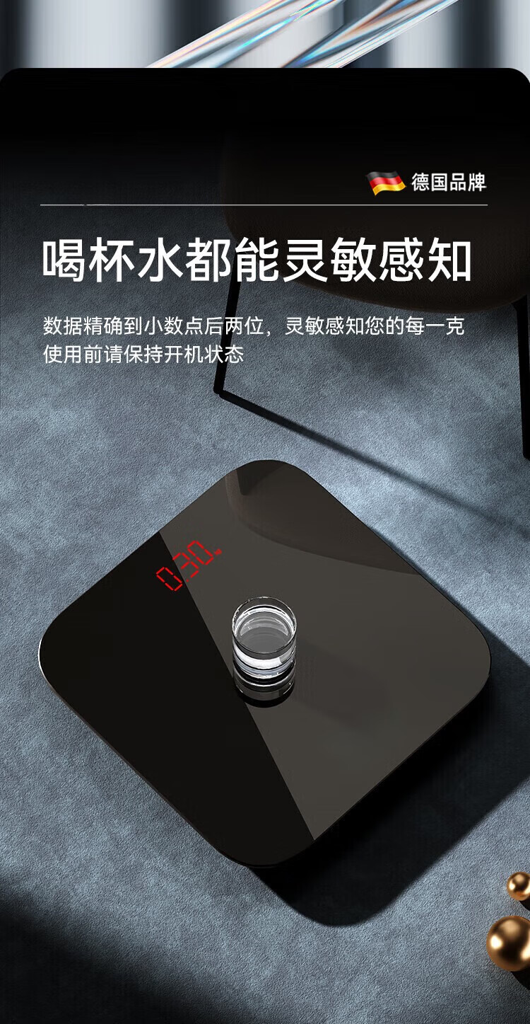 飒望德国体重秤减肥专用精准到0.01克体脂秤称体重的电子秤家用人体高精度充电款粉色便携 闪充黑【超级闪充 可测室温 LED隐屏】 金榜推荐丨百万热销
