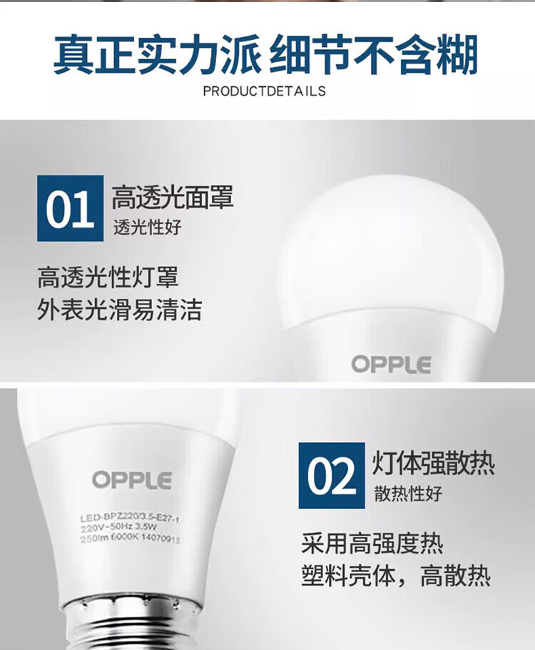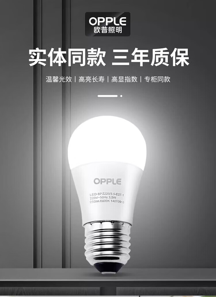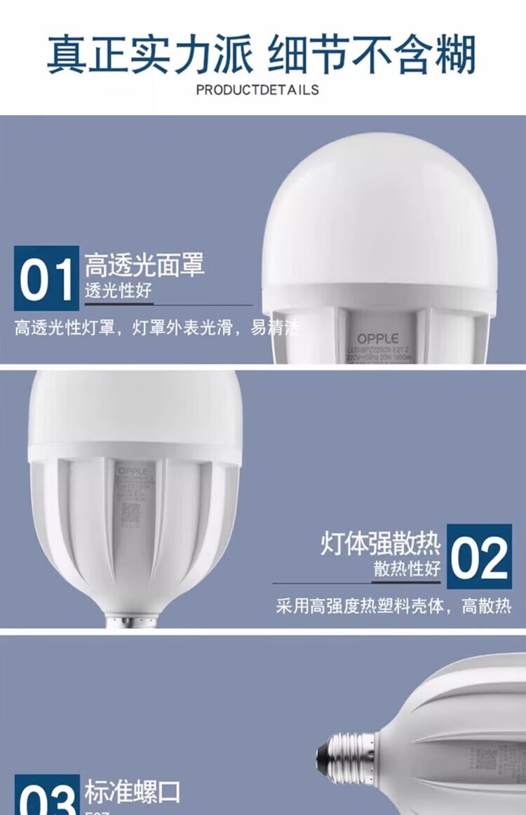 欧普照明(OPPLE)led灯泡超亮节能护眼e27螺口家用照明卧室客厅厨房工厂室内室外灯 欧普12W灯泡白光-E27大螺口