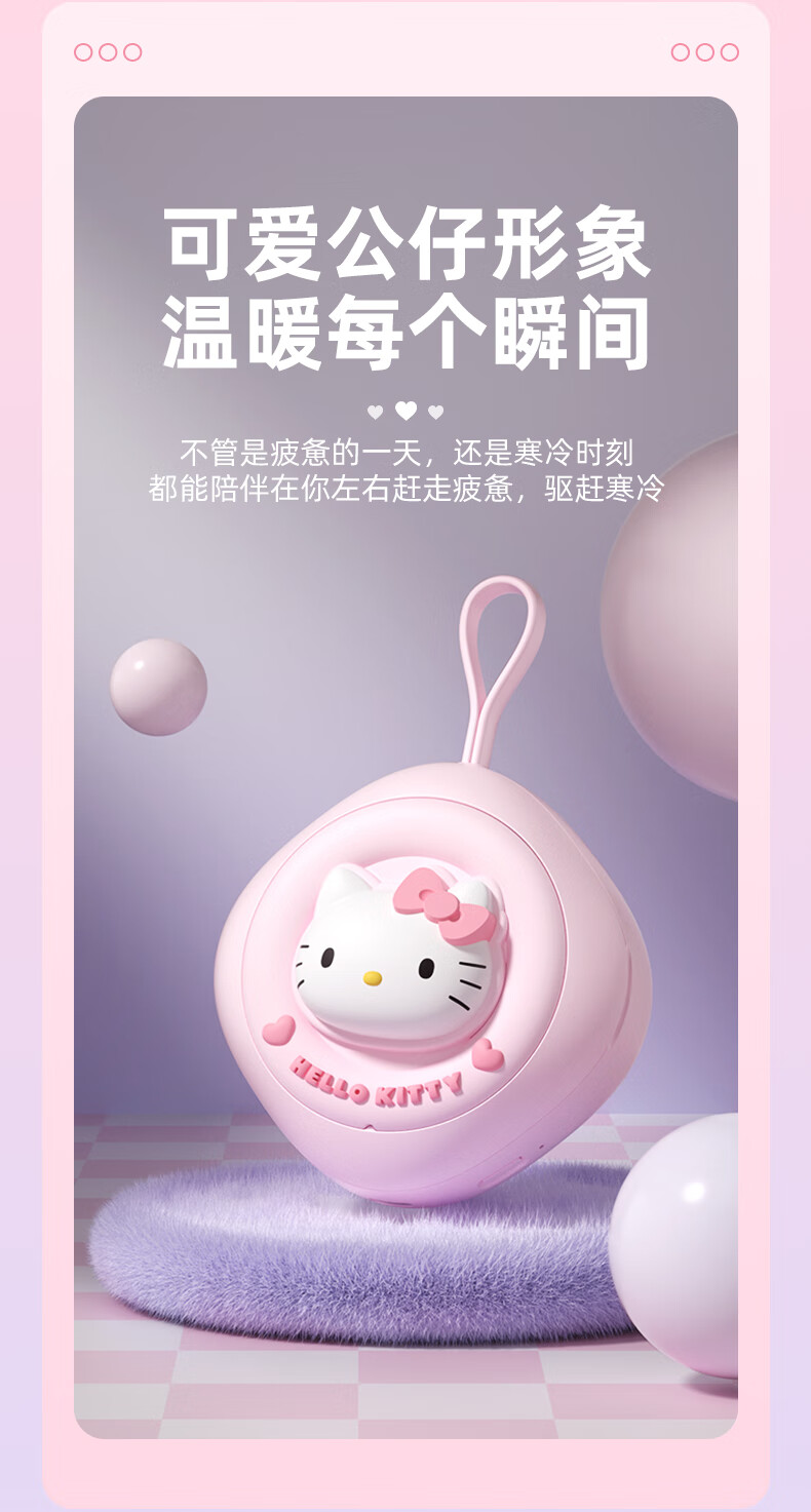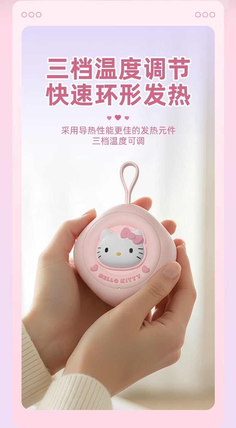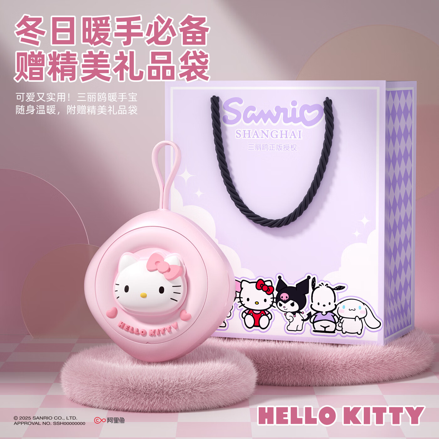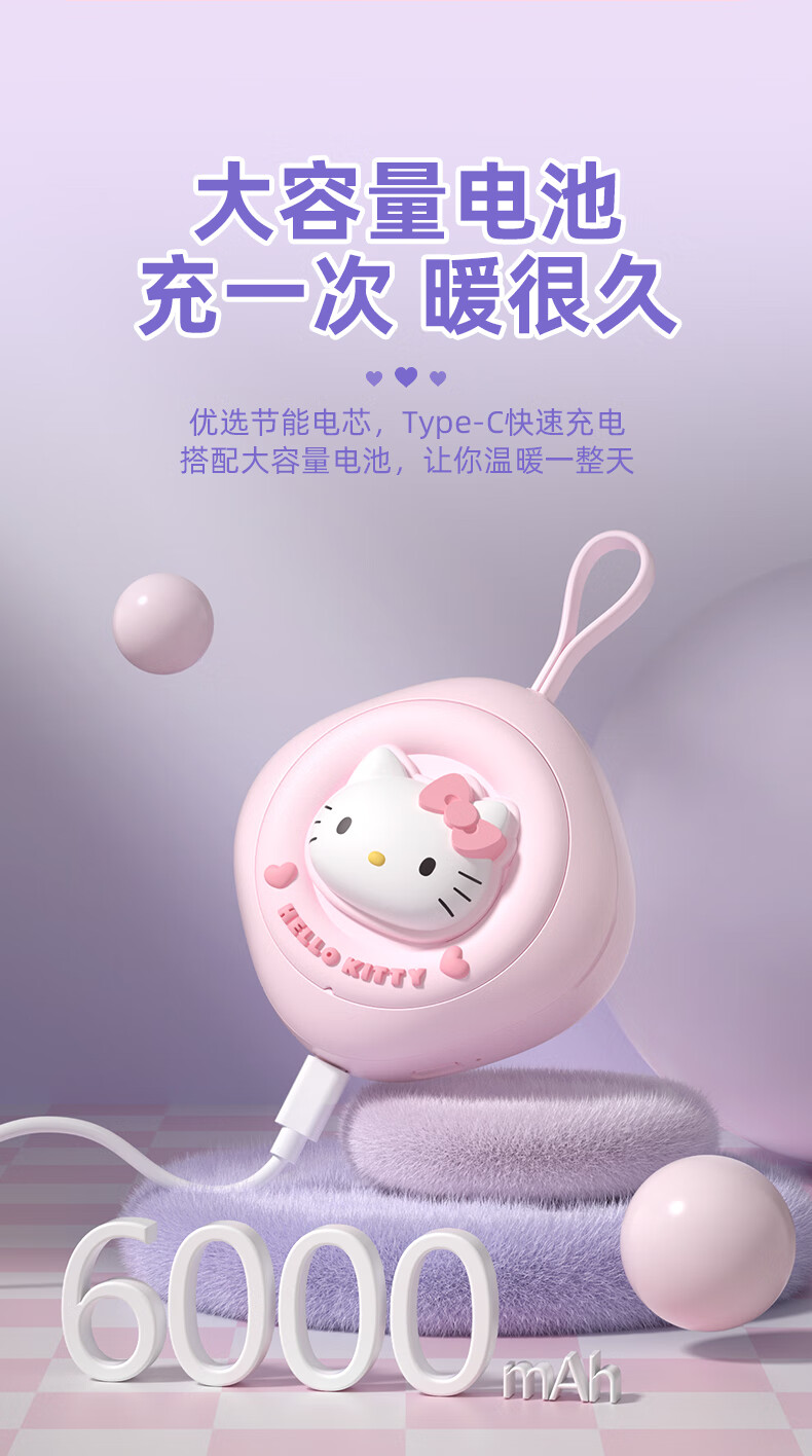 Hello Kitty充电暖手宝化妆镜二合一 女生可爱学生党生日礼物情人节礼物库洛米暖手宝容量便携三档速暖充电式 粉色 凯蒂猫暖手宝 大容量6000mAh+磁吸化妆镜+礼袋套装