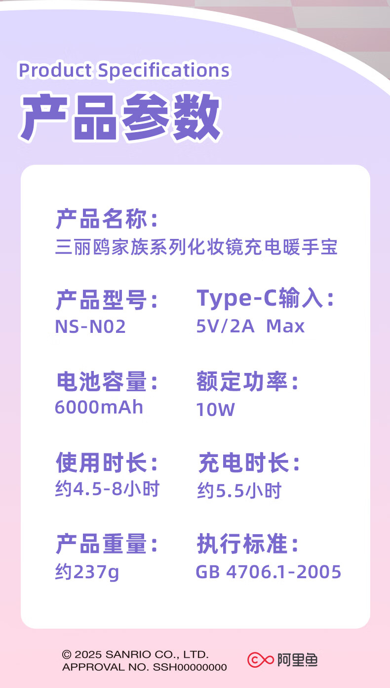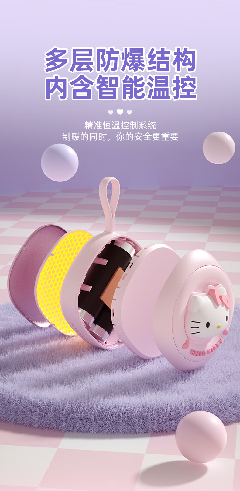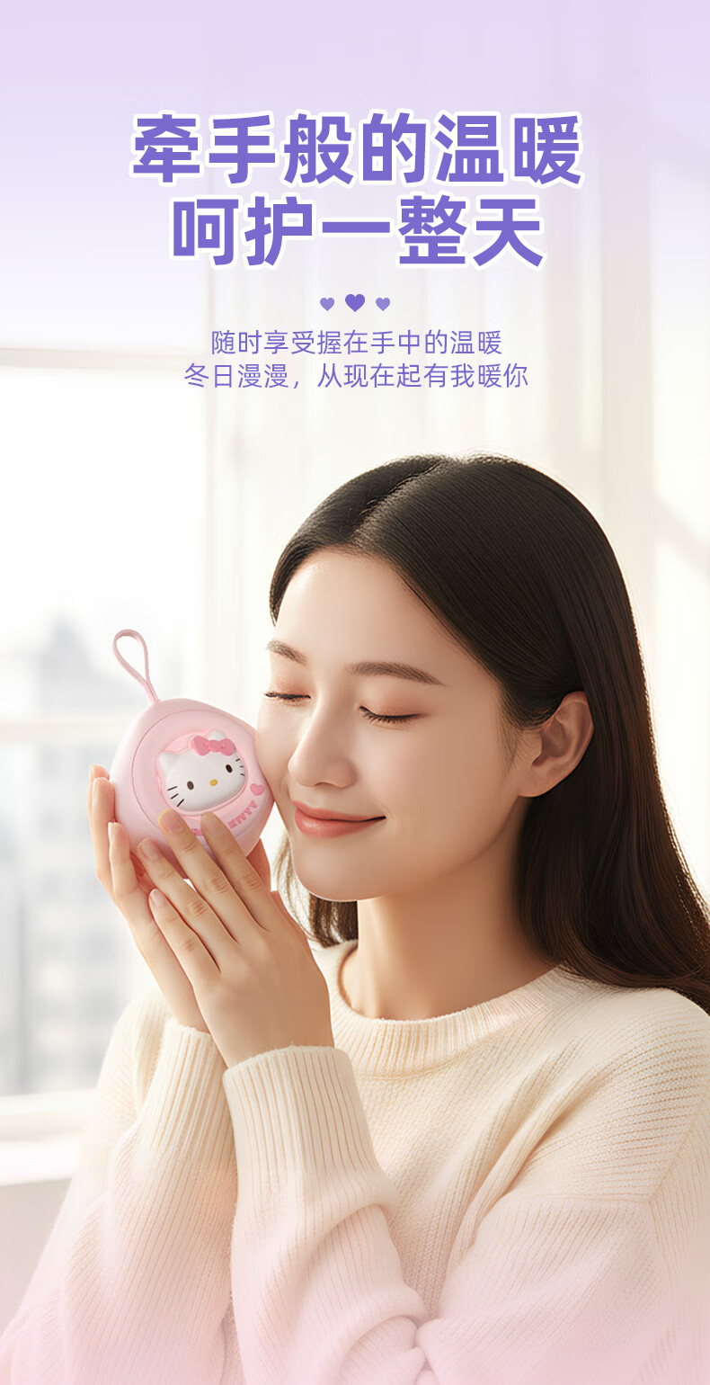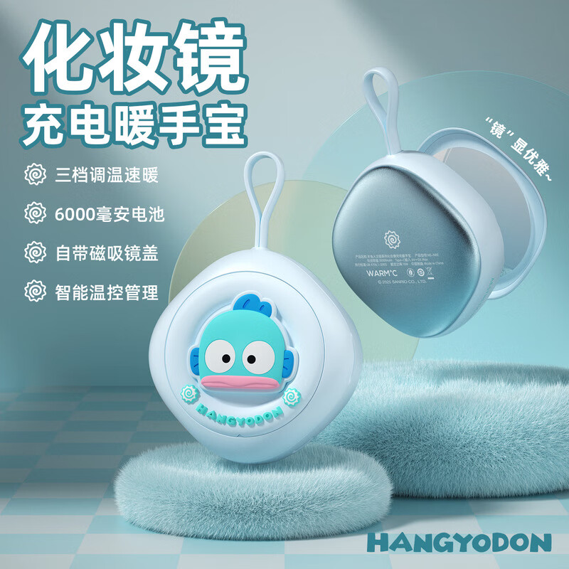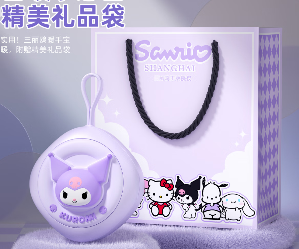Hello Kitty充电暖手宝化妆镜二合一 女生可爱学生党生日礼物情人节礼物库洛米暖手宝容量便携三档速暖充电式 粉色 凯蒂猫暖手宝 大容量6000mAh+磁吸化妆镜+礼袋套装