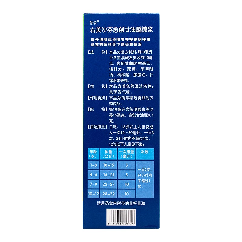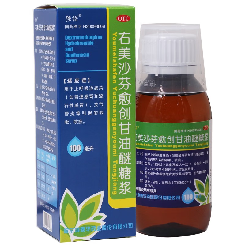 强诺 右美沙芬愈创甘油醚糖浆 100ml 用于上呼吸道感染 感冒和流行性感冒 支气管炎等引起的咳嗽 咳痰 新冠指南用药