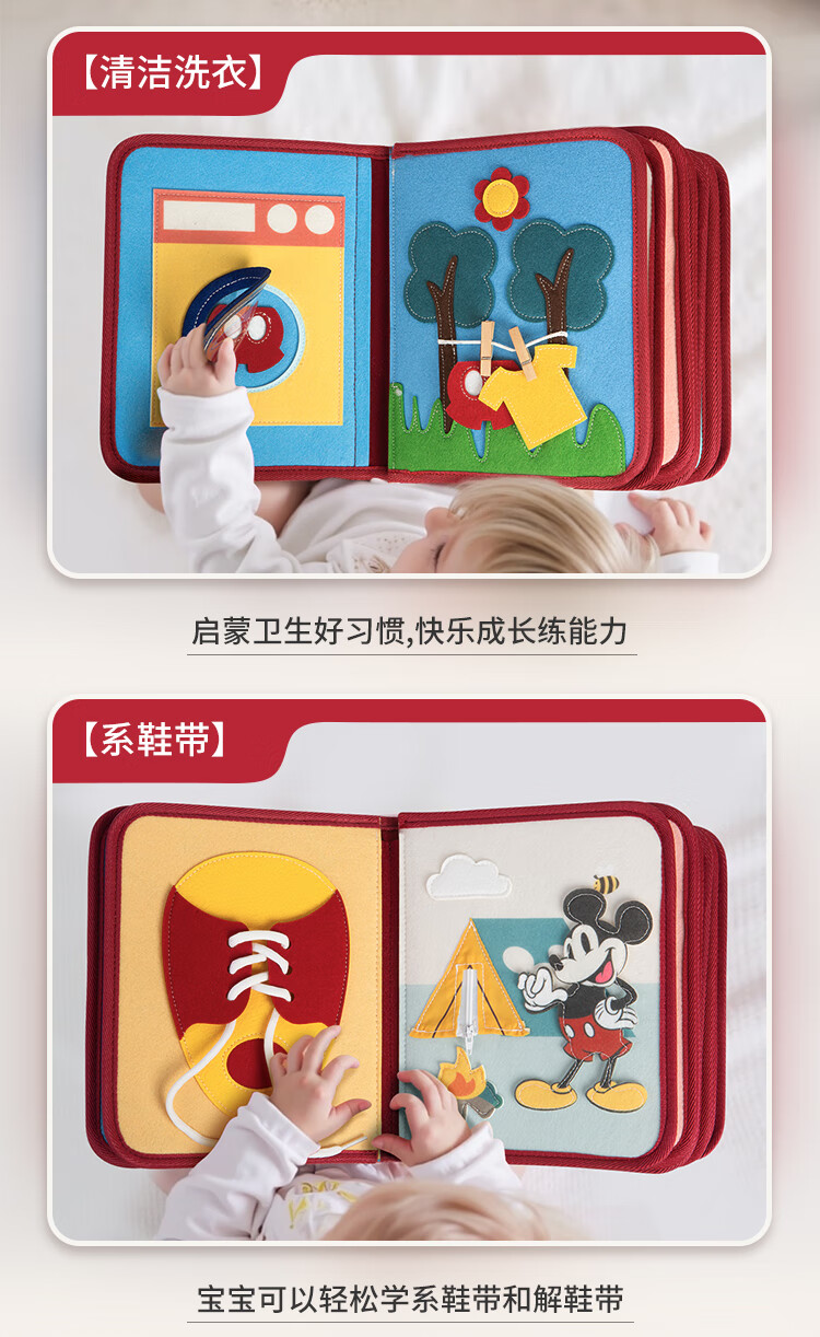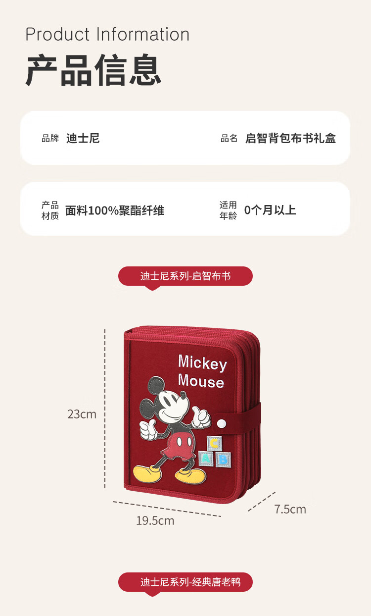 迪士尼蒙氏早教宝宝布书婴儿玩具土豪书新生儿礼盒周岁新年礼物