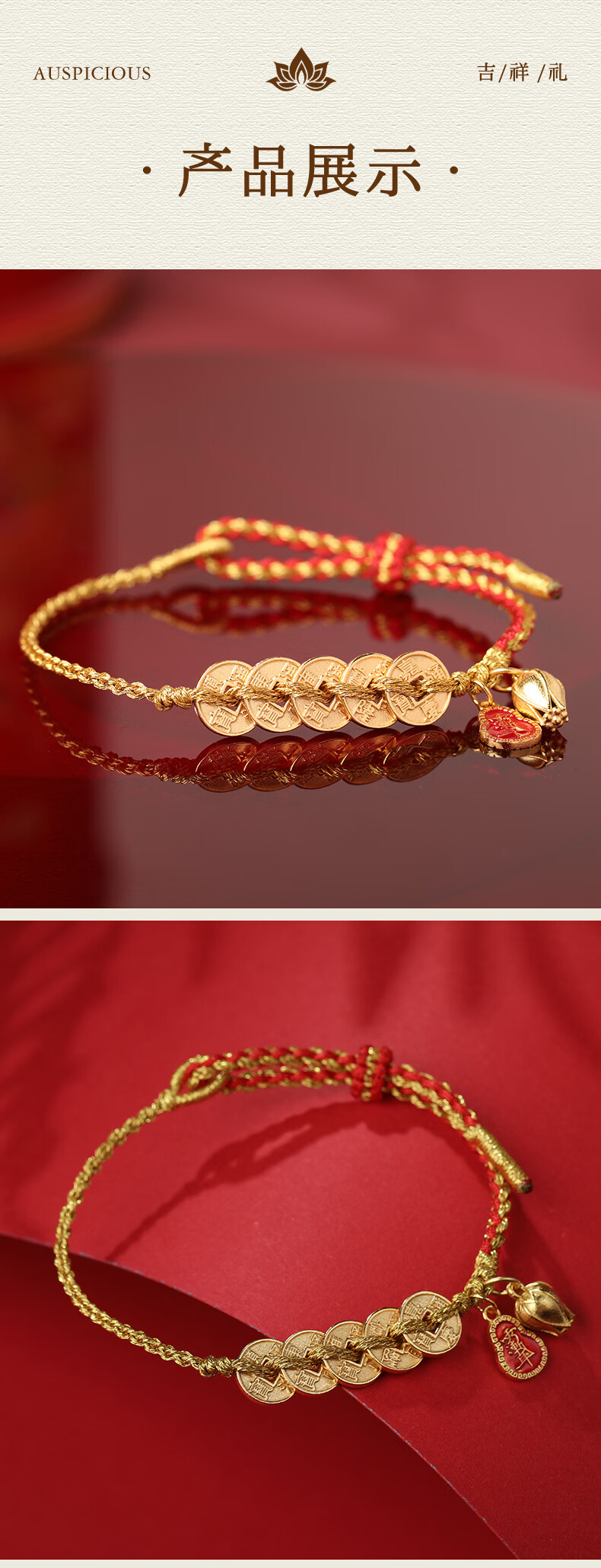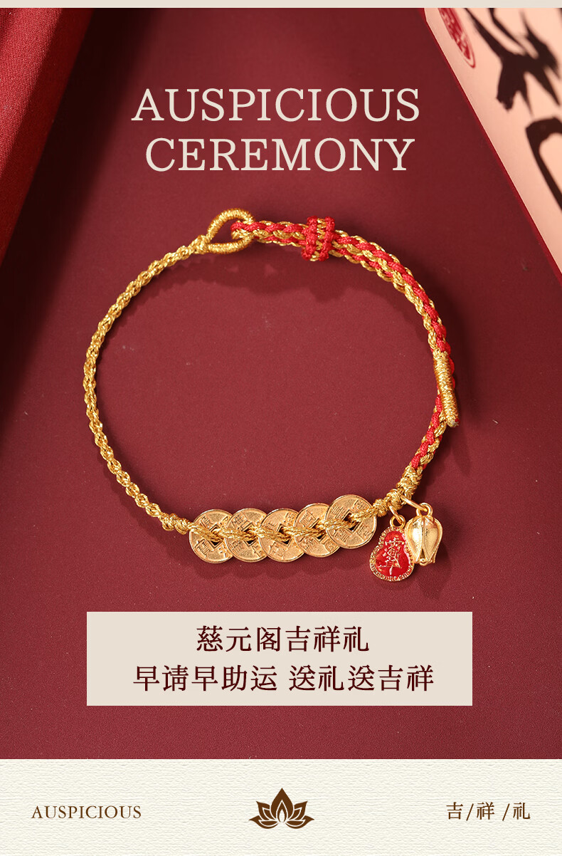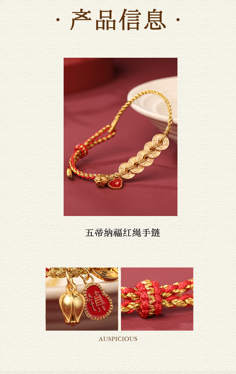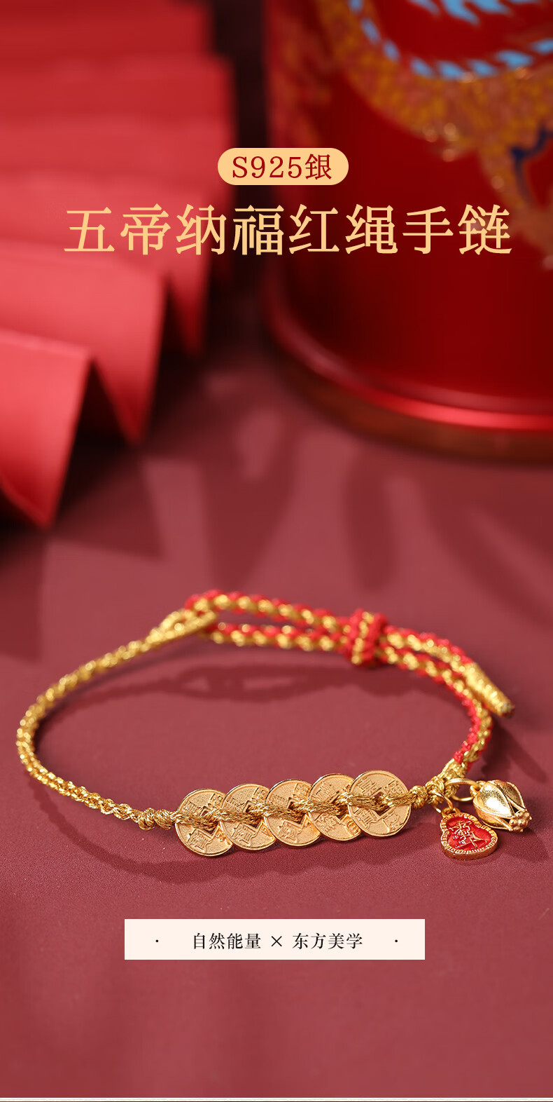 慈元阁s925银五帝纳福红绳手链本命年男女情侣款红手绳送女友生日礼物 s925银五帝纳福红绳手链