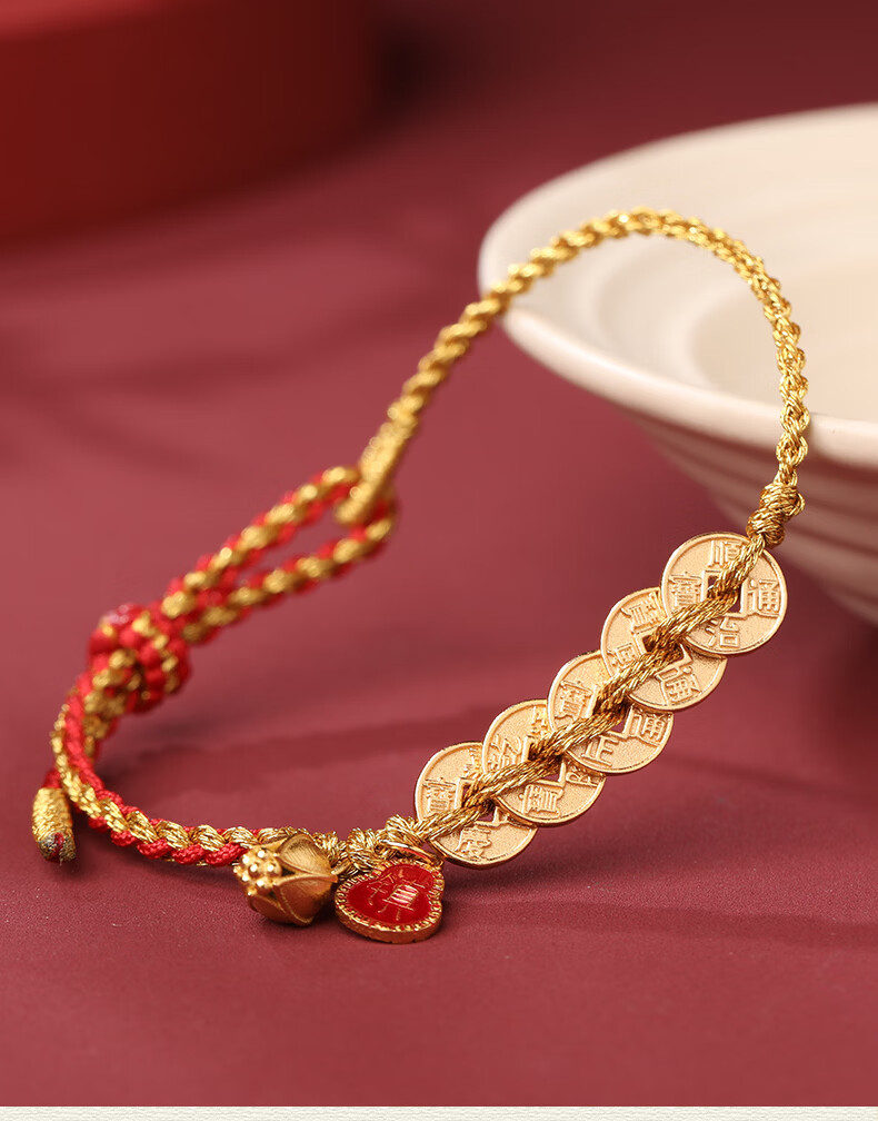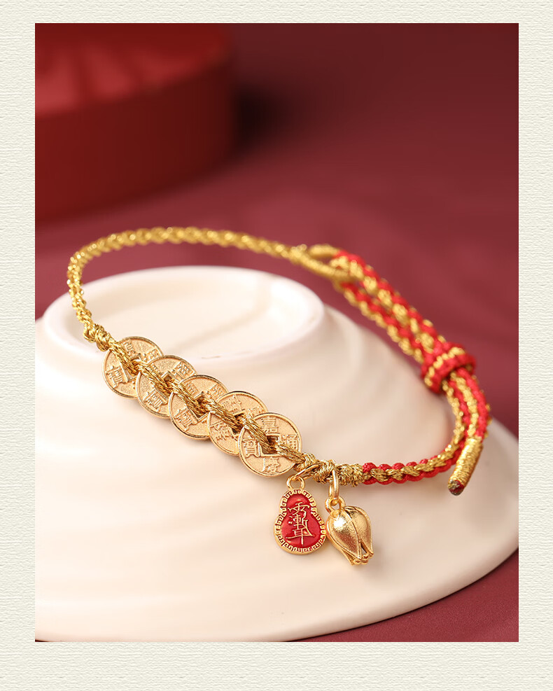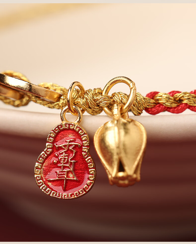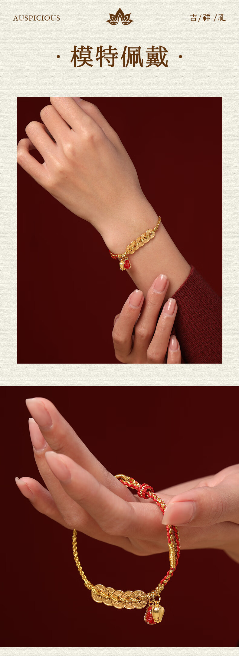 慈元阁s925银五帝纳福红绳手链本命年男女情侣款红手绳送女友生日礼物 s925银五帝纳福红绳手链