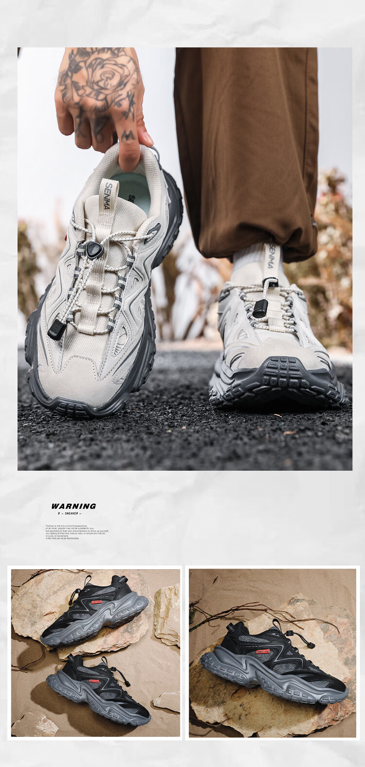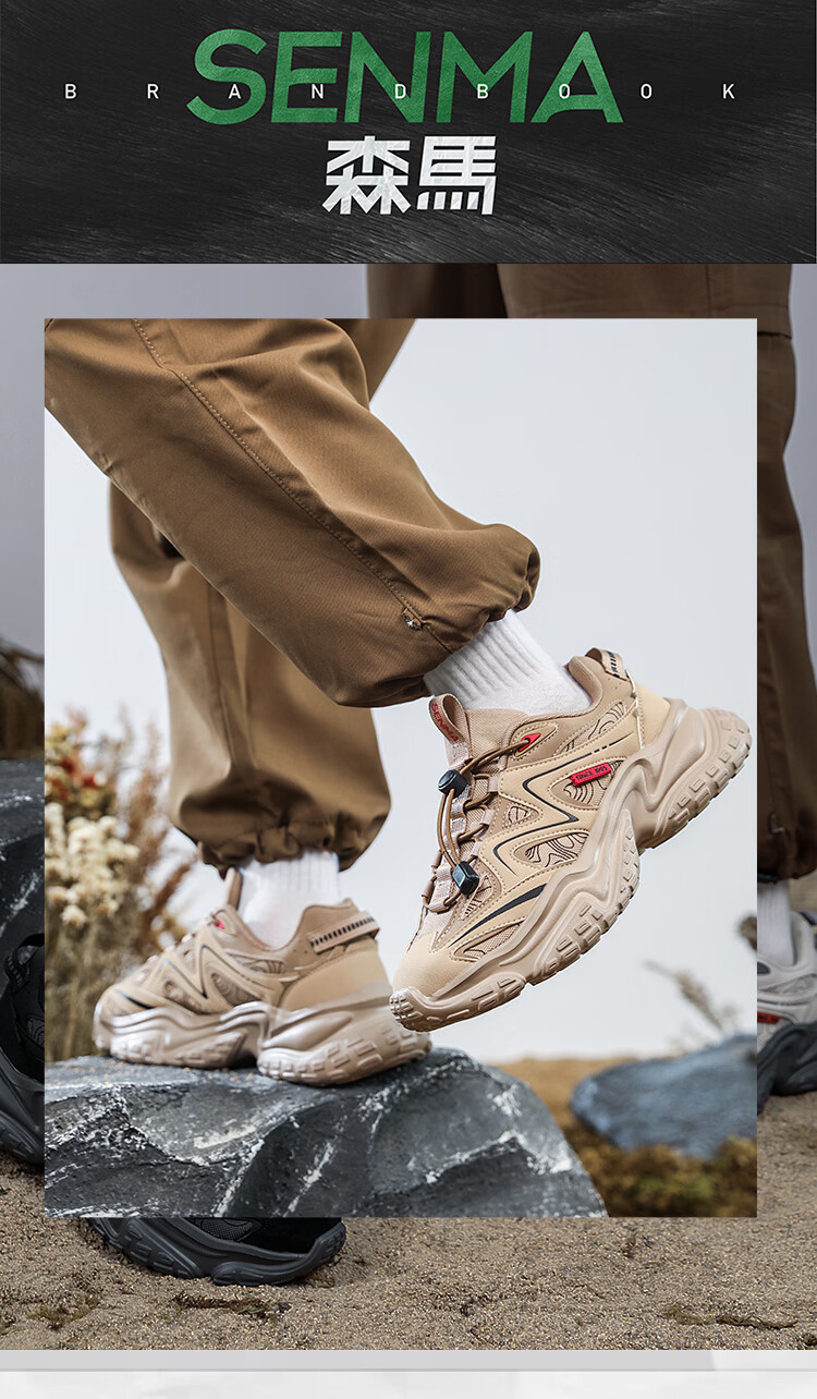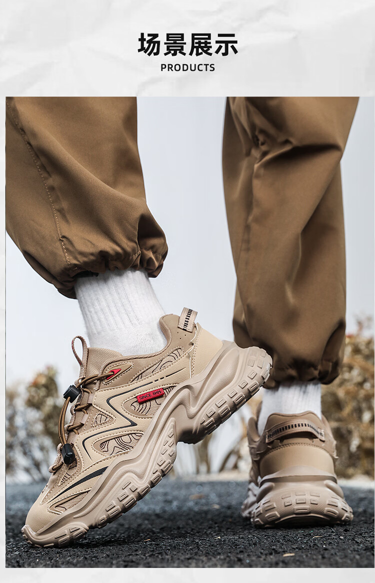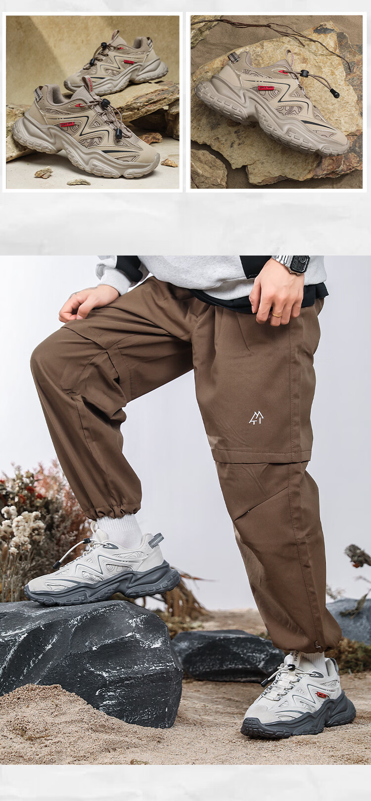 森馬男鞋2026新款夏季百搭运动休闲鞋男士户外防滑耐磨厚底增高老爹鞋 米灰【基础款】 39 标准码数/现货秒发