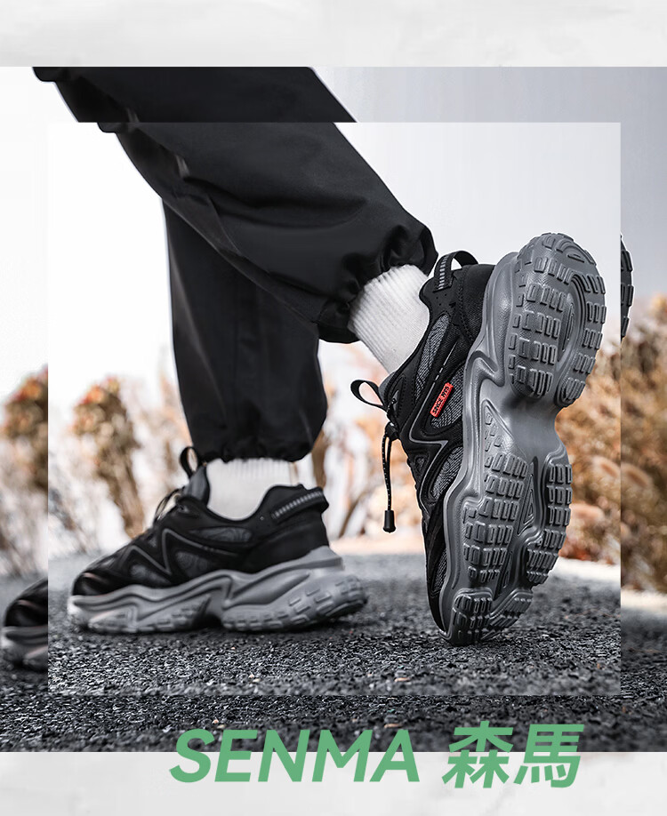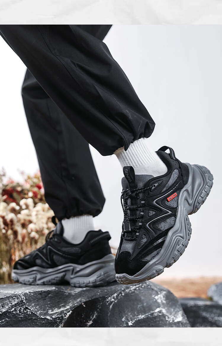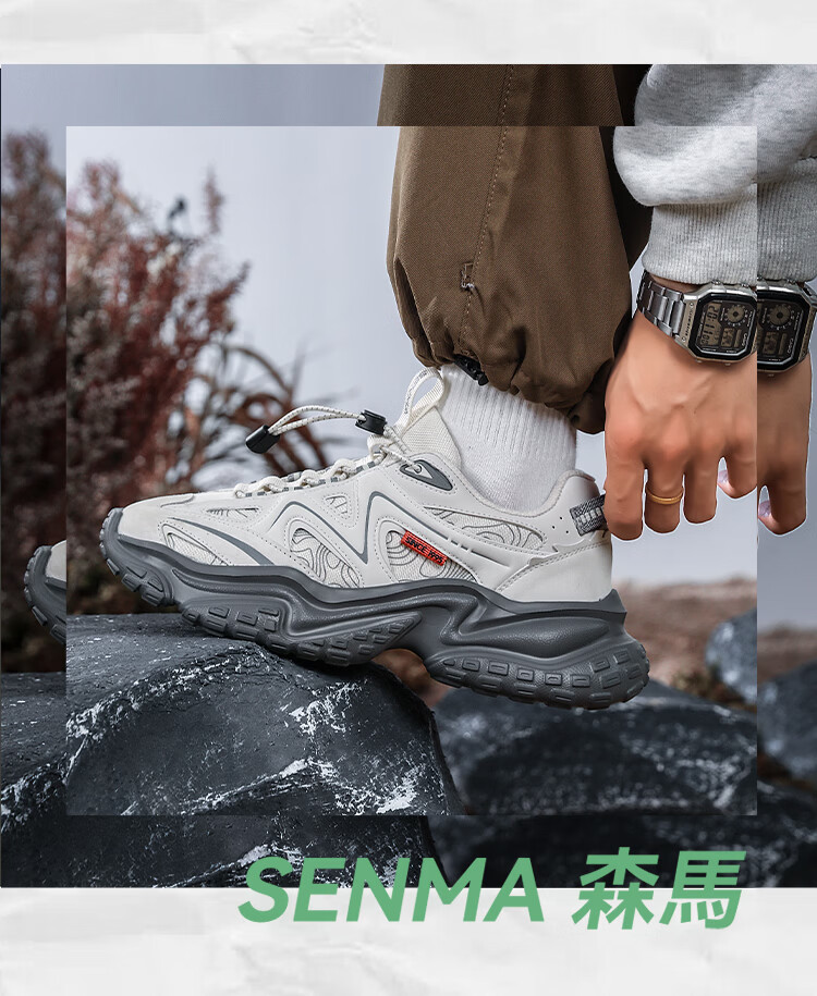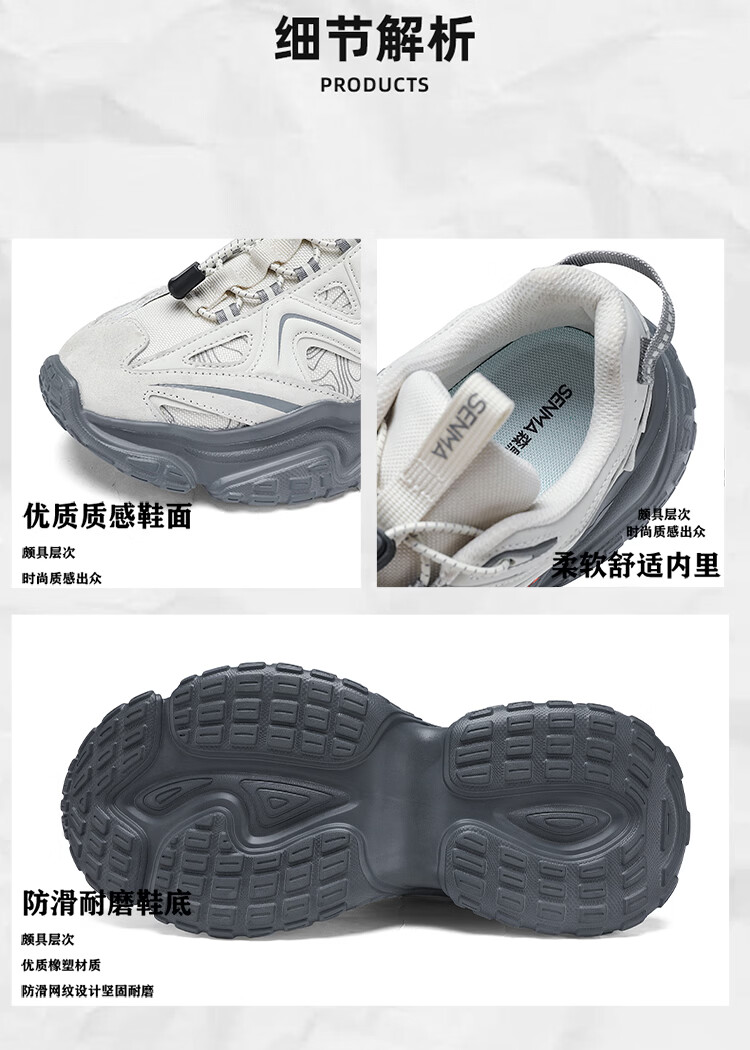 森馬男鞋2026新款夏季百搭运动休闲鞋男士户外防滑耐磨厚底增高老爹鞋 米灰【基础款】 39 标准码数/现货秒发