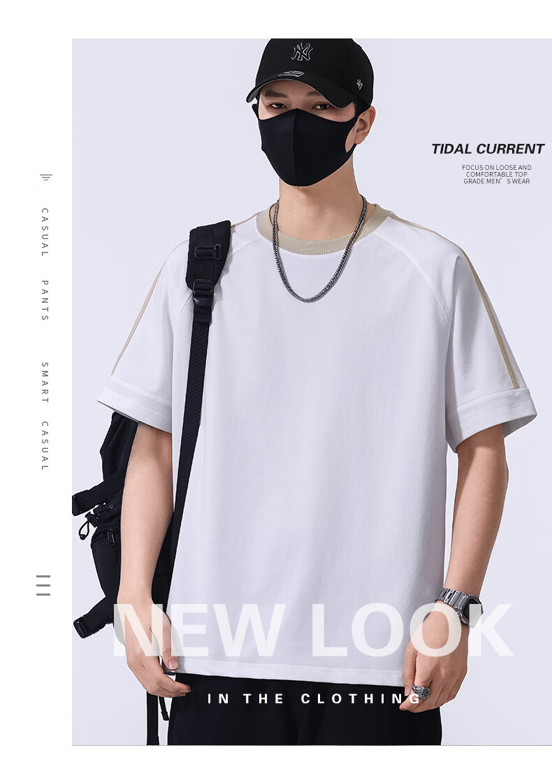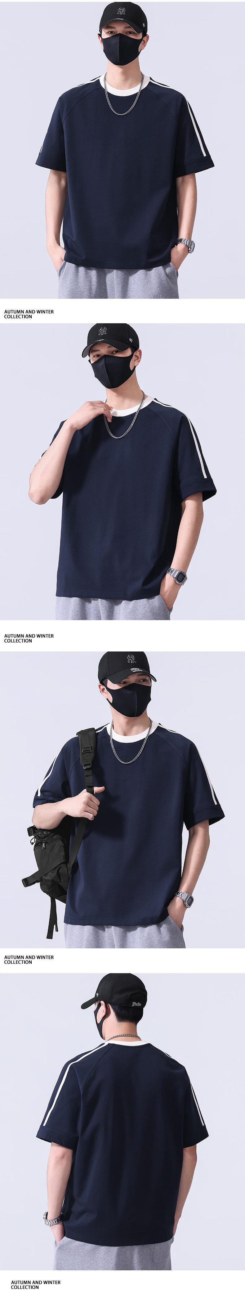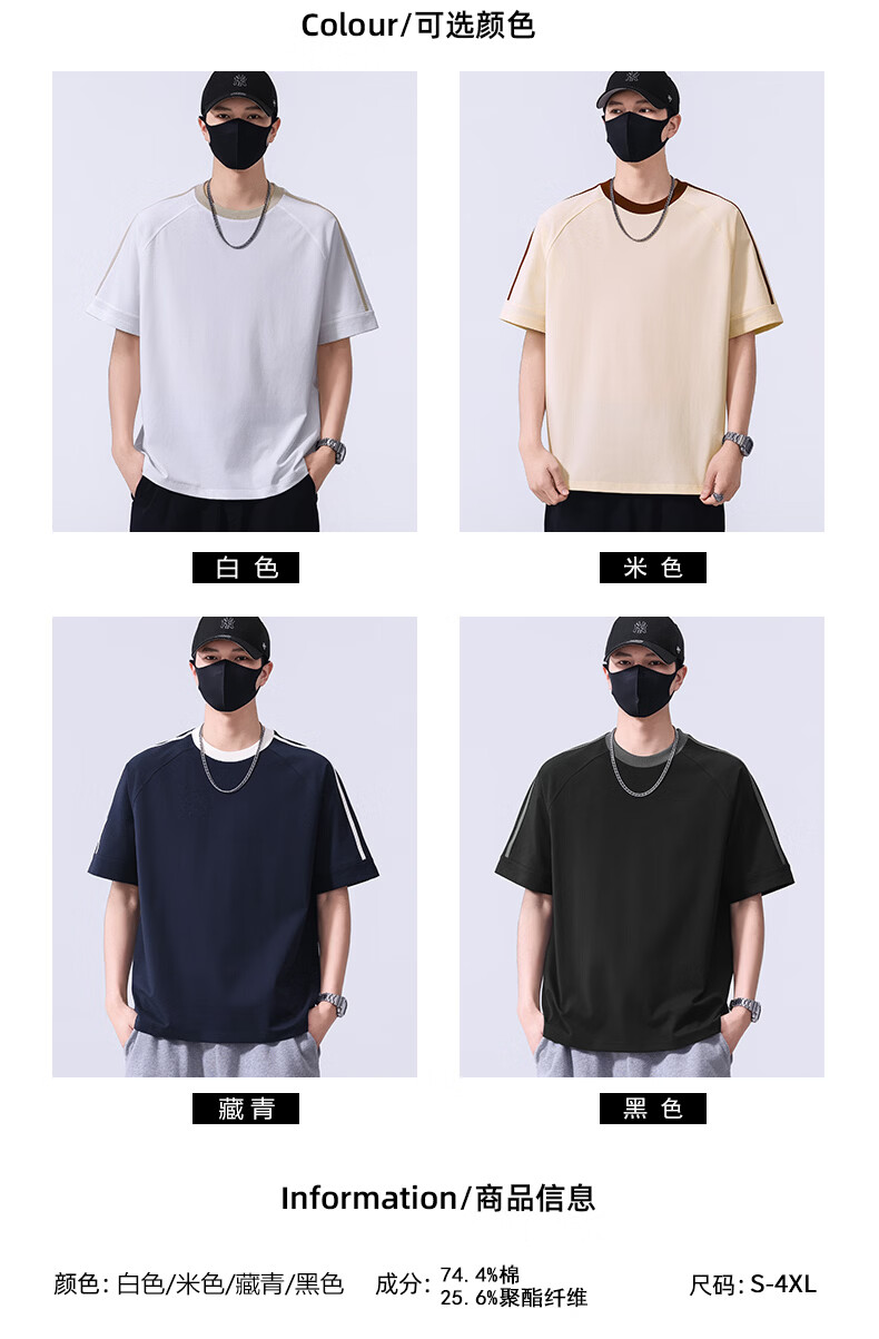 真维斯宽松短袖春夏季T恤男士2026新款潮流体恤五分袖休闲上衣服 藏青色 S