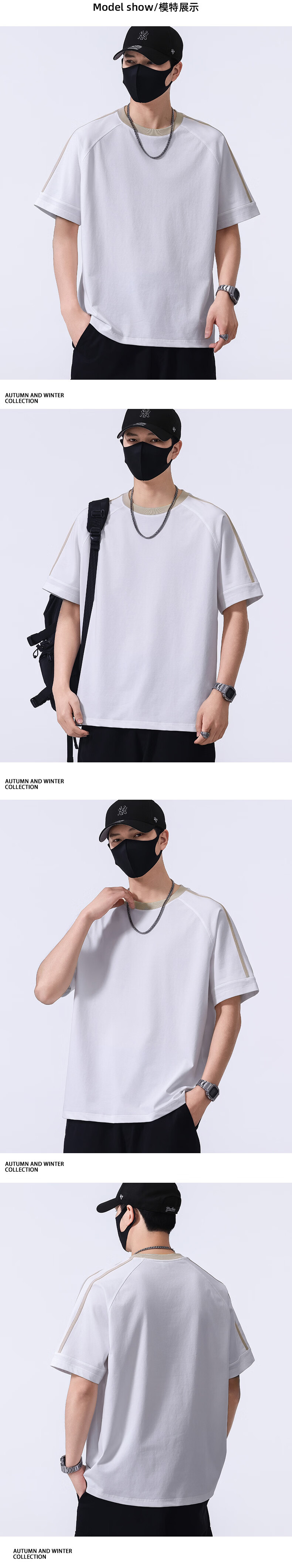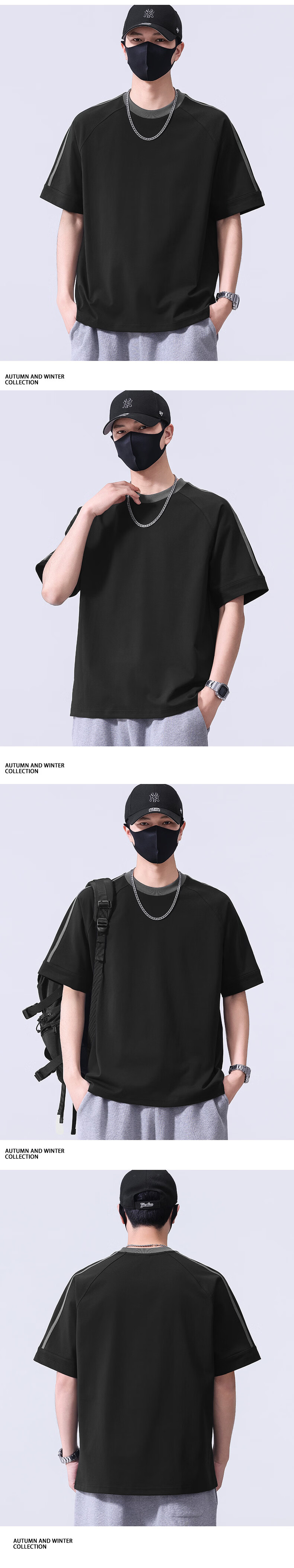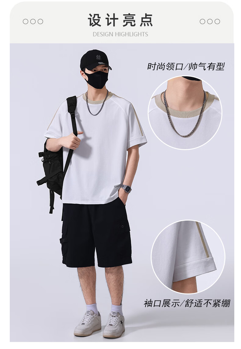 真维斯宽松短袖春夏季T恤男士2026新款潮流体恤五分袖休闲上衣服 藏青色 S