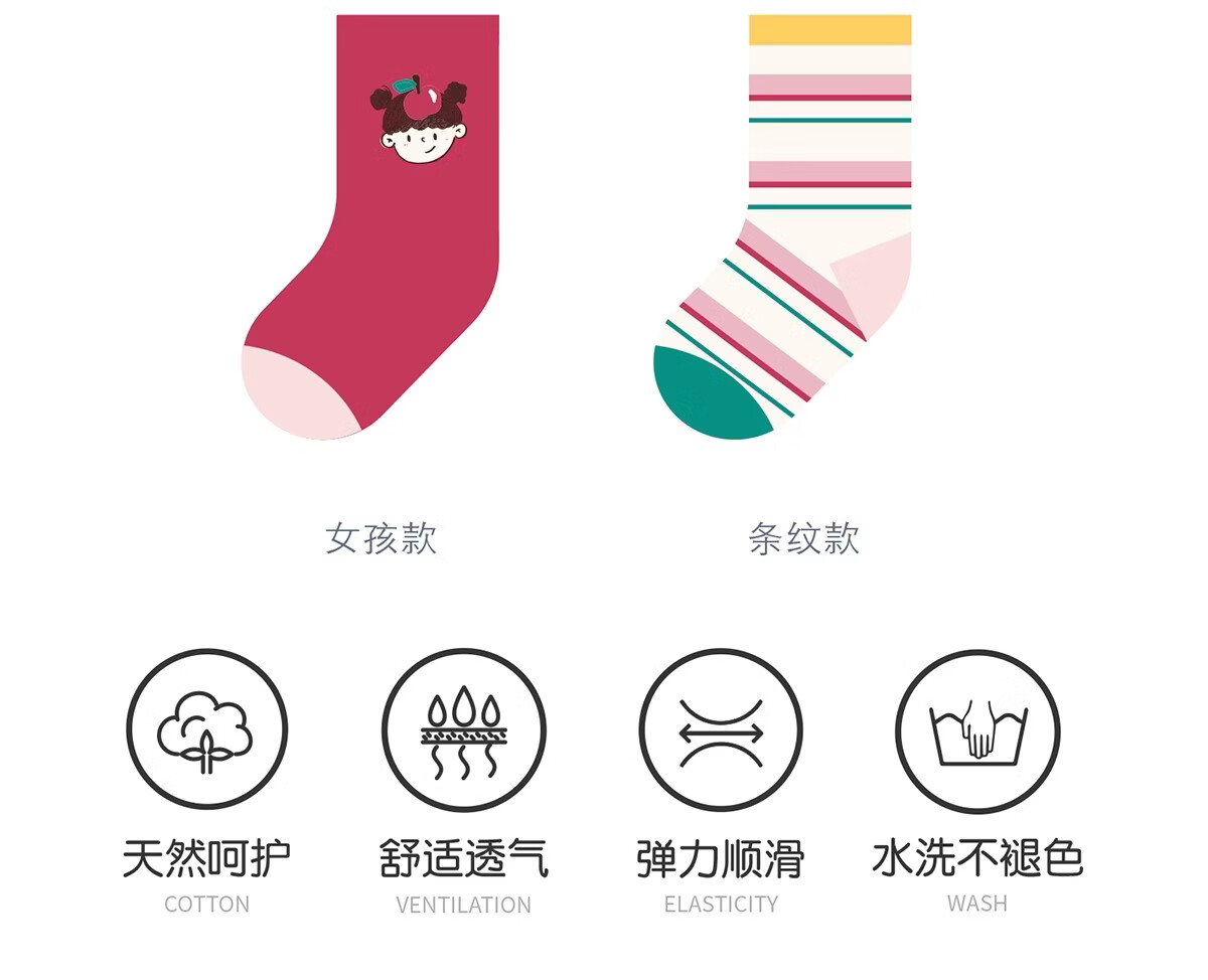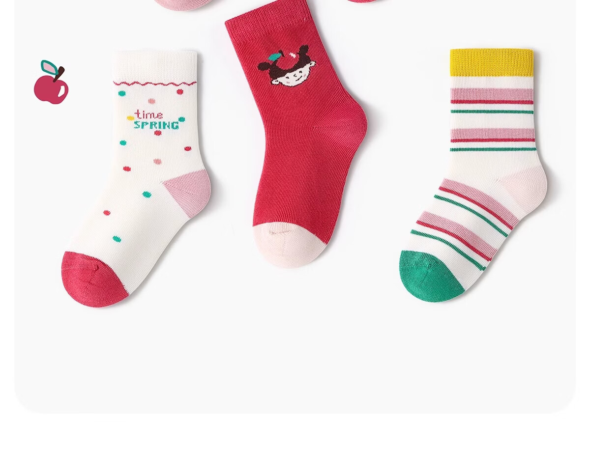 斑比儿童袜子春秋薄款棉袜中大童秋冬季女生宝宝无骨中筒袜 BB2477 秋冬款儿童袜子 5双 0-1岁 建议脚码16码以内【12-14】