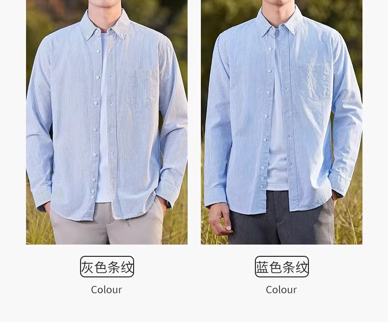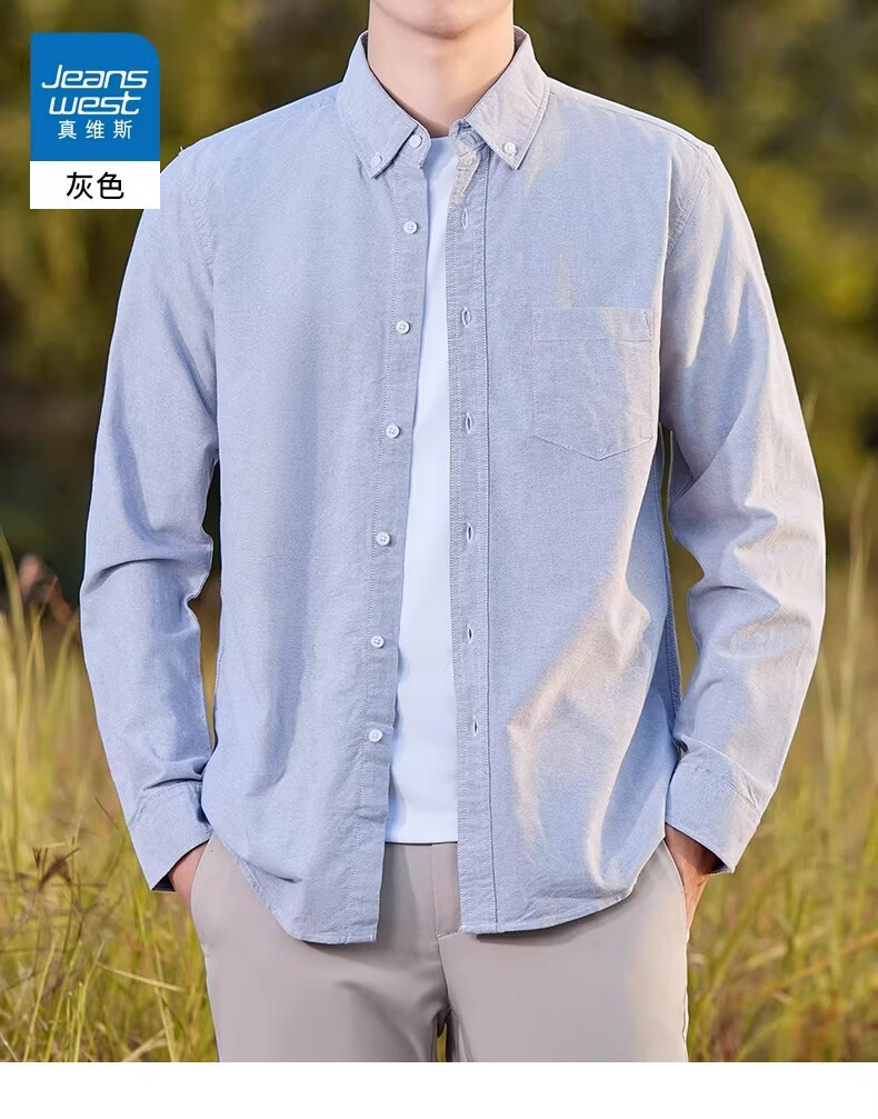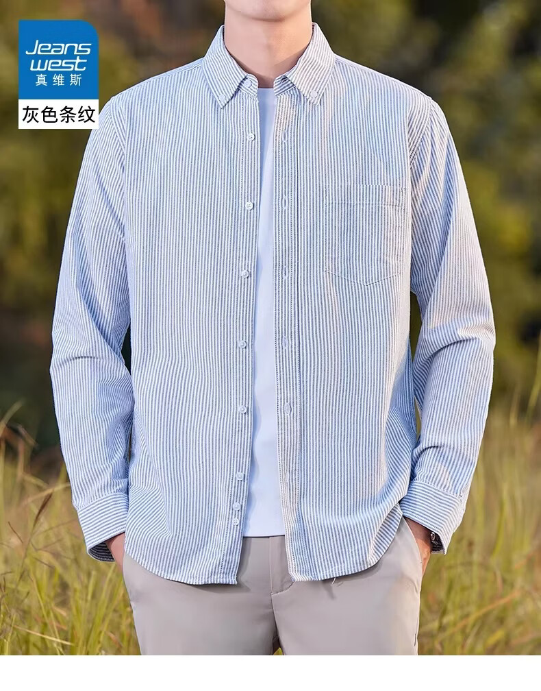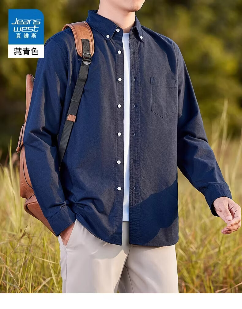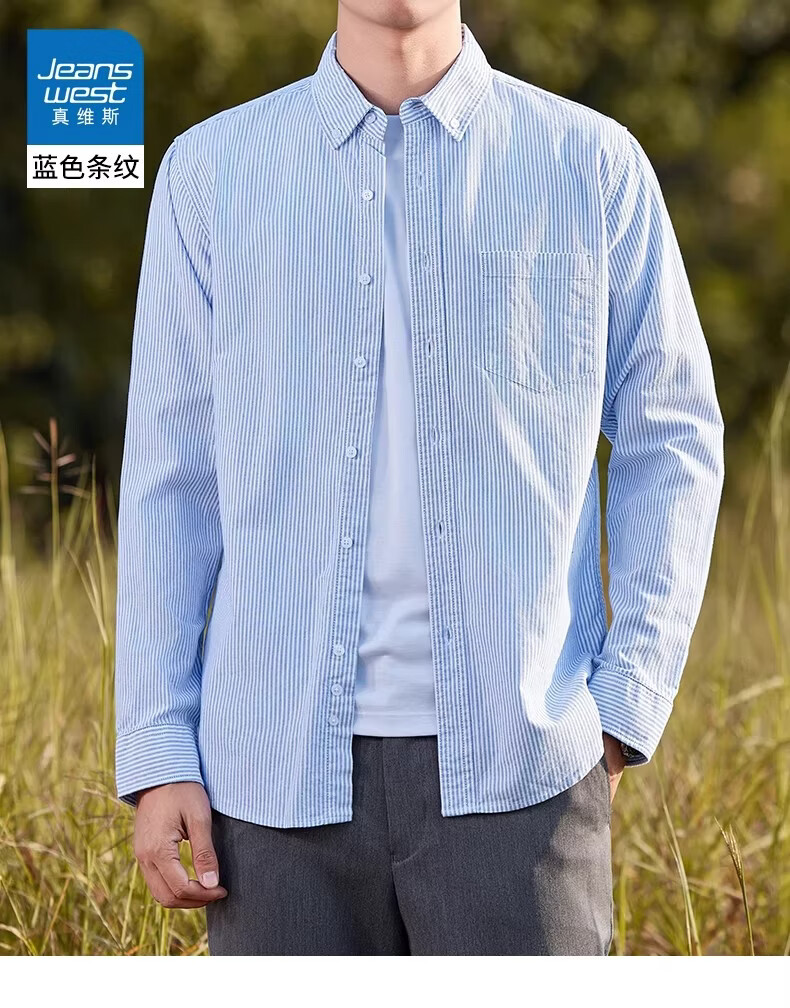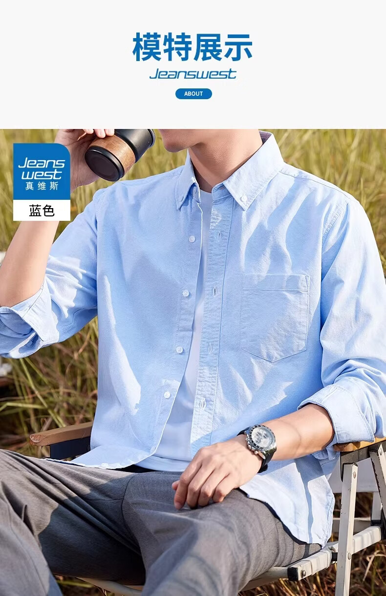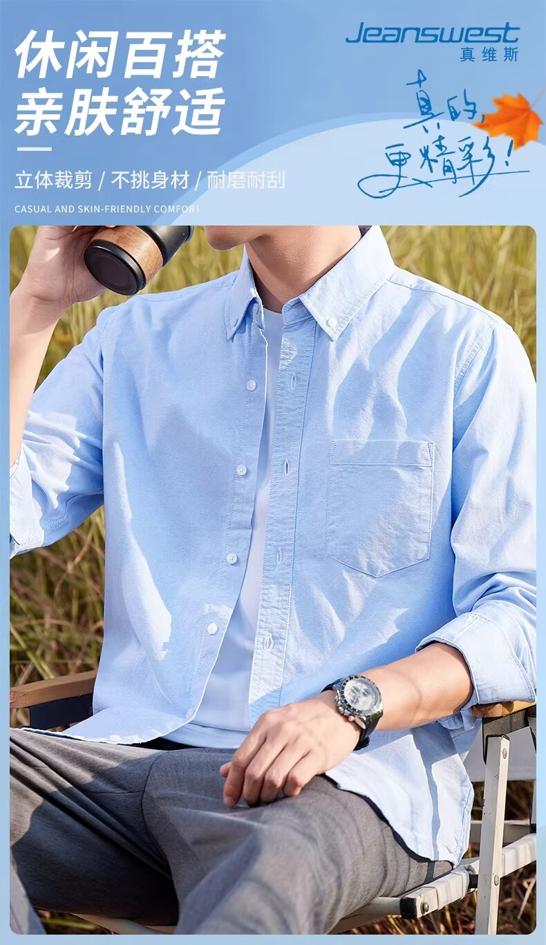真维斯(Jeanswest)秋季新款棉质抗皱长袖衬衫男宽松休闲翻领商务通勤百搭衬衣 【高品质】蓝色 【纯棉舒适】 M 【建议100-120斤】