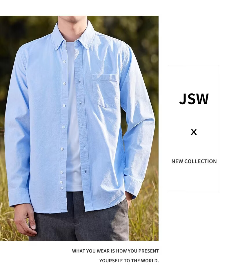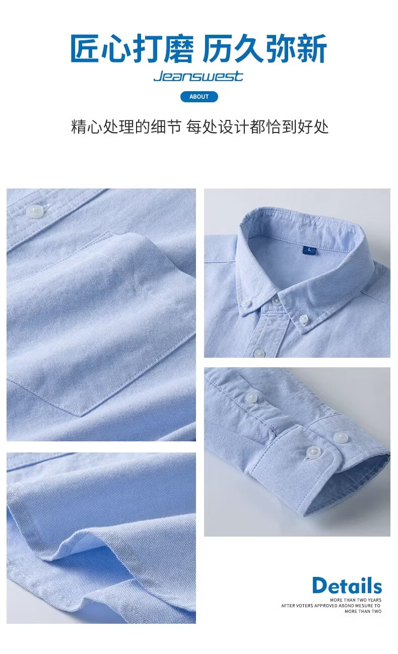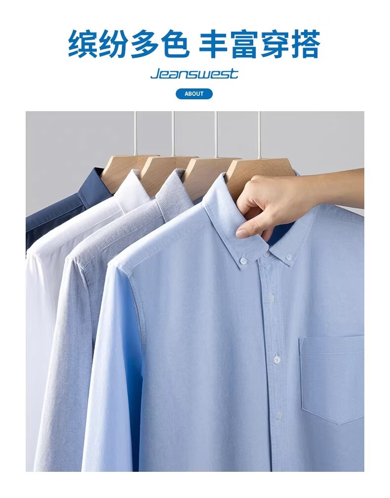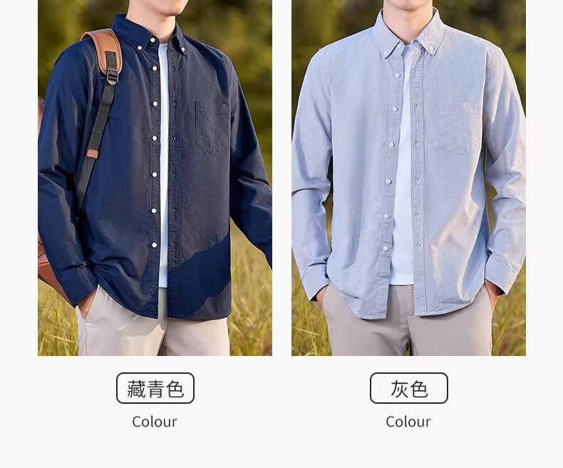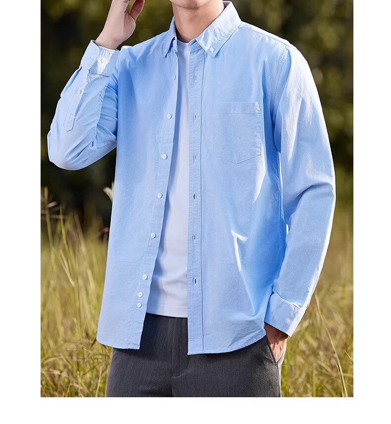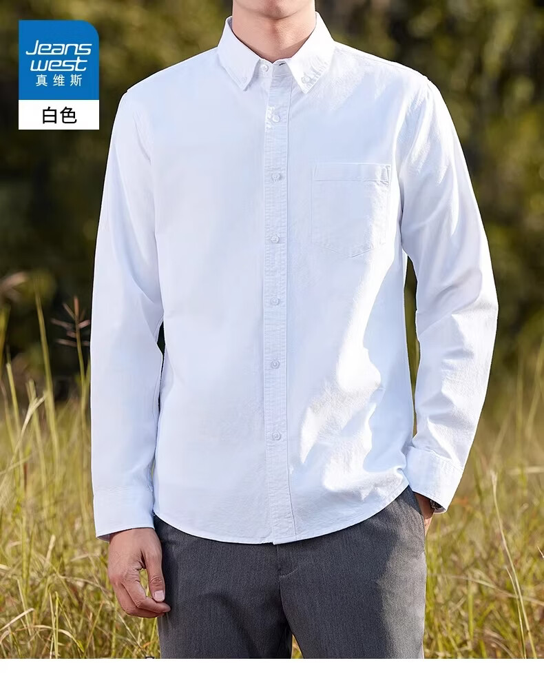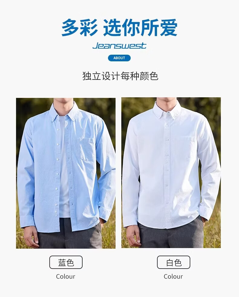 真维斯(Jeanswest)秋季新款棉质抗皱长袖衬衫男宽松休闲翻领商务通勤百搭衬衣 【高品质】蓝色 【纯棉舒适】 M 【建议100-120斤】