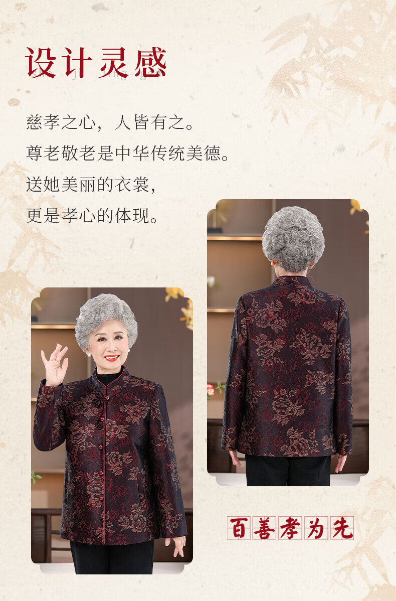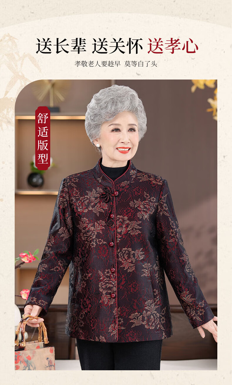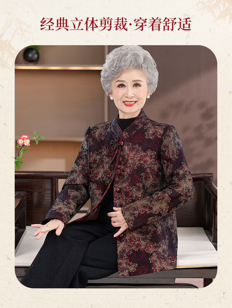 孜颜老人外套70-80岁女中老年女装春季新款唐装奶奶衣服春装宽松衣服 红牡丹 XL 【建议100斤内】