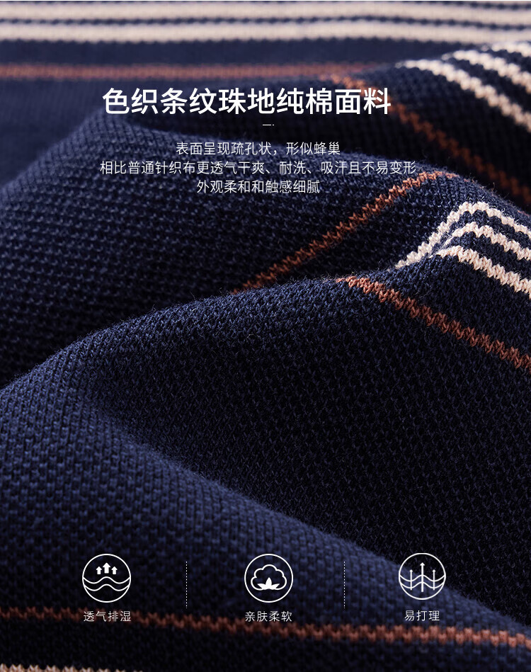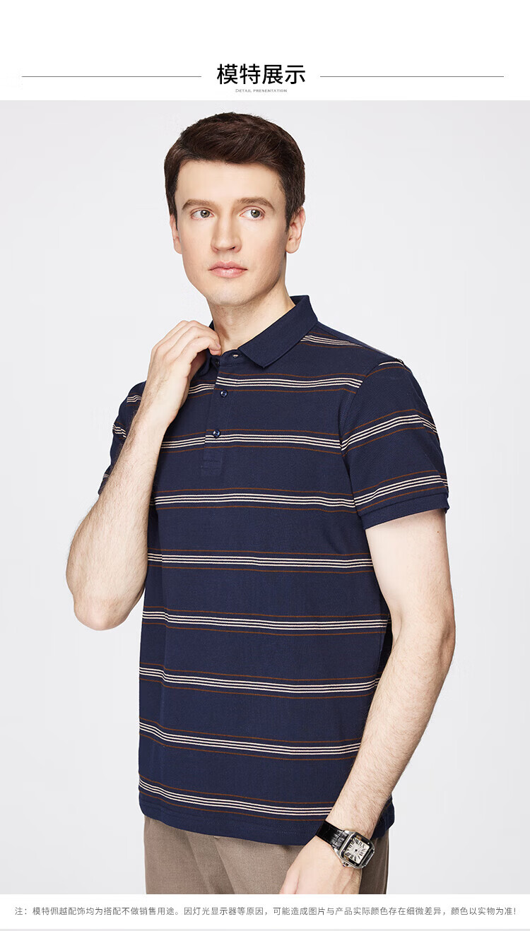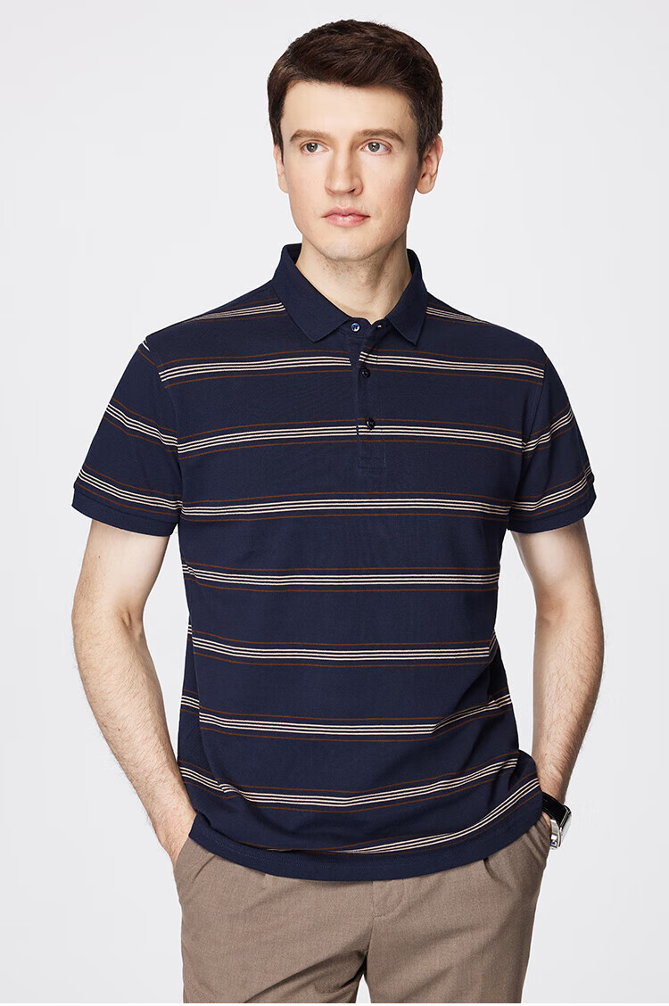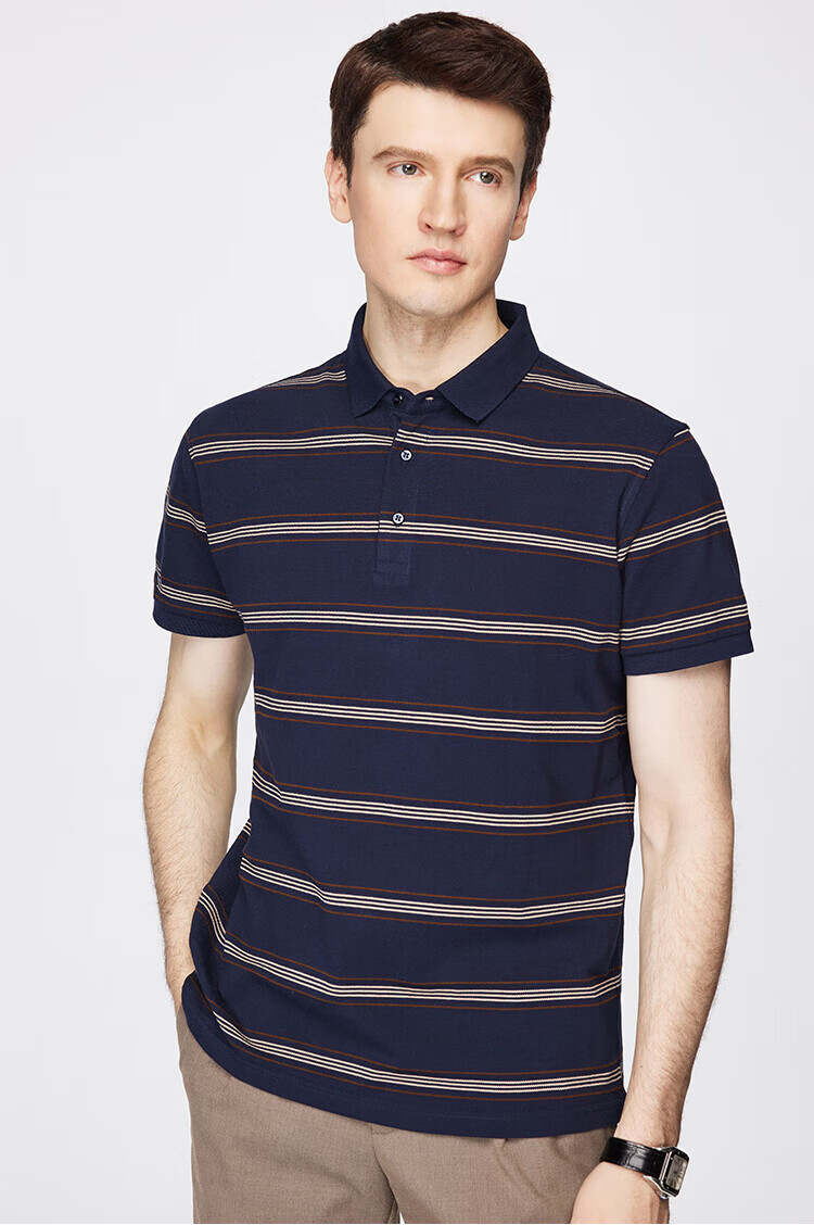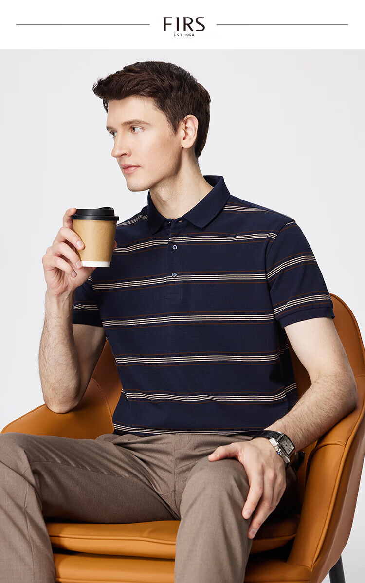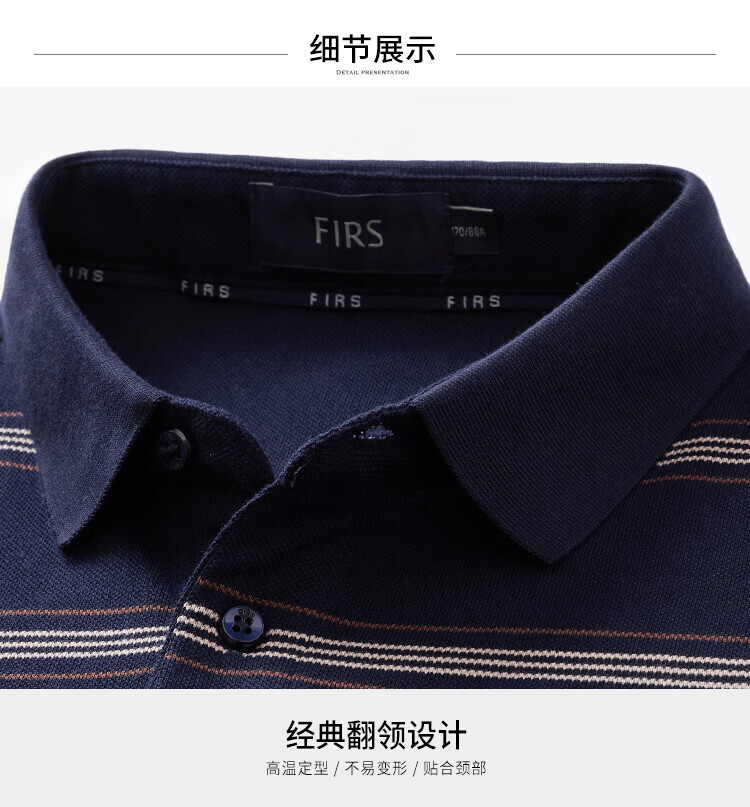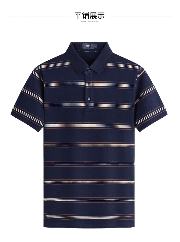 杉杉(FIRS)【纯棉色织】短袖T恤男轻薄透气POLO领商务休闲通勤亲肤柔软上衣 藏青 M (170/88A)