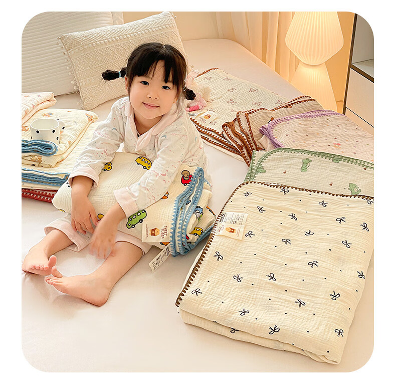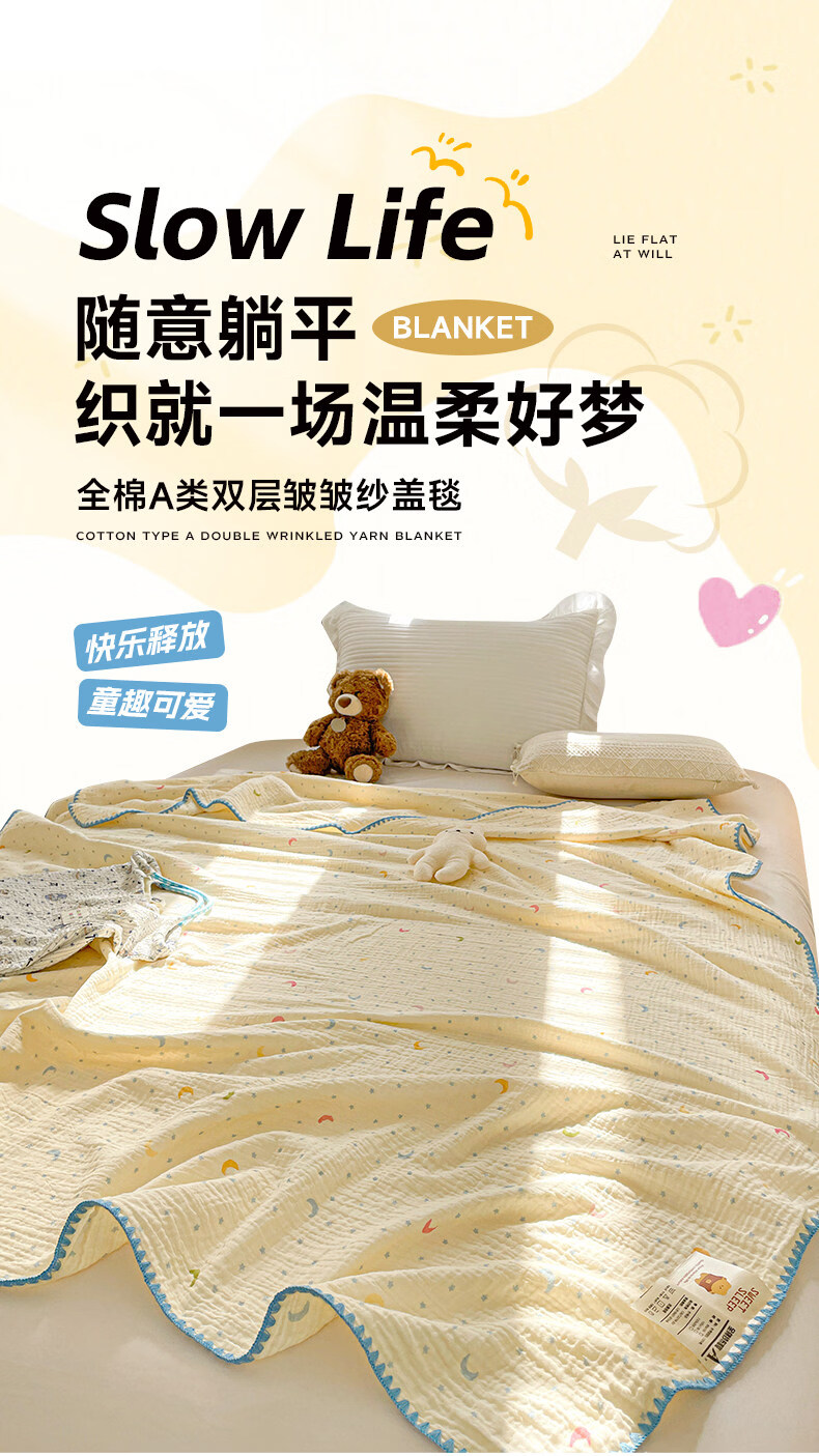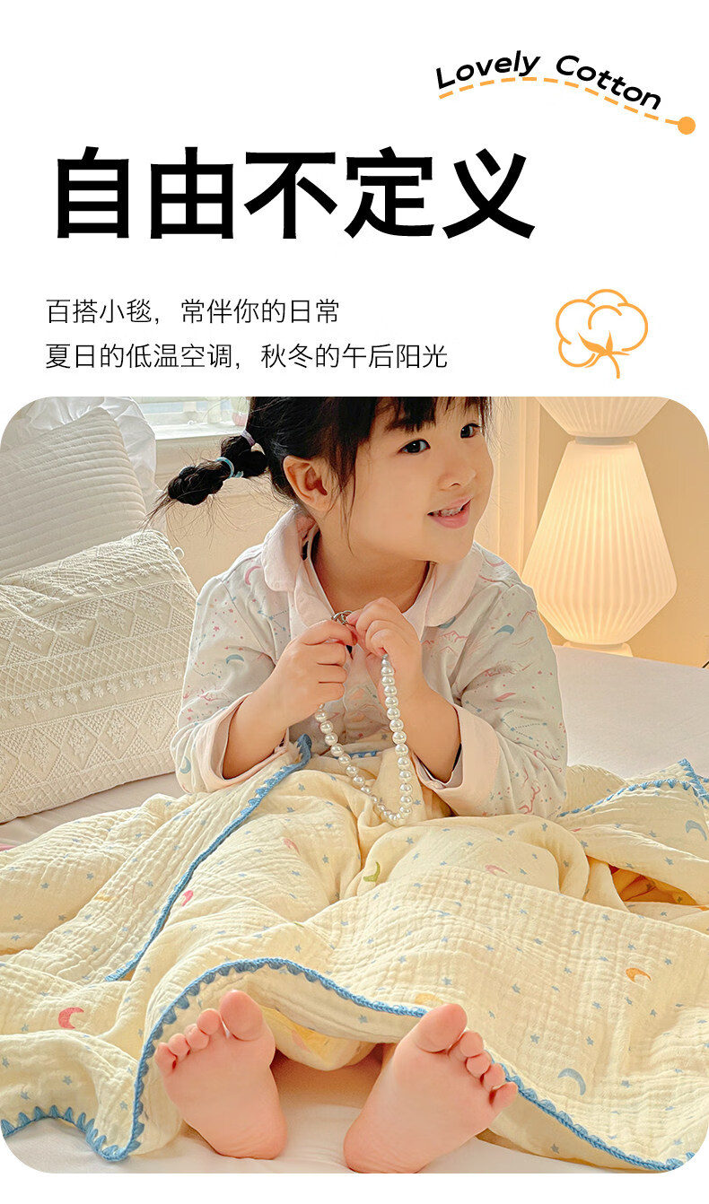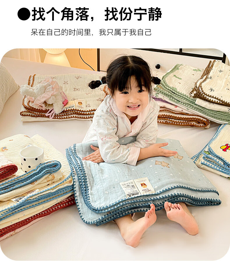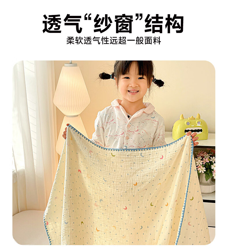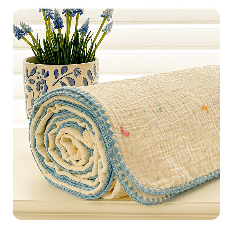 猫人(MiiOW)A类纯棉双层纱毛毯毛巾被子儿童午睡小毯子夏凉被空调被夏季盖毯 半月湾【100%全棉双层纱面料】 80x105cm【儿童午休毯】