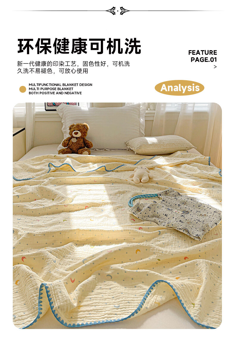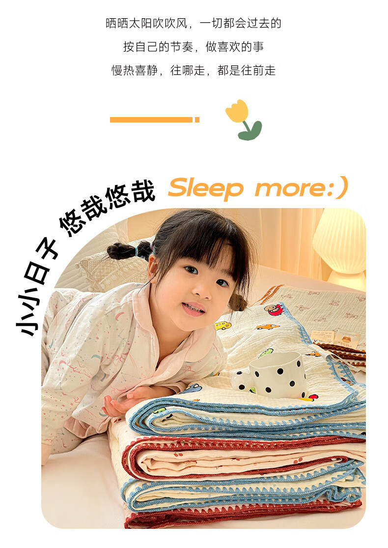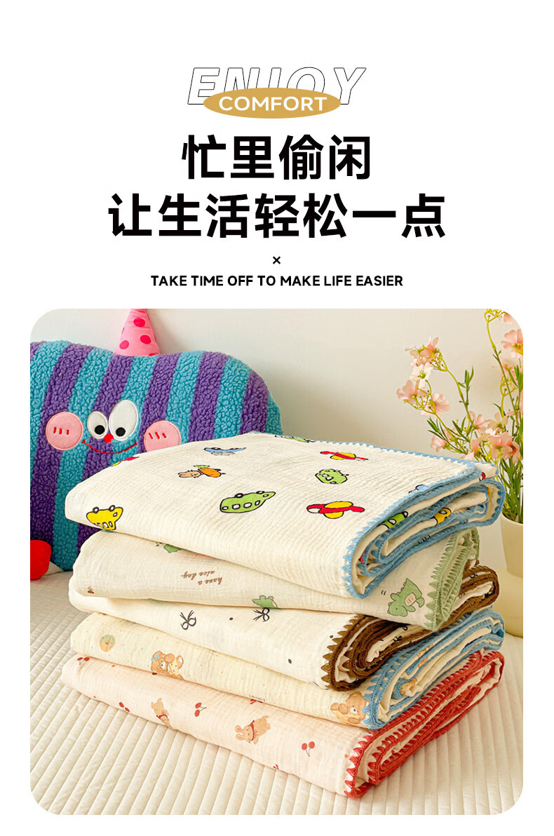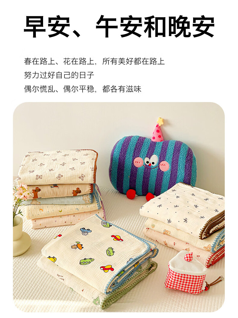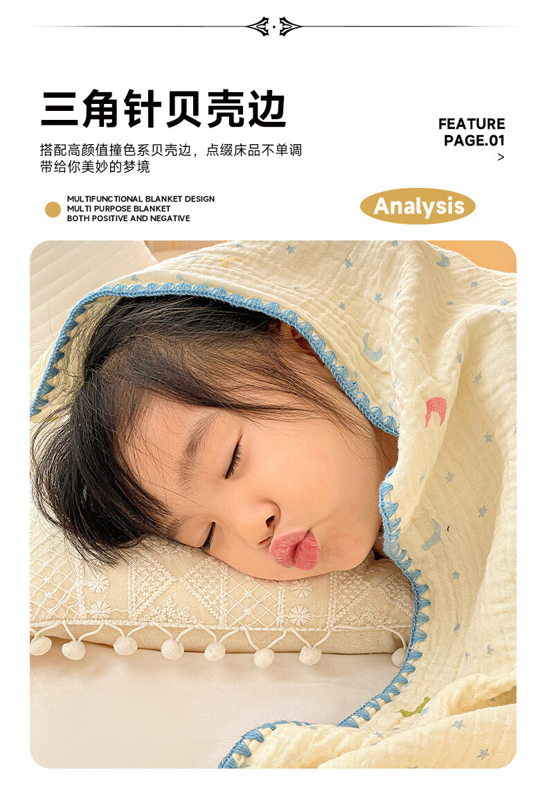 猫人(MiiOW)A类纯棉双层纱毛毯毛巾被子儿童午睡小毯子夏凉被空调被夏季盖毯 半月湾【100%全棉双层纱面料】 80x105cm【儿童午休毯】