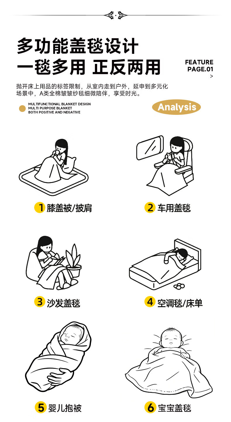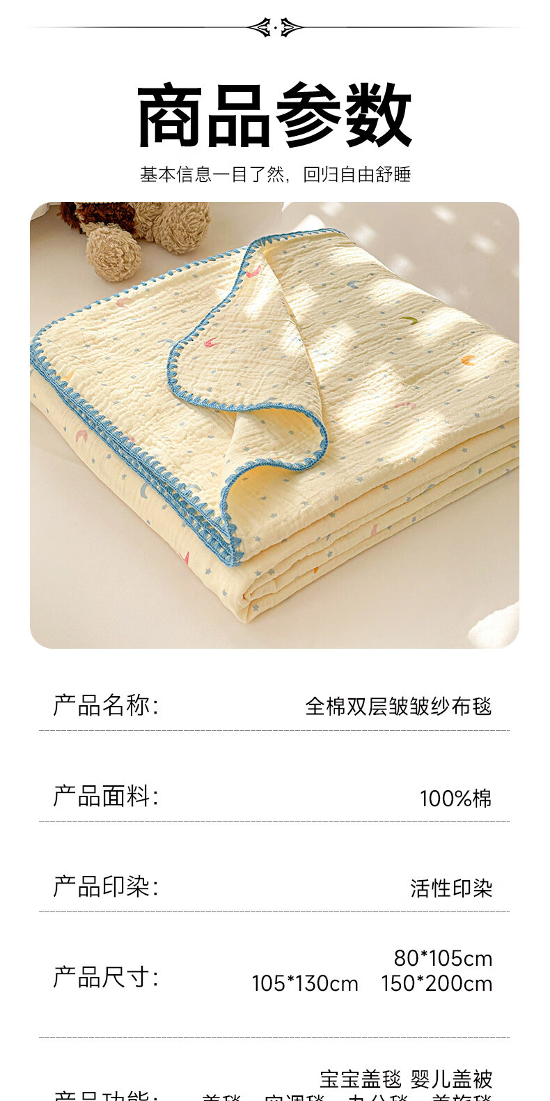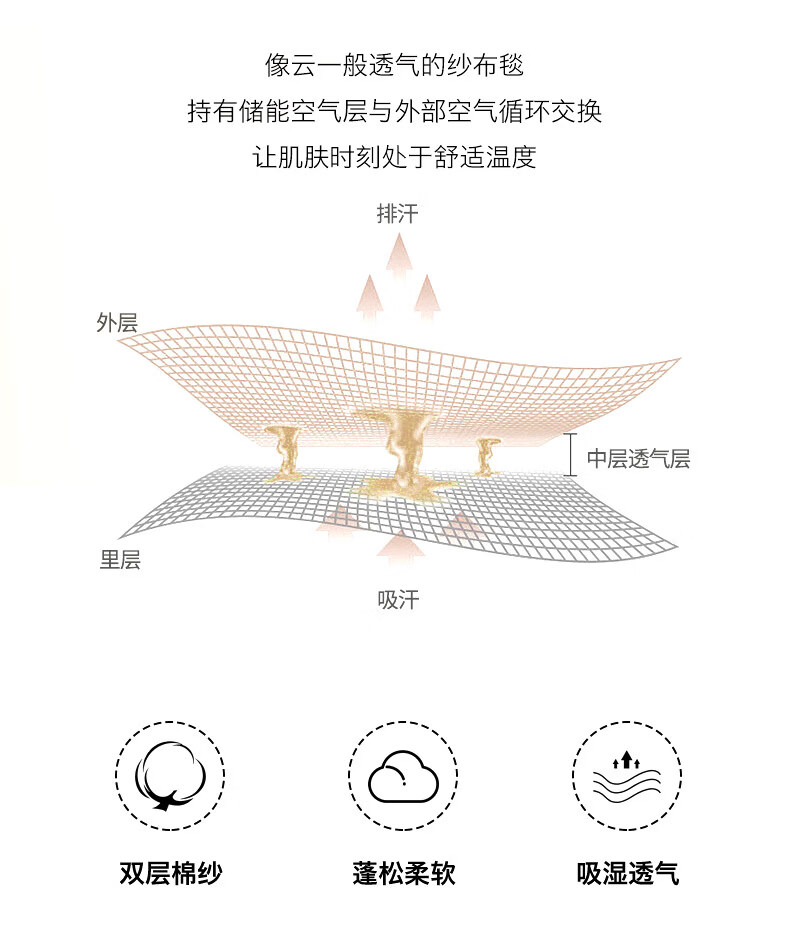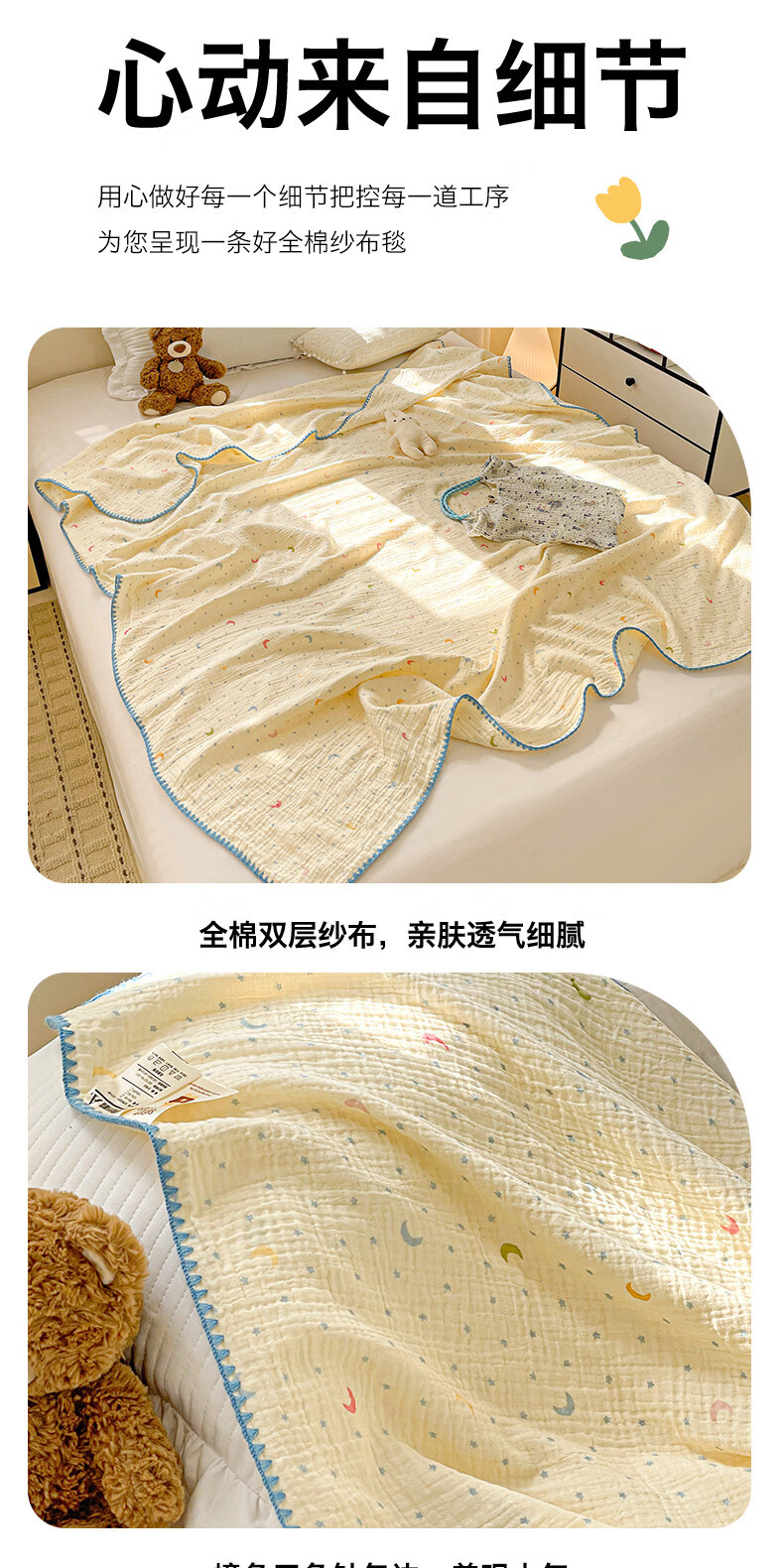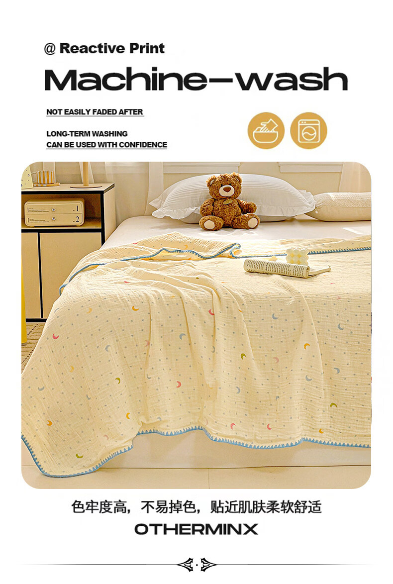 猫人(MiiOW)A类纯棉双层纱毛毯毛巾被子儿童午睡小毯子夏凉被空调被夏季盖毯 半月湾【100%全棉双层纱面料】 80x105cm【儿童午休毯】