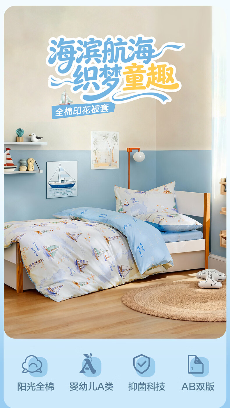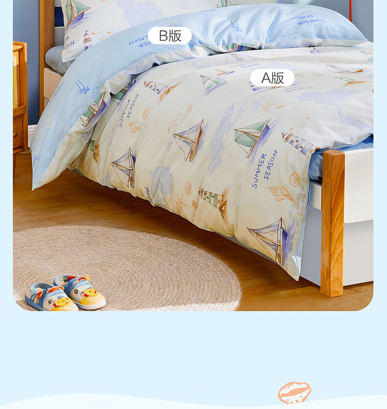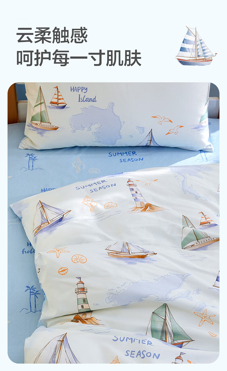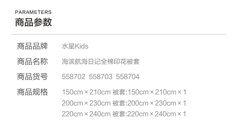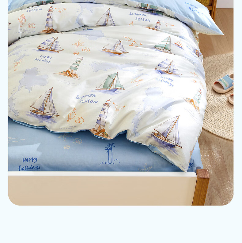 水星家纺海滨航海日记全棉印花被套 海滨航海日记全棉印花被套(灰蓝色) 210cm*150cm