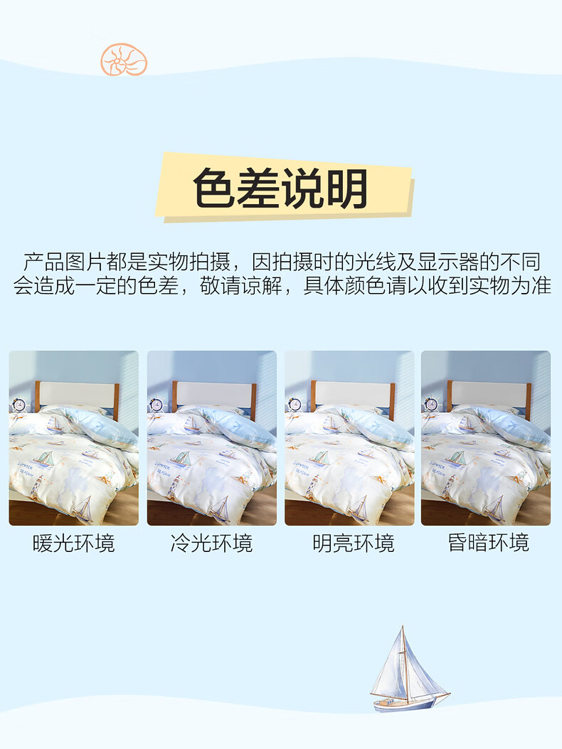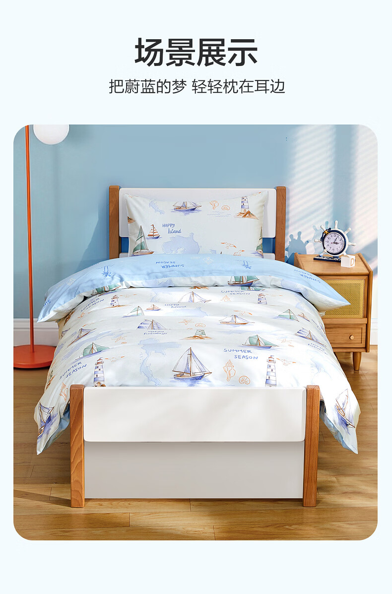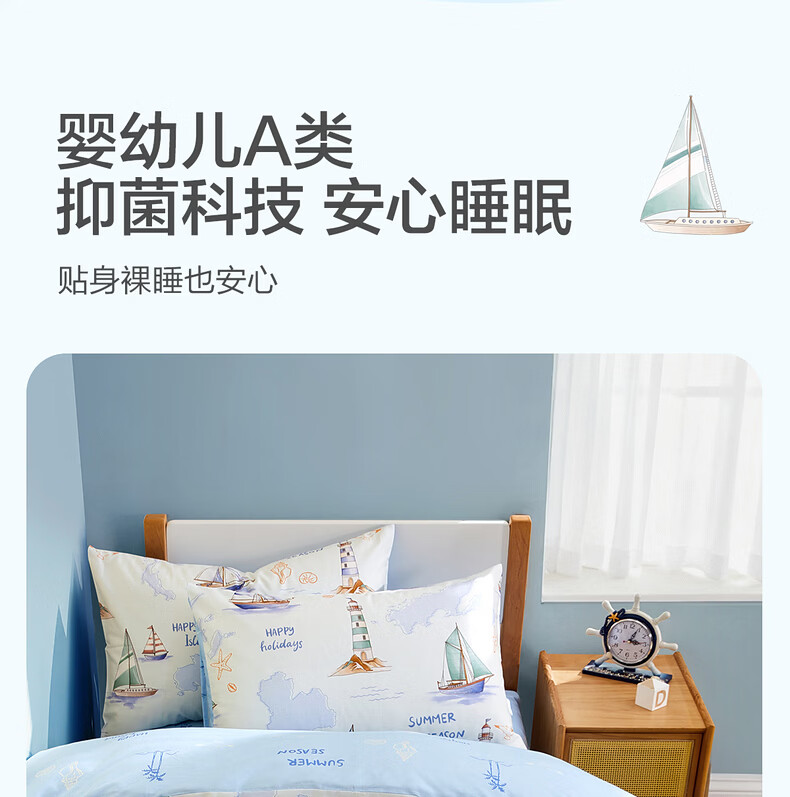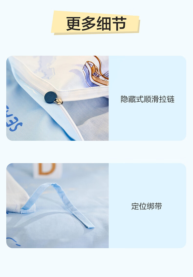 水星家纺海滨航海日记全棉印花被套 海滨航海日记全棉印花被套(灰蓝色) 210cm*150cm