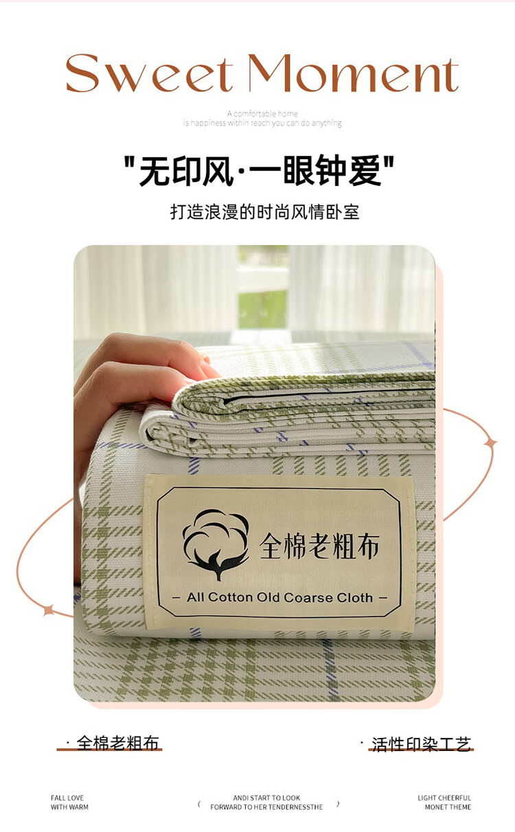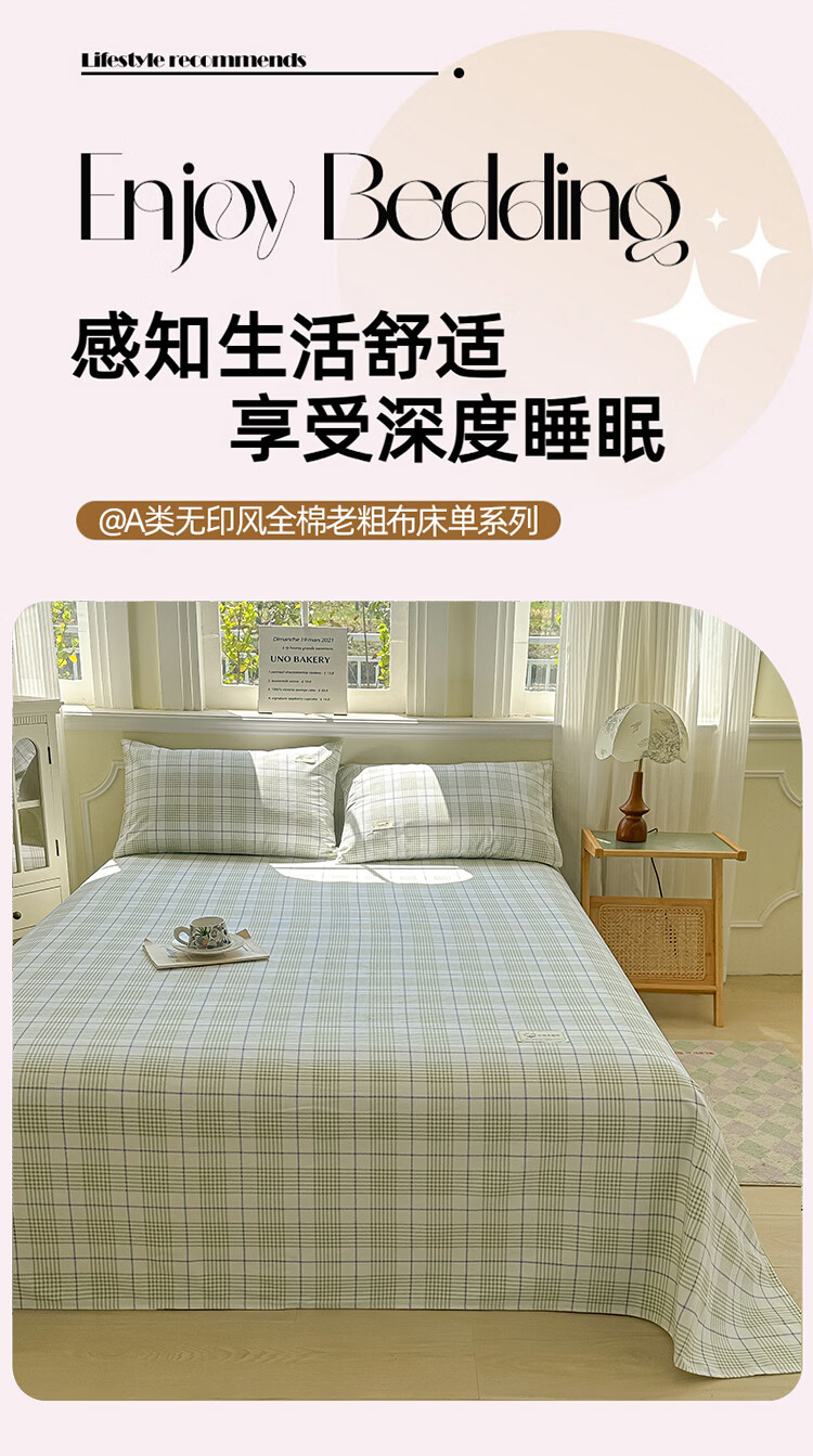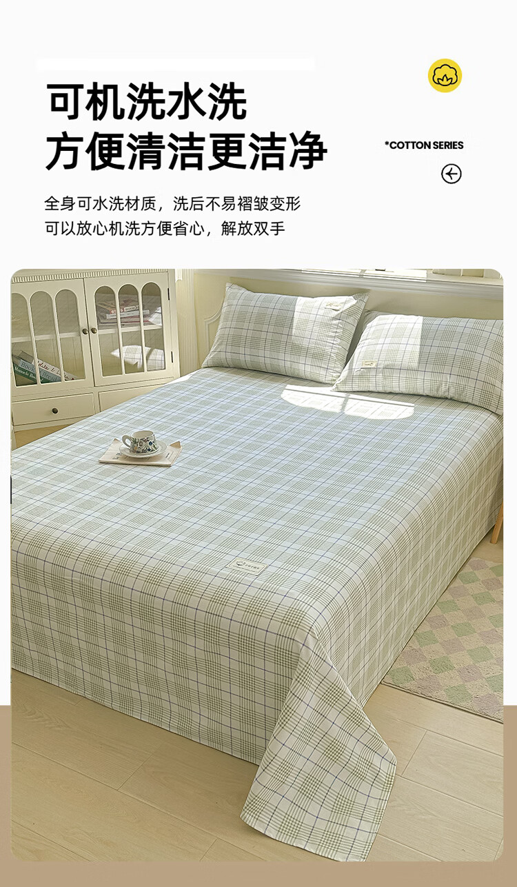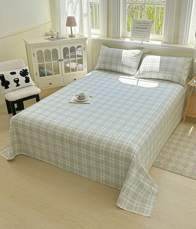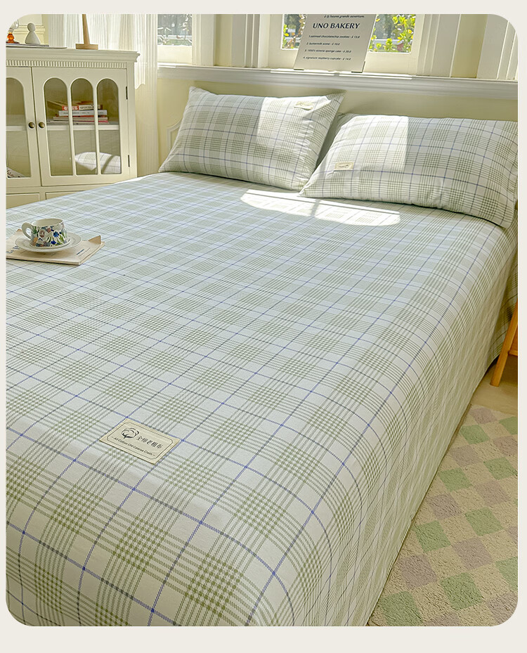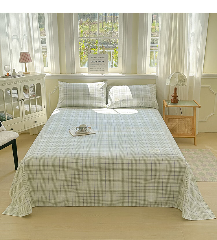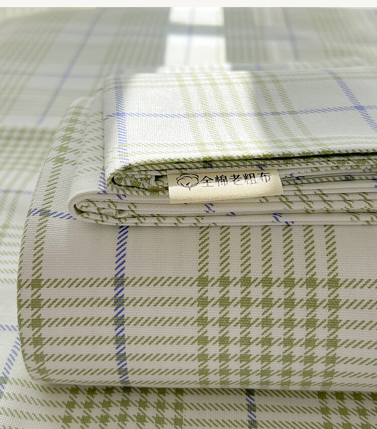阿尔皮纳袋鼠A类全棉老粗布床单夏季纯棉麻凉席加厚宿舍被单双人床笠罩三件套 芬利-绿蓝【加厚纯棉凉而不冰可做凉席】 单床单:200x245cm【适合1.5m床】