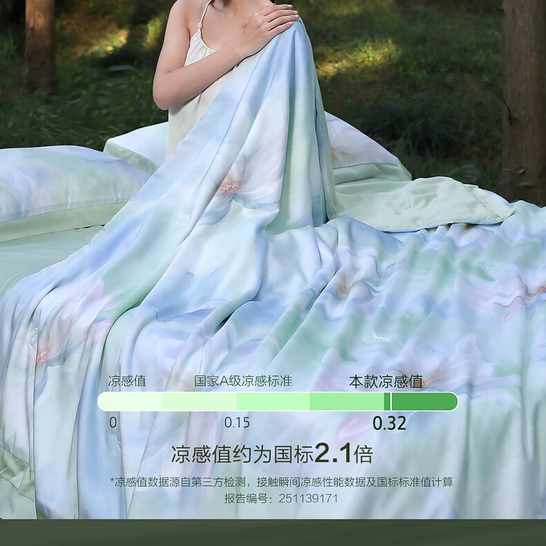 水星家纺被子夏凉被 空调被可机洗凉感天丝棉夏被 A类夏被 植愈舒爽【60S莱赛尔纤维/A类抑菌】绿 200cm*230cm