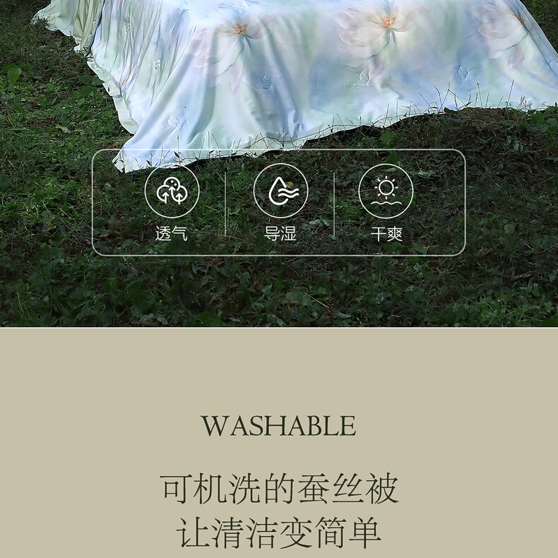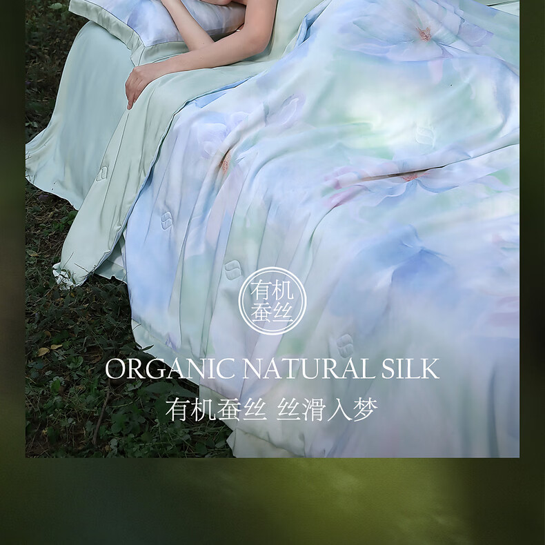 水星家纺蚕丝被100%蚕丝夏凉空调被夏季薄被子可水洗夏被 青桑·花拾光水洗蚕丝夏被 150cm*200cm