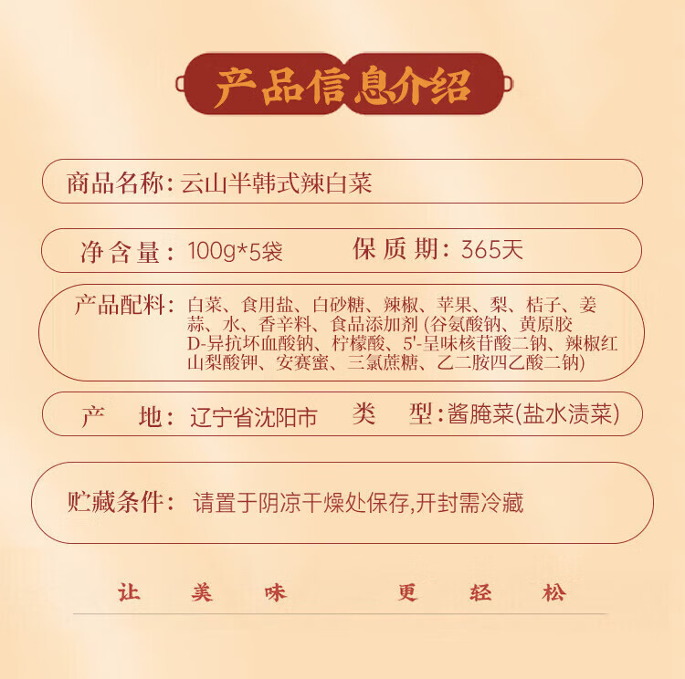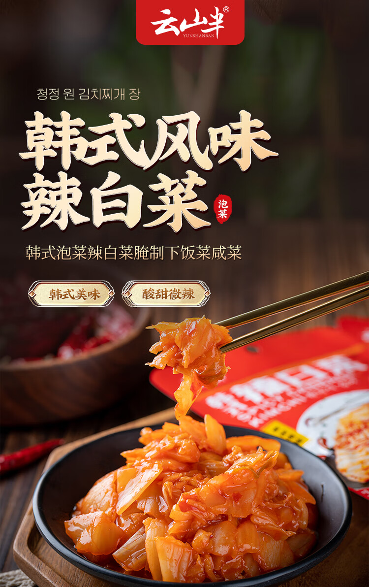 云山半韩式辣白菜泡菜100g*5袋 韩国风味香辣白菜即食下饭菜咸菜酱菜