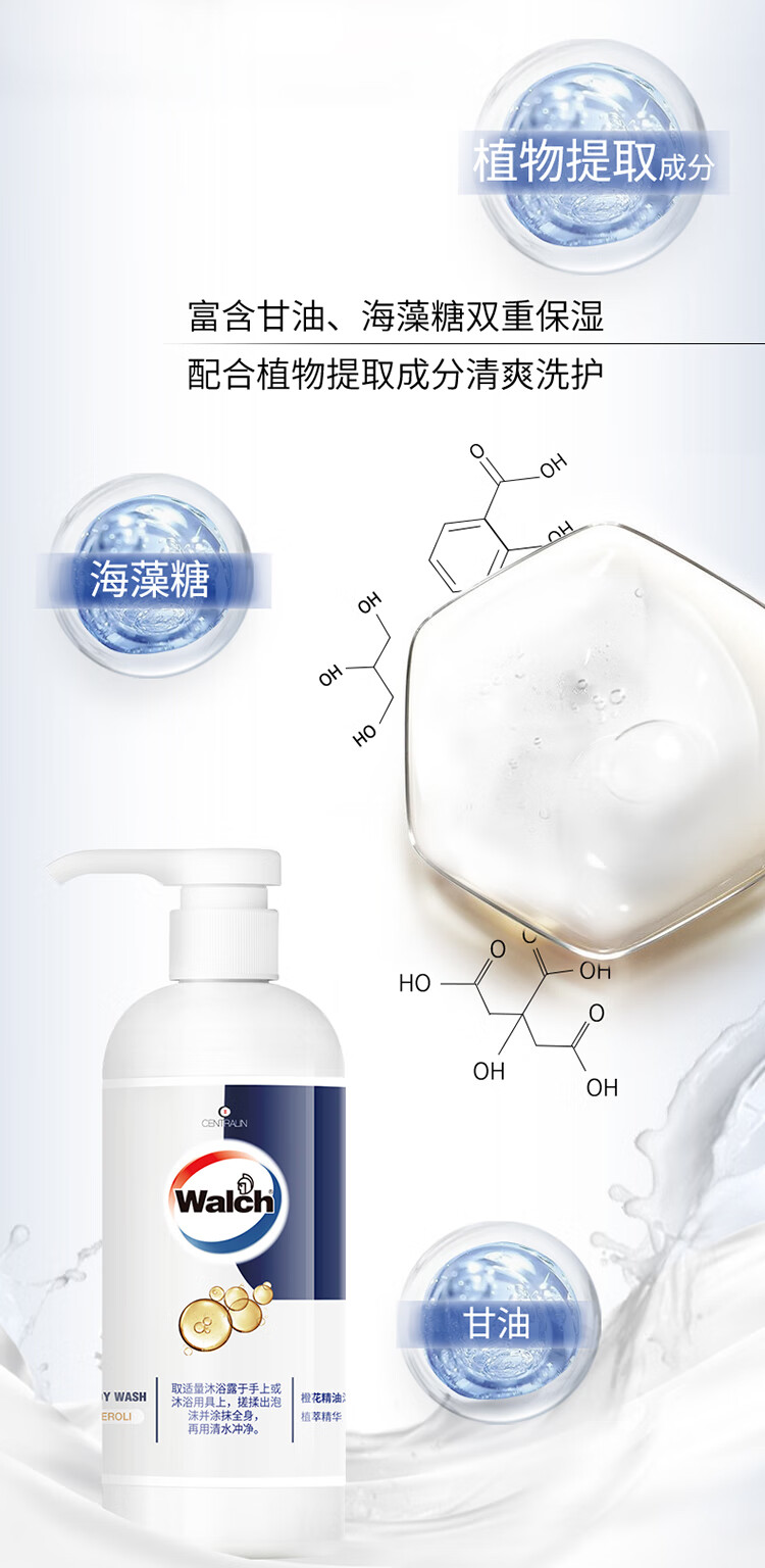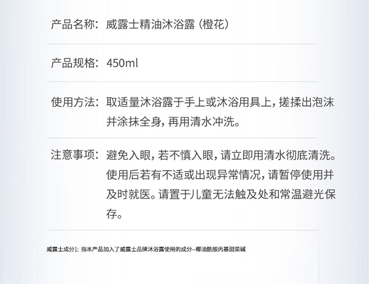 威露士橙花精油沐浴露450ml 清洁保湿滋润留香 男女士通用沐浴液沐浴乳