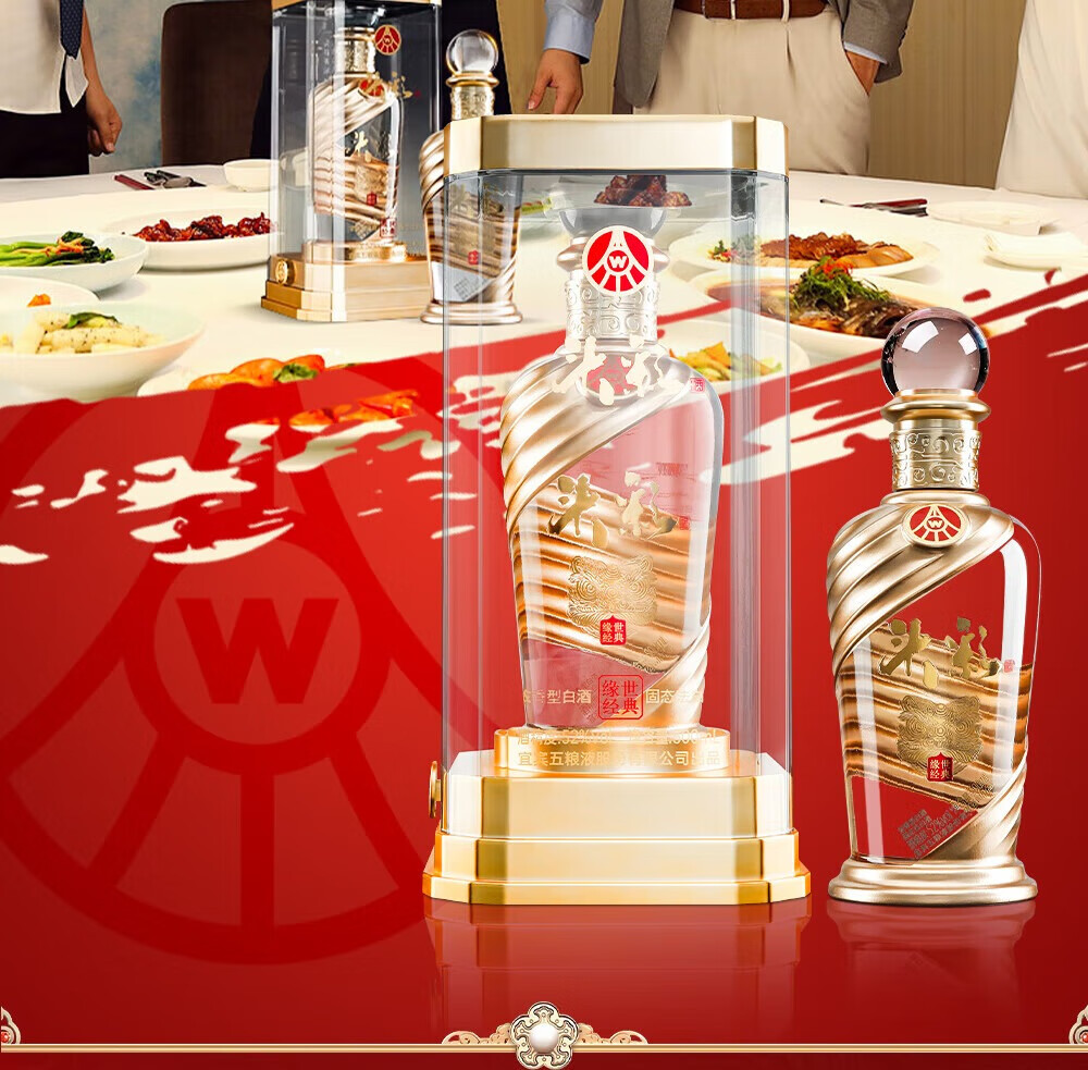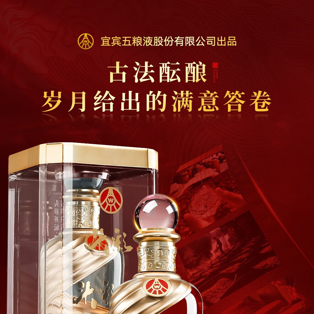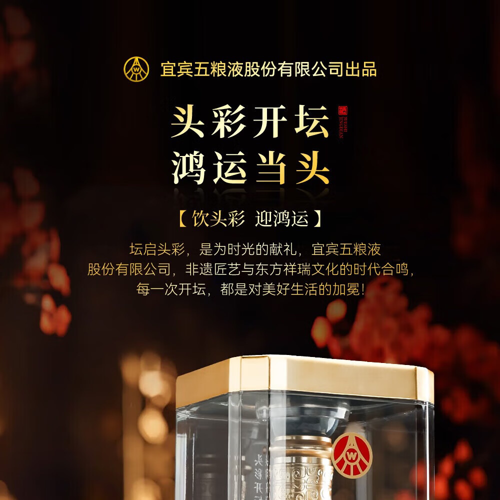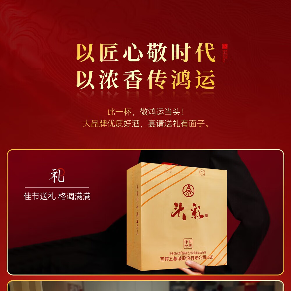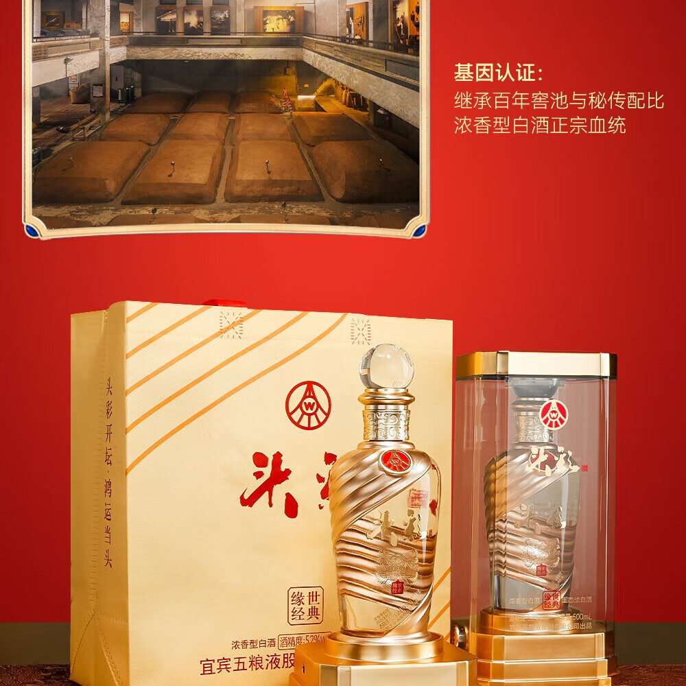 W五粮液股份出品52度高度 浓香型白酒 纯粮酿造 自饮 商务宴请 52度 500mL 2瓶 头彩2瓶送礼品袋
