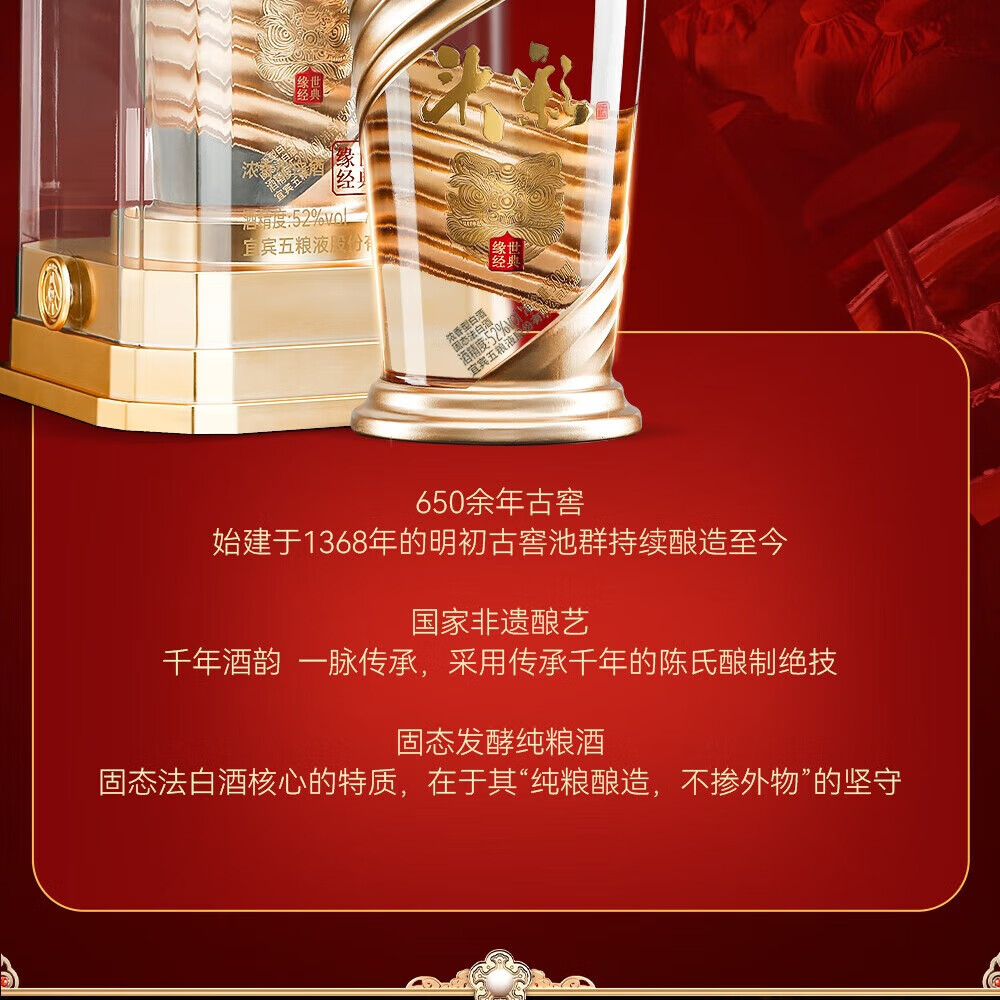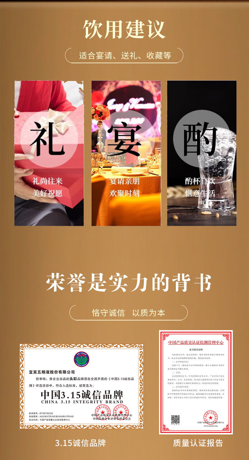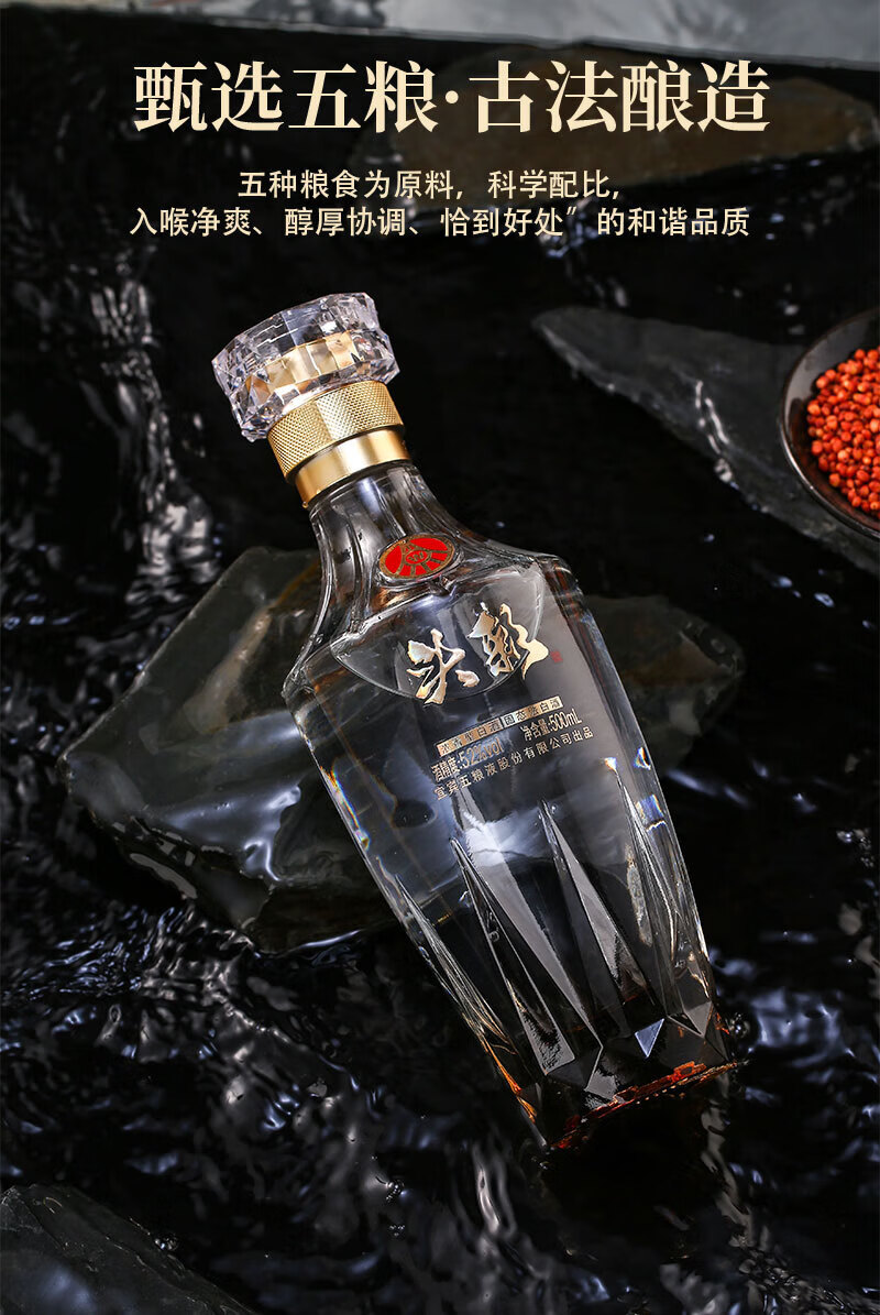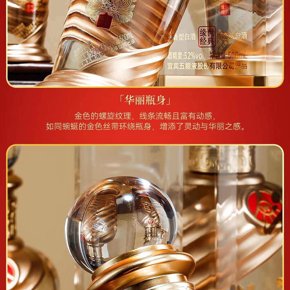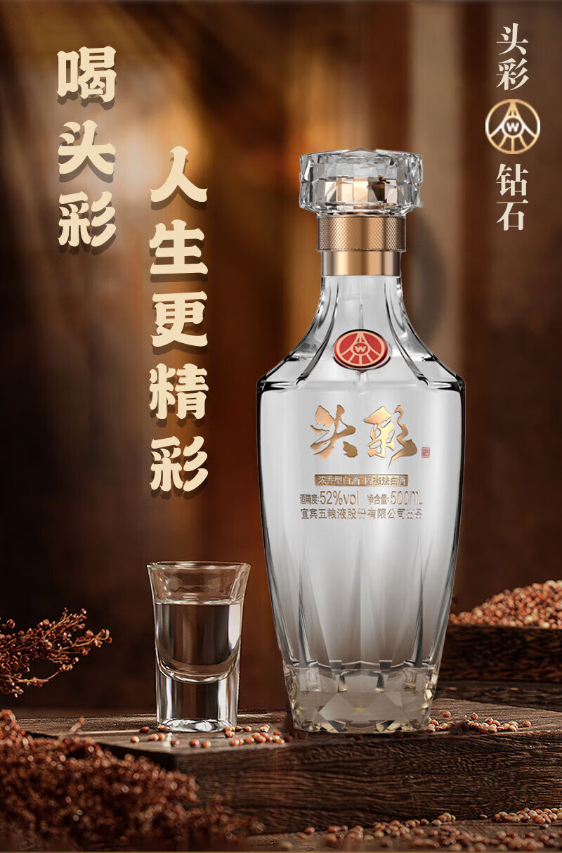W五粮液股份出品52度高度 浓香型白酒 纯粮酿造 自饮 商务宴请 52度 500mL 2瓶 头彩2瓶送礼品袋