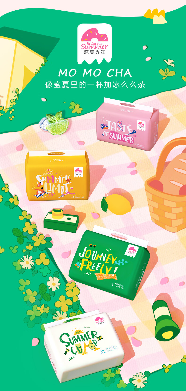 盛夏光年夏日么么茶纸尿裤M码36片(6-11kg)腰贴型婴儿尿不湿超薄透气