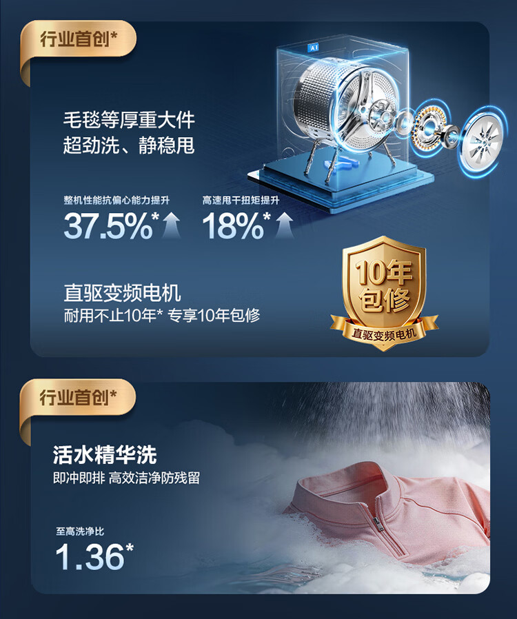海尔(Haier)F云溪5.0 滚筒洗衣机全自动12KG 直驱家用大容量全家筒 1.34高洗净比 除菌洗衣机XQG120-BLE7AD1U1 单洗 12kg AI直驱洁净+双效除菌+活水精华洗